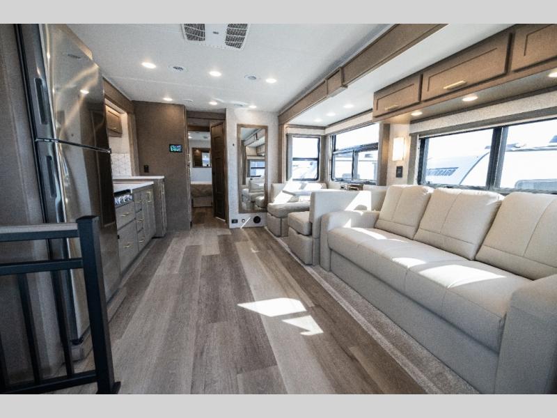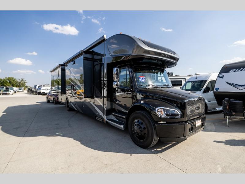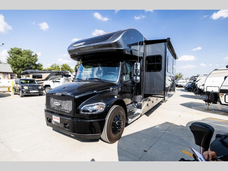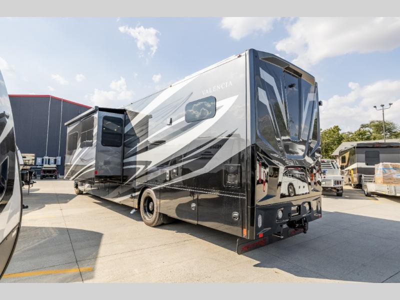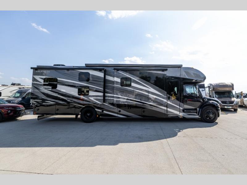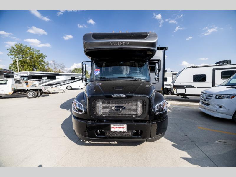 Each one of these Renegade Valencia Super C diesel motorhomes offer ultimate comfort and durable construction! They have a Freightliner S2RV chassis for a refined ride with responsive handling, as well as a powerful Cummins ISB 360 HP engine with a 3,000MH Alison transmission and a single 100 gallon fuel tank to get you farther. A few of the beautifully designed interior features are the solid hardwood cabinets, the polished solid surface countertops, and the stainless steel appliances. Travel in comfort and style with the modern furniture and abundant storage areas like the exterior steel storage compartments with carpeted lining. You will also appreciate the four point automatic hydraulic leveling system and the multiplex system with Bluetooth app control. With eight colorway paint options and three interior décor options, you can be sure to find the right one for you!