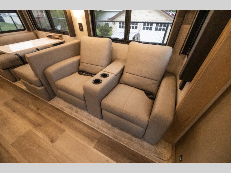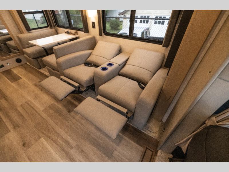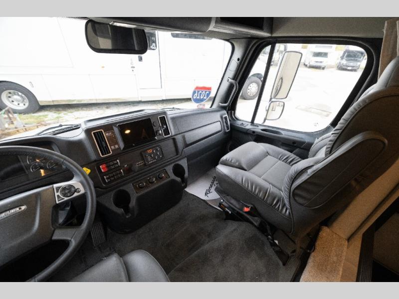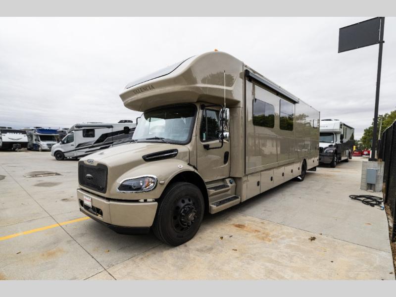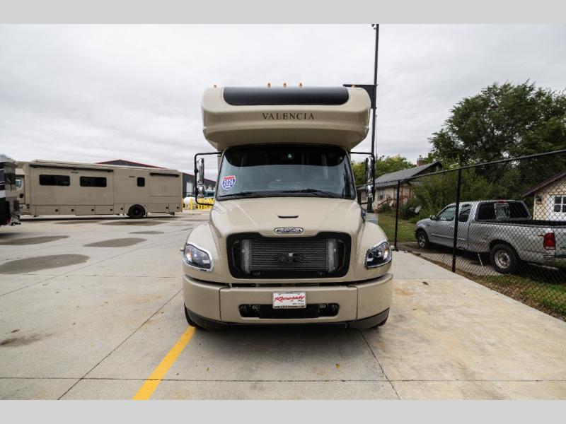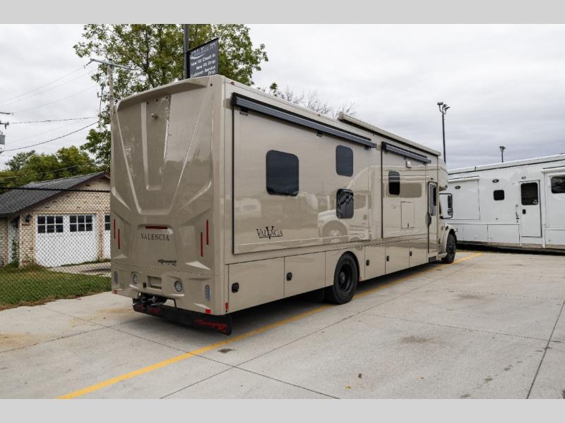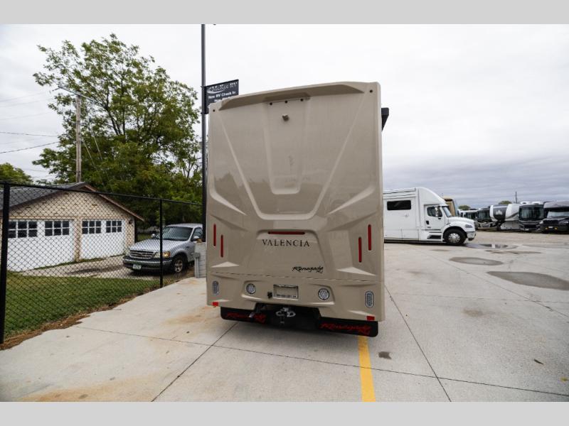 Each one of these Renegade Valencia Super C diesel motorhomes offer ultimate comfort and durable construction! They have a Freightliner S2RV chassis for a refined ride with responsive handling, as well as a powerful Cummins ISB 360 HP engine with a 3,000MH Alison transmission and a single 100 gallon fuel tank to get you farther. A few of the beautifully designed interior features are the solid hardwood cabinets, the polished solid surface countertops, and the stainless steel appliances. Travel in comfort and style with the modern furniture and abundant storage areas like the exterior steel storage compartments with carpeted lining. You will also appreciate the four point automatic hydraulic leveling system and the multiplex system with Bluetooth app control. With eight colorway paint options and three interior décor options, you can be sure to find the right one for you!