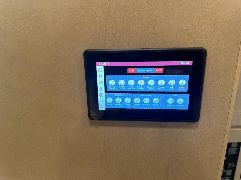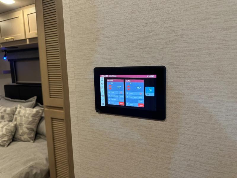 Enjoy easy setup with the four-point automatic hydraulic leveling system and take command of your RV features with the multiplex control system with Bluetooth app control. These systems make traveling simpler, safer, and more intuitive.