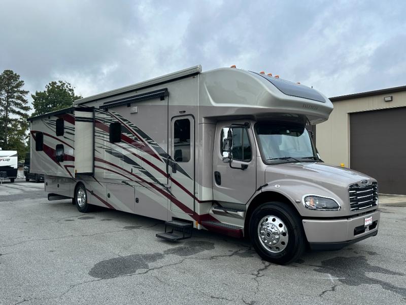 Each one of these Renegade Valencia Super C diesel motorhomes offer ultimate comfort and durable construction! They have a Freightliner S2RV chassis for a refined ride with responsive handling, as well as a powerful Cummins ISB 360 HP engine with a 3,000MH Alison transmission and a single 100 gallon fuel tank to get you farther. A few of the beautifully designed interior features are the solid hardwood cabinets, the polished solid surface countertops, and the stainless steel appliances. Travel in comfort and style with the modern furniture and abundant storage areas like the exterior steel storage compartments with carpeted lining. You will also appreciate the four point automatic hydraulic leveling system and the multiplex system with Bluetooth app control. With eight colorway paint options and three interior décor options, you can be sure to find the right one for you!