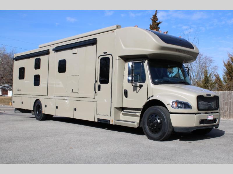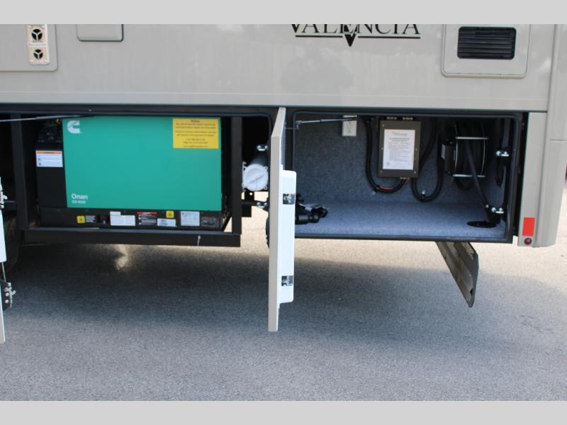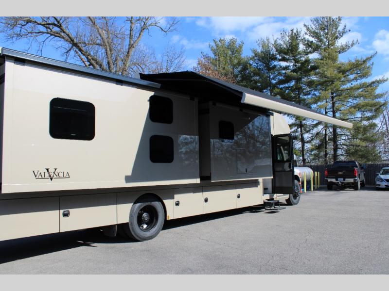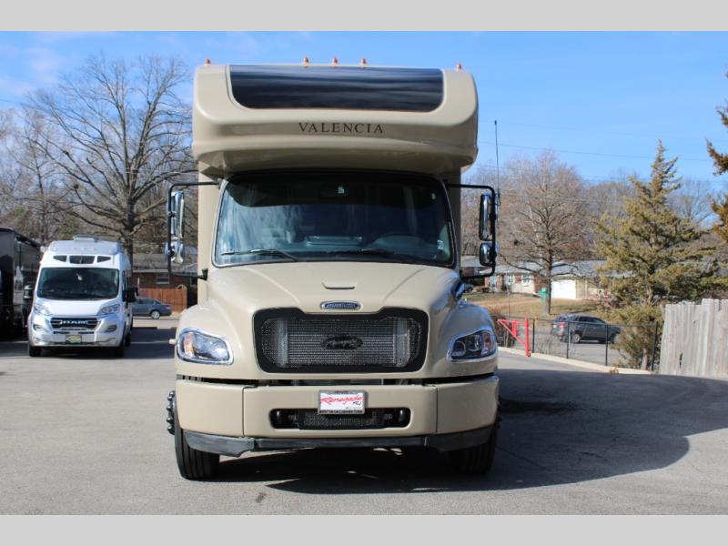 Each one of these Renegade Valencia Super C diesel motorhomes offer ultimate comfort and durable construction! They have a Freightliner S2RV chassis for a refined ride with responsive handling, as well as a powerful Cummins ISB 360 HP engine with a 3,000MH Alison transmission and a single 100 gallon fuel tank to get you farther. A few of the beautifully designed interior features are the solid hardwood cabinets, the polished solid surface countertops, and the stainless steel appliances. Travel in comfort and style with the modern furniture and abundant storage areas like the exterior steel storage compartments with carpeted lining. You will also appreciate the four point automatic hydraulic leveling system and the multiplex system with Bluetooth app control. With eight colorway paint options and three interior décor options, you can be sure to find the right one for you!