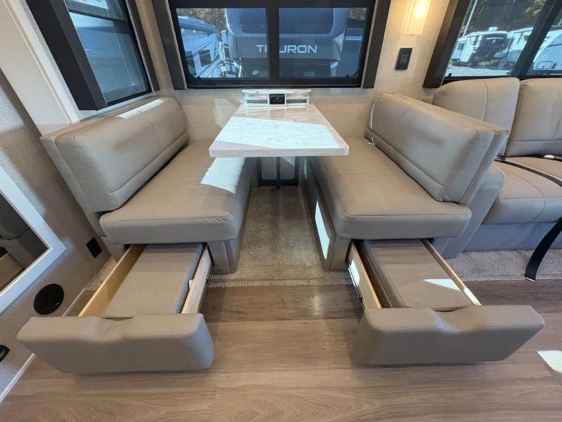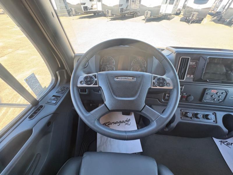 Each one of these Renegade Valencia Super C diesel motorhomes offer ultimate comfort and durable construction! They have a Freightliner S2RV chassis for a refined ride with responsive handling, as well as a powerful Cummins ISB 360 HP engine with a 3,000MH Alison transmission and a single 100 gallon fuel tank to get you farther. A few of the beautifully designed interior features are the solid hardwood cabinets, the polished solid surface countertops, and the stainless steel appliances. Travel in comfort and style with the modern furniture and abundant storage areas like the exterior steel storage compartments with carpeted lining. You will also appreciate the four point automatic hydraulic leveling system and the multiplex system with Bluetooth app control. With eight colorway paint options and three interior décor options, you can be sure to find the right one for you!