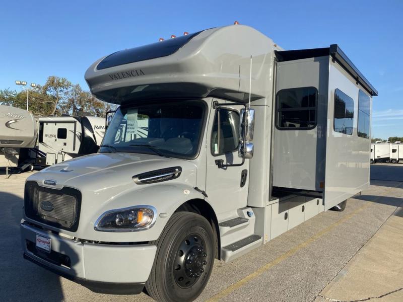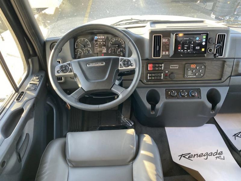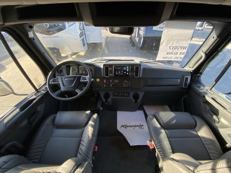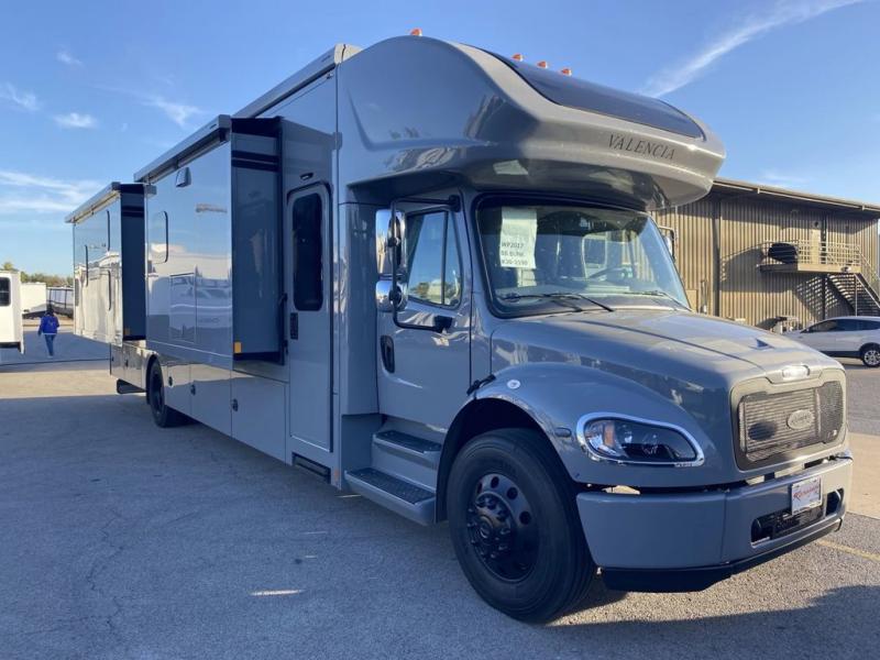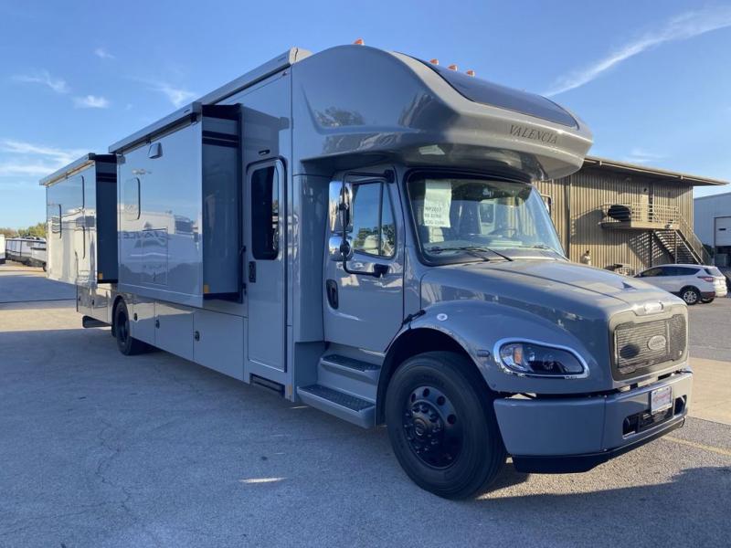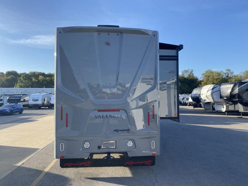 Each one of these Renegade Valencia Super C diesel motorhomes offer ultimate comfort and durable construction! They have a Freightliner S2RV chassis for a refined ride with responsive handling, as well as a powerful Cummins ISB 360 HP engine with a 3,000MH Alison transmission and a single 100 gallon fuel tank to get you farther. A few of the beautifully designed interior features are the solid hardwood cabinets, the polished solid surface countertops, and the stainless steel appliances. Travel in comfort and style with the modern furniture and abundant storage areas like the exterior steel storage compartments with carpeted lining. You will also appreciate the four point automatic hydraulic leveling system and the multiplex system with Bluetooth app control. With eight colorway paint options and three interior décor options, you can be sure to find the right one for you!