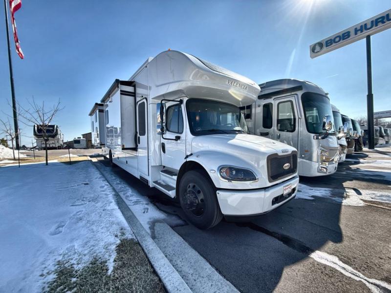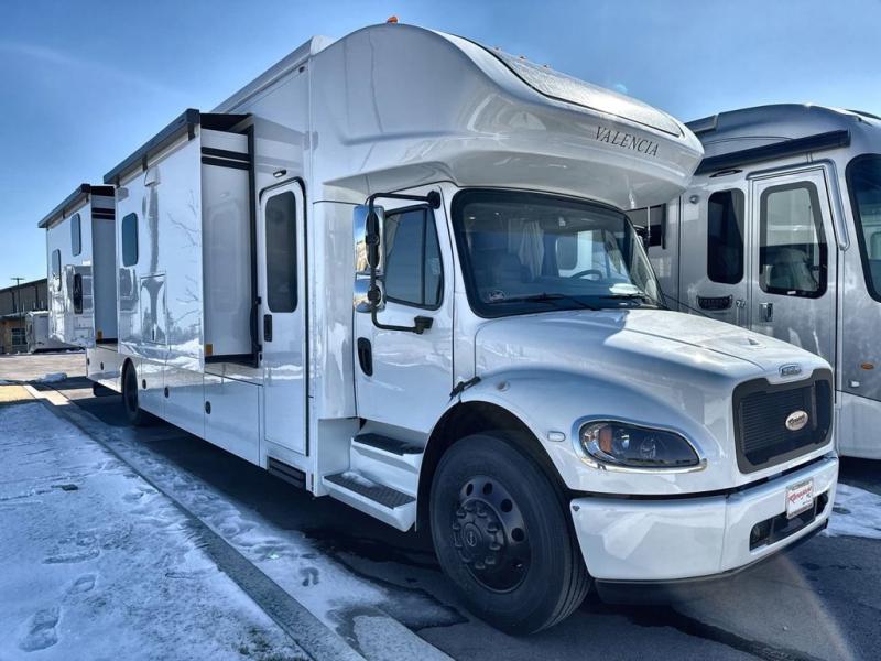 Each one of these Renegade Valencia Super C diesel motorhomes offer ultimate comfort and durable construction! They have a Freightliner S2RV chassis for a refined ride with responsive handling, as well as a powerful Cummins ISB 360 HP engine with a 3,000MH Alison transmission and a single 100 gallon fuel tank to get you farther. A few of the beautifully designed interior features are the solid hardwood cabinets, the polished solid surface countertops, and the stainless steel appliances. Travel in comfort and style with the modern furniture and abundant storage areas like the exterior steel storage compartments with carpeted lining. You will also appreciate the four point automatic hydraulic leveling system and the multiplex system with Bluetooth app control. With eight colorway paint options and three interior décor options, you can be sure to find the right one for you!