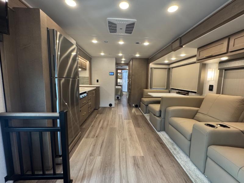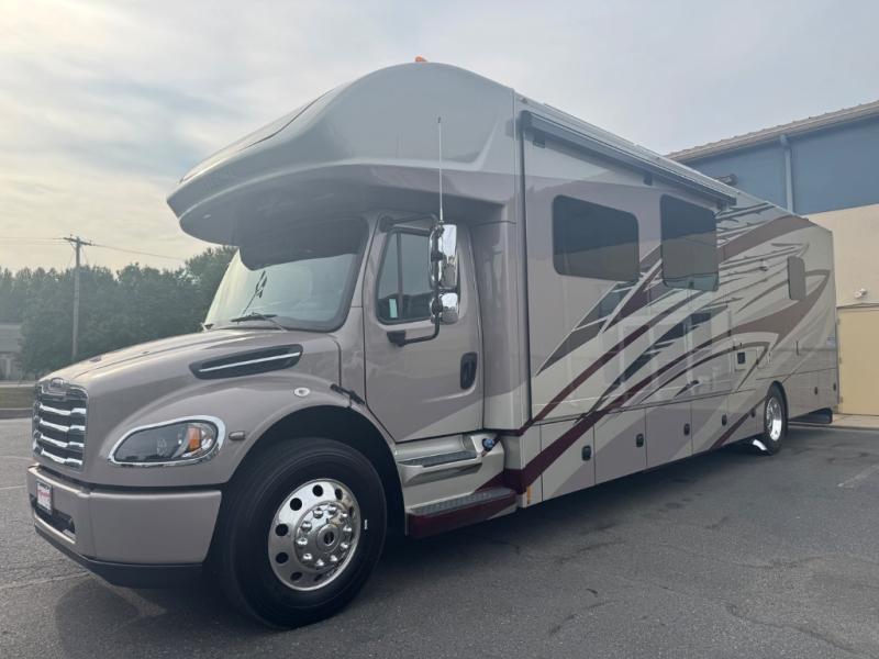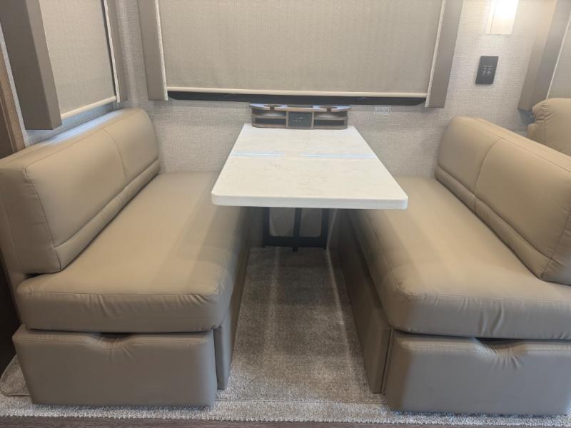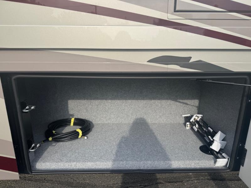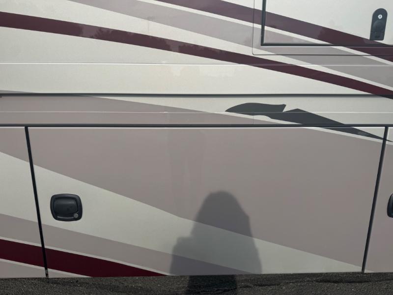 Renegade Valencia Super C diesel motorhome 39RB highlights: Bath and a Half Master Suite Bunk Over Cab Hide-A-Bed Sofa Residential Refrigerator Two Slides Start traveling the right way with this motorhome! There is plenty of entertainment throughout the inside and outside between the exterior entertainment center with a 32" Smart LED TV, a 42" Smart LED TV in the living area, and a 32" Smart LED TV in the private bedroom. Across from the half bathroom is an area pre-wired and plumbed for an optional washer and dryer so you can have clean clothes for your entire trip if you choose. The master suite has a 66" x 74" mini-king bed to lay your head on at night and access to the full rear bathroom which has a radius shower with a skylight above for natural lighting and overhead cabinets to store your toiletries. The sofa sleeper and booth dinette offer comfortable places to enjoy meals, socialize, and even transform into sleeping spaces! Each one of these Renegade Valencia Super C diesel motorhomes offer ultimate comfort and durable construction! They have a Freightliner S2RV chassis for a refined ride with responsive handling, as well as a powerful Cummins ISB 360 HP engine with a 3,000MH Alison transmission and a single 100-gallon fuel tank to get you farther. A few of the beautifully designed interior features are the solid hardwood cabinets, the polished solid surface countertops, and the stainless-steel appliances. Travel in comfort and style with the modern furniture and abundant storage areas like the exterior steel storage compartments with carpeted lining. You will also appreciate the four-point automatic hydraulic leveling system and the multiplex system with Bluetooth app control. With eight colorway paint options and three interior décor options, you can be sure to find the right one for you! Visit us at Campers Inn Signature RV today!