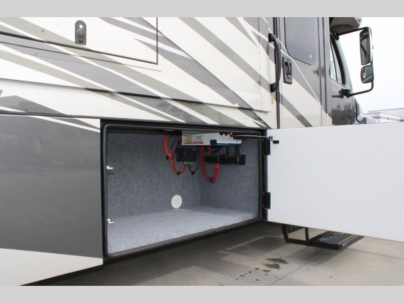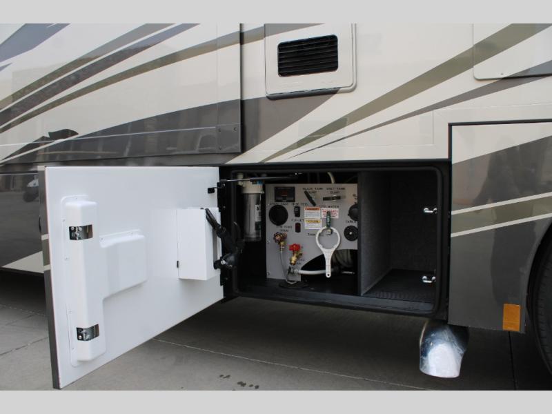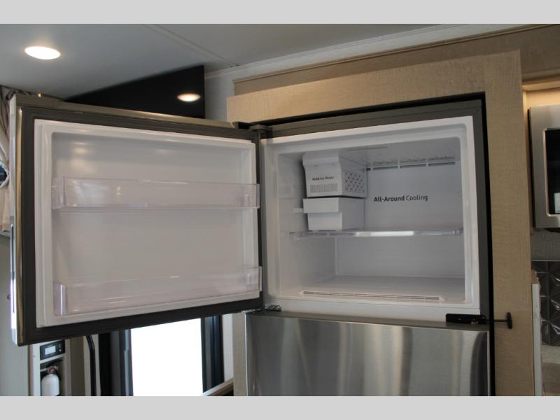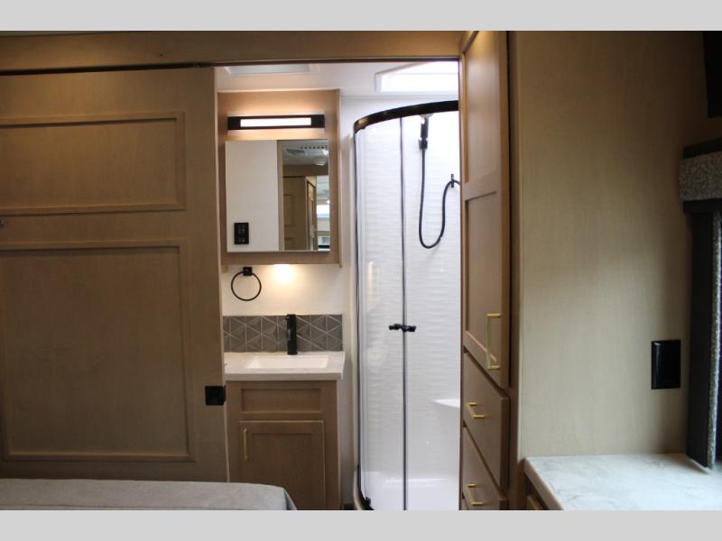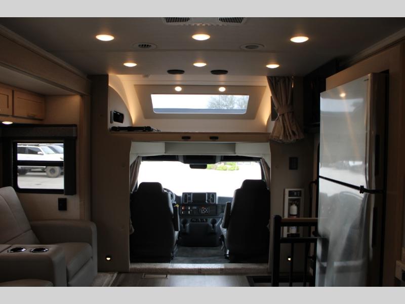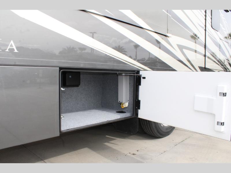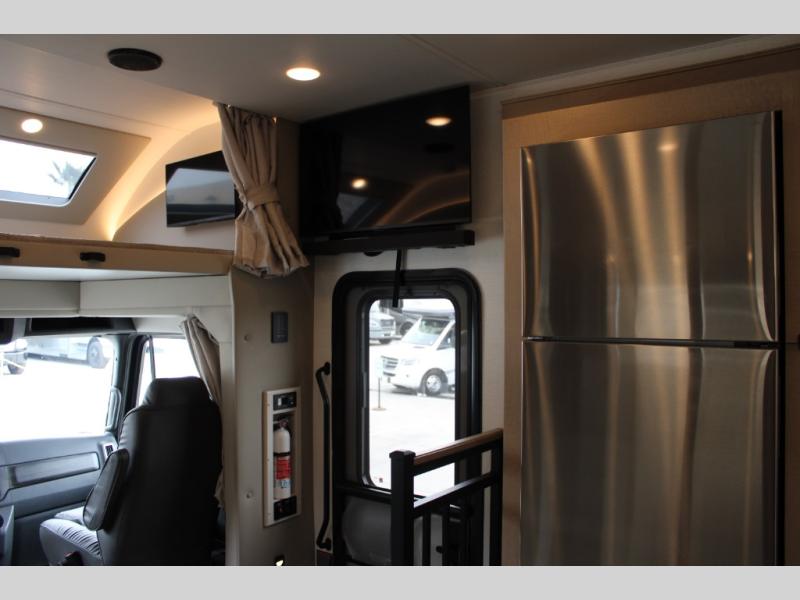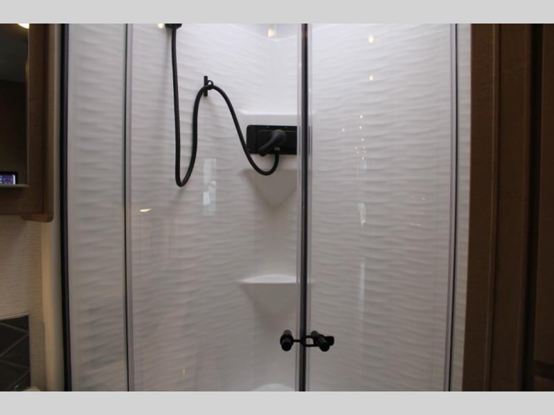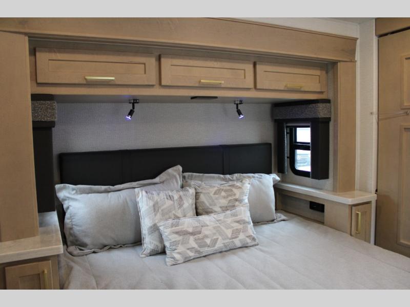 Start traveling the right way with this motorhome! There is plenty of entertainment throughout the inside and outside between the exterior entertainment center with a 32" Smart LED TV, a 42" Smart LED TV in the living area, and a 32" Smart LED TV in the private bedroom. Across from the half bathroom is an area pre-wired and plumbed for an optional washer and dryer so you can have clean clothes for your entire trip if you choose. The master suite has a 66" x 74" mini-king bed to lay your head on at night and access to the full rear bathroom which has a radius shower with a skylight above for natural lighting and overhead cabinets to store your toiletries. The sofa sleeper and booth dinette offer comfortable places to enjoy meals, socialize, and even transform into sleeping spaces!