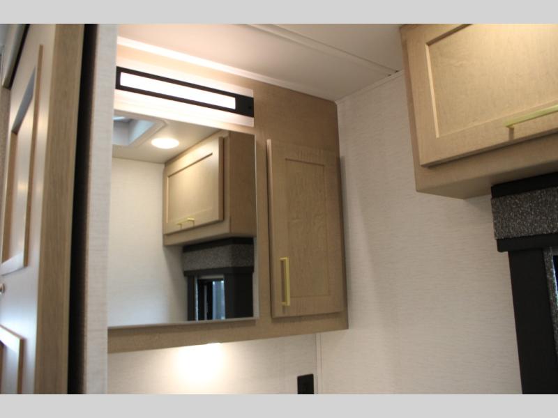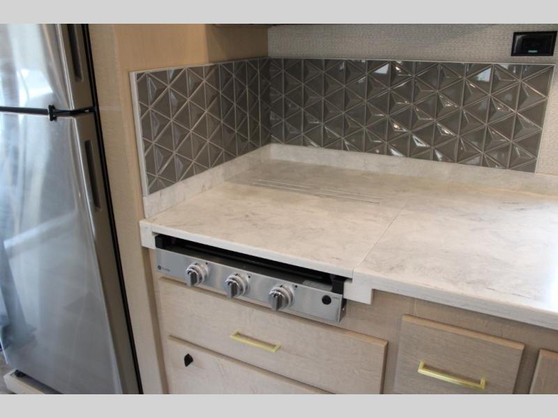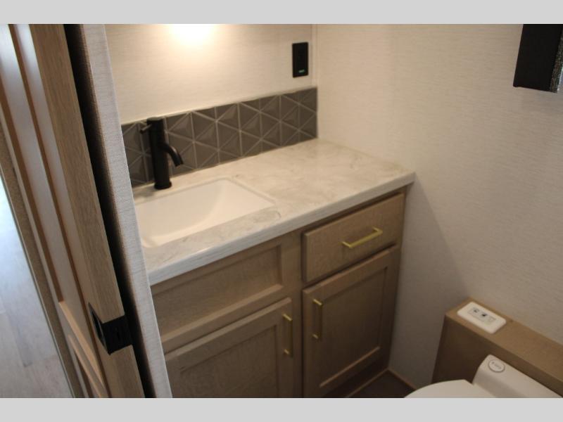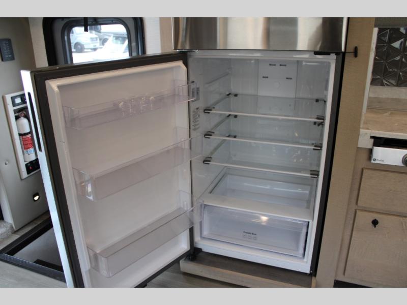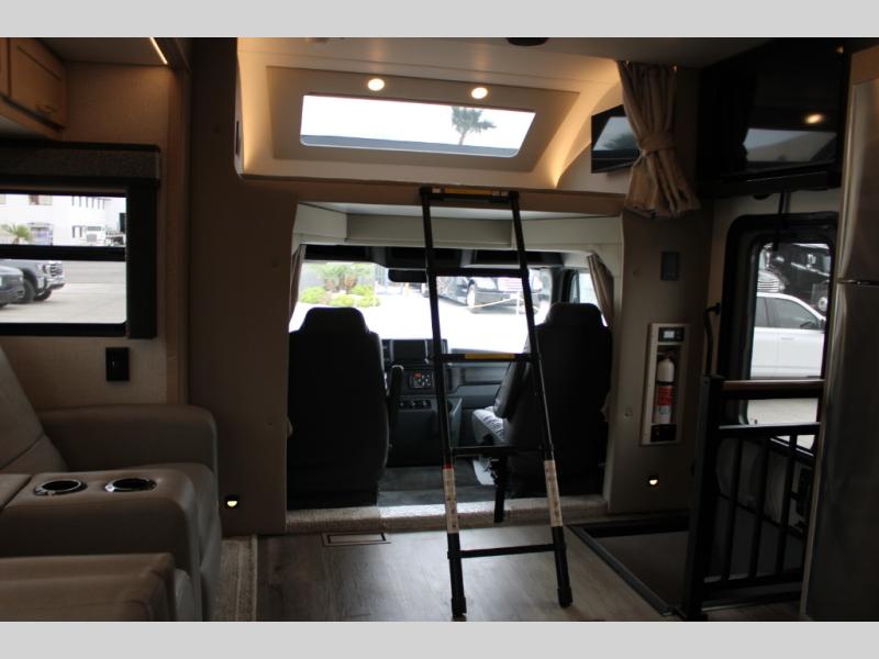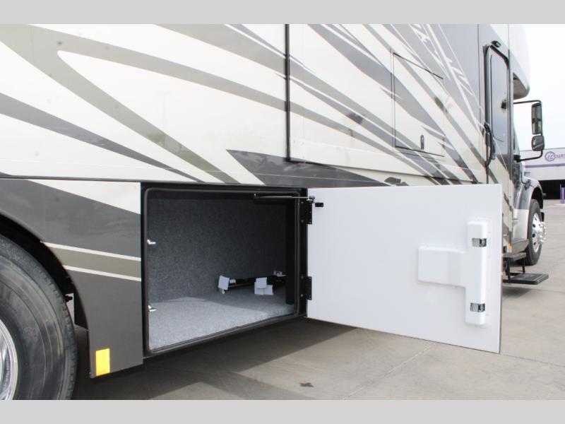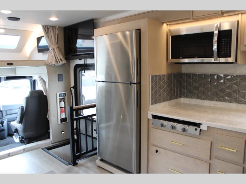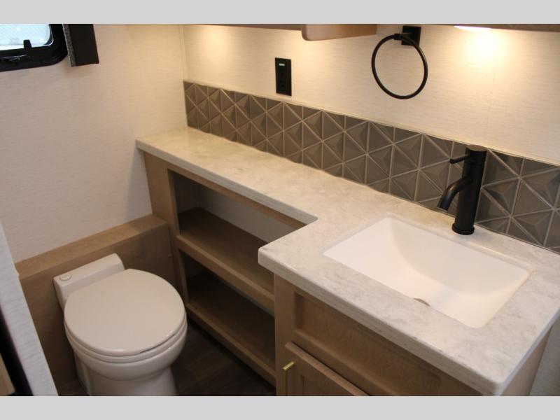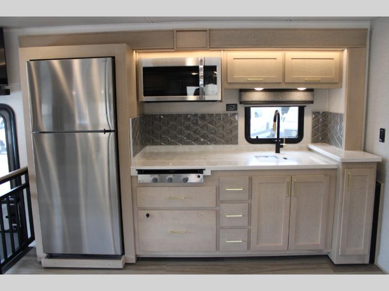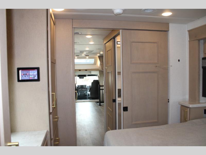 Start traveling the right way with this motorhome! There is plenty of entertainment throughout the inside and outside between the exterior entertainment center with a 32" Smart LED TV, a 42" Smart LED TV in the living area, and a 32" Smart LED TV in the private bedroom. Across from the half bathroom is an area pre-wired and plumbed for an optional washer and dryer so you can have clean clothes for your entire trip if you choose. The master suite has a 66" x 74" mini-king bed to lay your head on at night and access to the full rear bathroom which has a radius shower with a skylight above for natural lighting and overhead cabinets to store your toiletries. The sofa sleeper and booth dinette offer comfortable places to enjoy meals, socialize, and even transform into sleeping spaces!