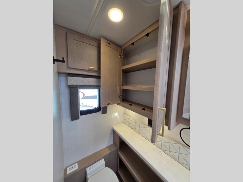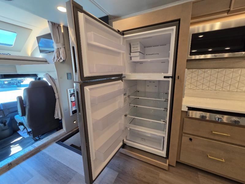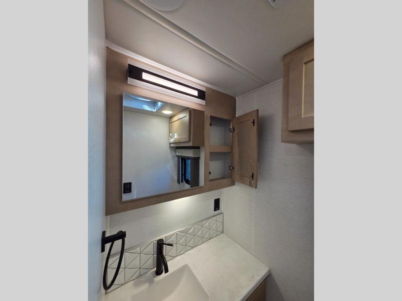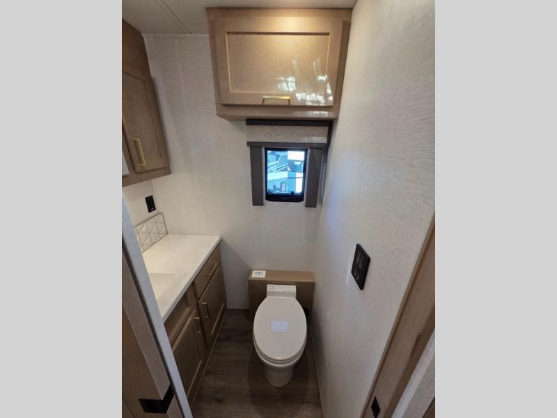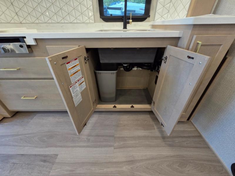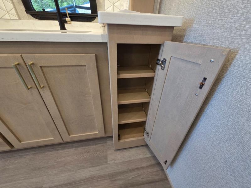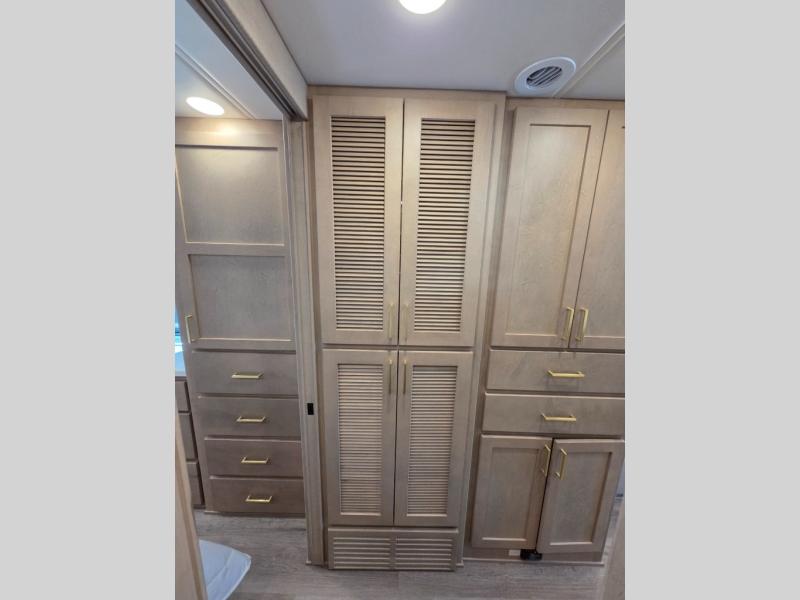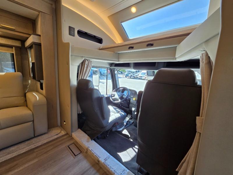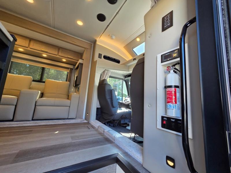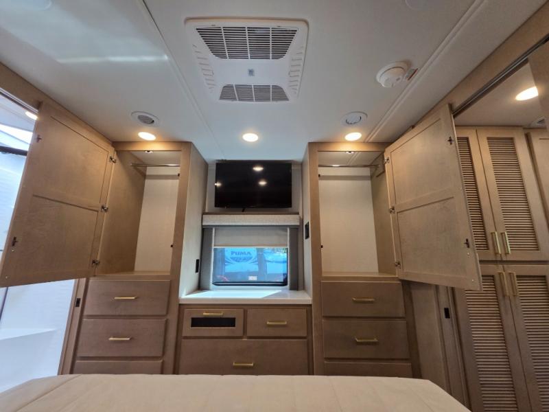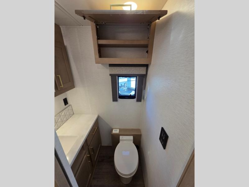 Start traveling the right way with this motorhome! There is plenty of entertainment throughout the inside and outside between the exterior entertainment center with a 32" Smart LED TV, a 42" Smart LED TV in the living area, and a 32" Smart LED TV in the private bedroom. Across from the half bathroom is an area pre-wired and plumbed for an optional washer and dryer so you can have clean clothes for your entire trip if you choose. The master suite has a 66" x 74" mini-king bed to lay your head on at night and access to the full rear bathroom which has a radius shower with a skylight above for natural lighting and overhead cabinets to store your toiletries. The sofa sleeper and booth dinette offer comfortable places to enjoy meals, socialize, and even transform into sleeping spaces!