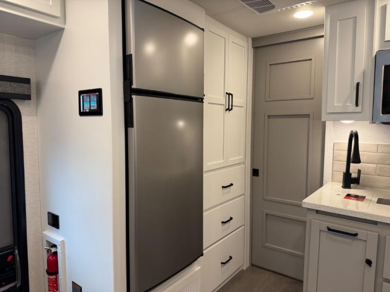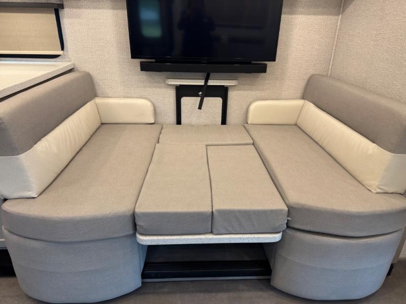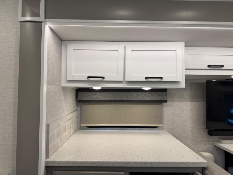 Renegade Veracruz 32VDS Super C diesel motorhome highlights: Full Bathroom Bunk Over Cab Queen Bed Outside Entertainment Center Experience ultimate luxury on wheels in this motor home bedroom. A 65 x 75 queen bed comfort with 32” LED TV entertainment and a full bathroom convenience with ample storage. The kitchen is fitted with spacious closet organization, 10 cu. stainless steel refrigerator, microwave, two-burner cooktop, overhead cabinets, and a pantry storage ideal for storing different stuff. In the living room, you will find a 42” LED TV, overhead cabinets, sofa sleeper flexibility, dinette dining, and a cab-over bed for extra sleep. This unit is also equipped with outdoor entertainment, perfect for socializing and outdoor fun, allowing you to experience extended trips with family during vacations, ideal for those who are adventure-seekers. Unforgettable adventures await! Experience the freedom of luxury motorhome living. You will have the confidence to go anywhere with the Renegade Veracruz Super C diesel motorhome! It is built with a 6.7L power stroke diesel engine with 330 horsepower and a four-wheel drive system to go off-road when the adventure calls for it. The 8" LCD touchscreen infotainment with wireless phone connection will come in handy when you want to play your favorite tunes. Some other key features to make note of are the XLT trim package, the four-point automatic hydraulic leveling system, the Maxx Air fans in the bath and living area, and ducted heating and air conditioning to keep you comfortable all year long! The interior will have you feeling right at home with three stylish decor options, solid surface countertops throughout, solid wood cabinets, and plenty of storage for all your belongings! Model Year 2025 specs and info shown. Please ask for exact details on this RV at Campers Inn Signature RV