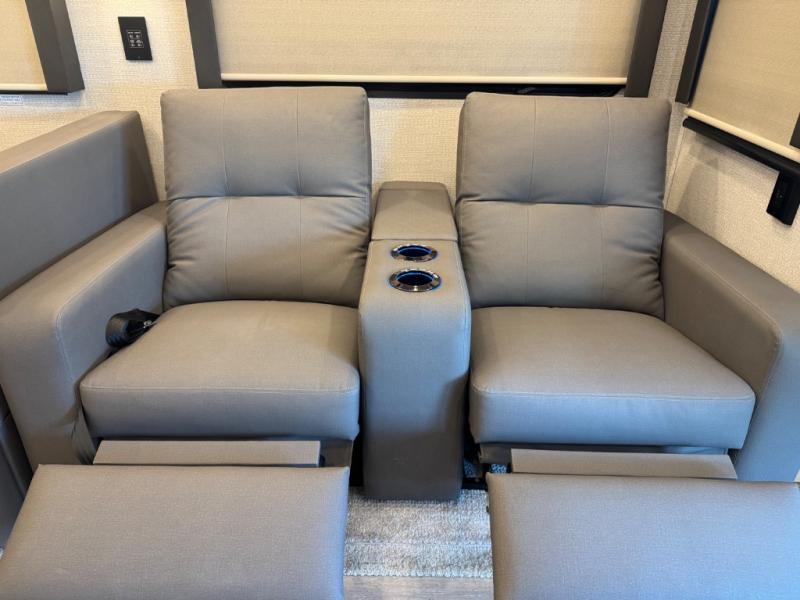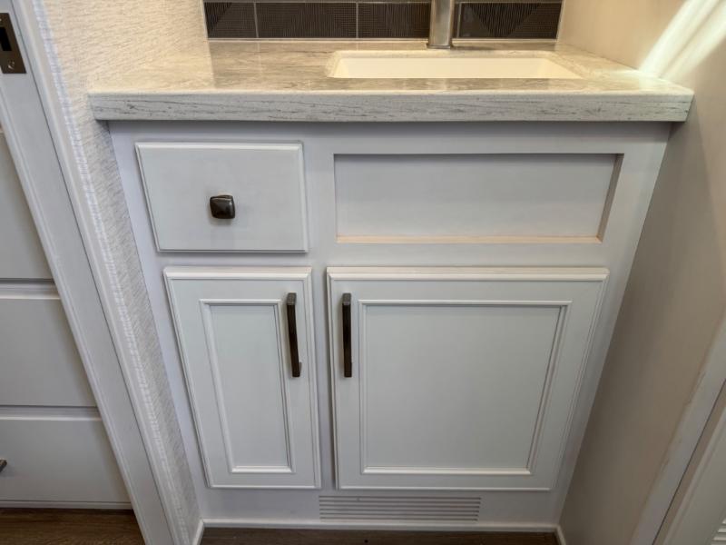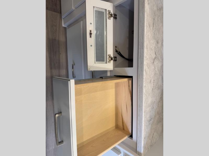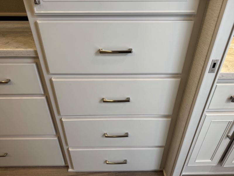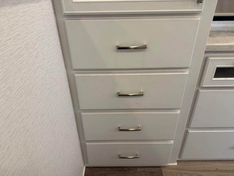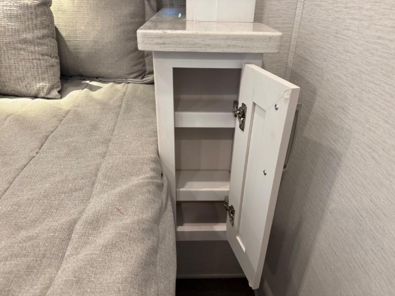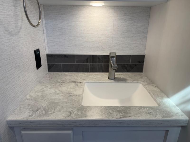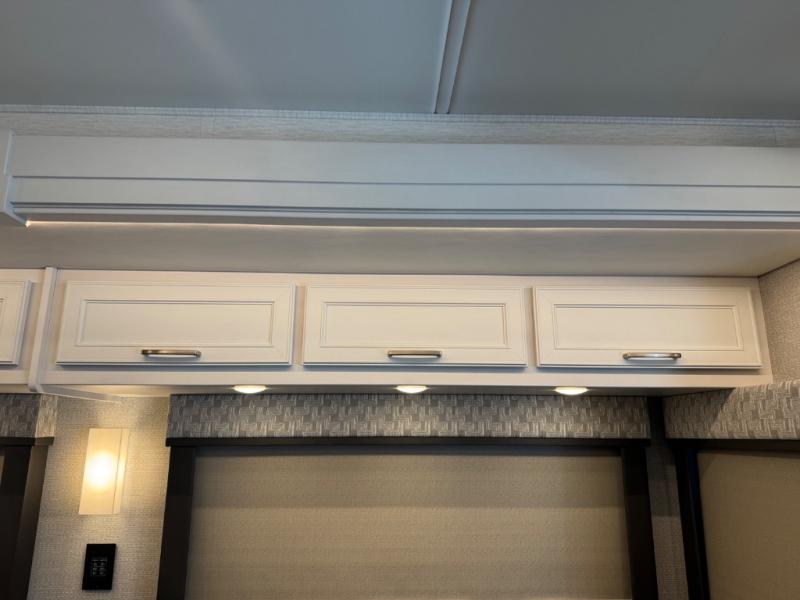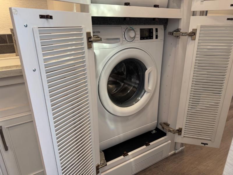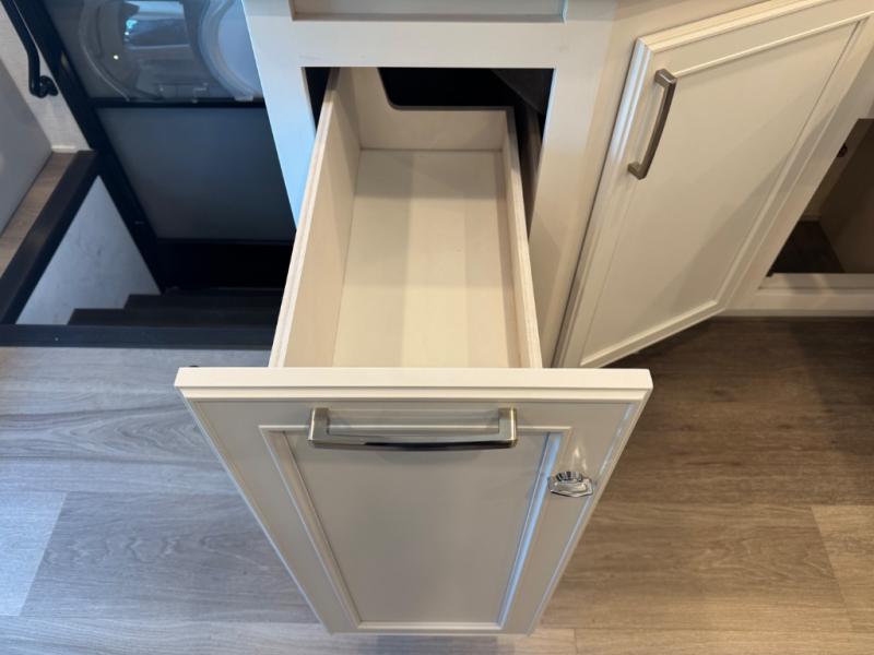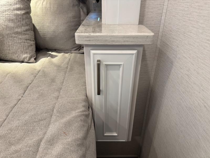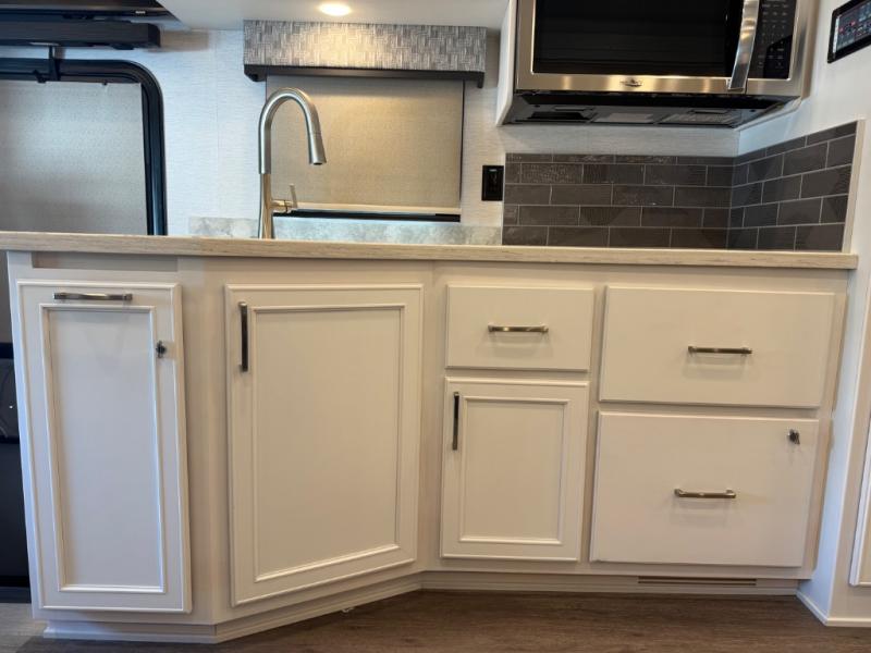 Whether you travel while you work or enjoy long-trips in your RV, this coach provides all the luxury, flexibility and comfort you could want! The main living and kitchen area is spacious with a furniture slide which includes a booth dinette and a slide-a-bed sofa which both offer sleeping space when needed for guests. The cook will love using the stainless steel convection microwave oven and the induction cooktop when making meals, and the French door residential refrigerator will hold lots of cold food. The separated bathroom allows two people to get ready at once, and the mini-king bed slide gives you more floor space in the bedroom to get to the closets and dresser. You will find a 32" 4K Smart LED TV in the bedroom to watch before bedtime, and the exterior offers a 32" LED TV to watch the big game while relaxing under the electric awning with LED lights. And you might like to add the washer/dryer option to the prepped closet to keep everything clean while on the road.