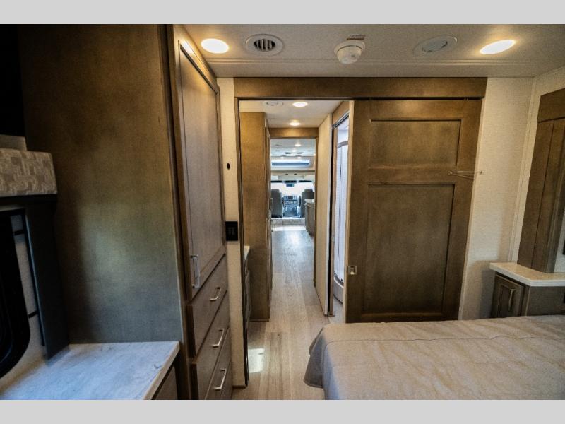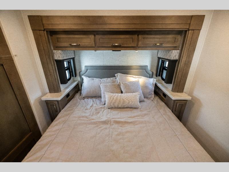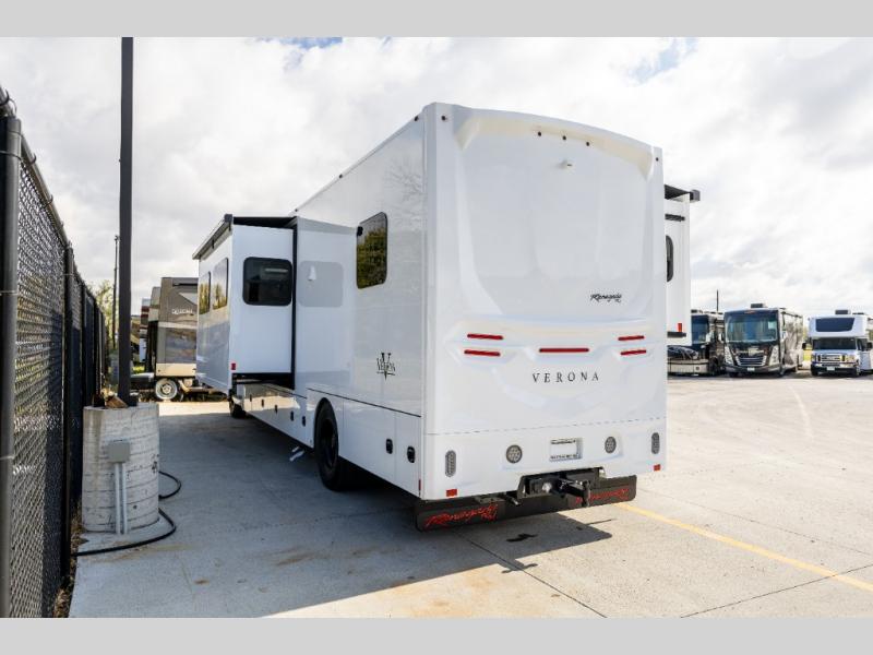 With any Renegade Verona Super C diesel motorhome, you will have confidence to explore the open road! The Cummins 360HP 3200TRV Allison transmission gives you the power and performance to travel anywhere, and the 3000-watt true sine wave inverter makes this an electric coach, plus the aluminum automotive cab construction is designed and tested for occupant protection. The interior boast about the solid hardwood cabinets including every cabinet stile and passage door are made from hardwood for true residential craftsmanship and the articulating cabinet hinges complete the package. More luxurious features include the solid surface countertops, the memory foam mattress, and the wavy patterned fiberglass shower with a glass door. Choose extreme luxury, purpose and durability; take a Verona on the road today!