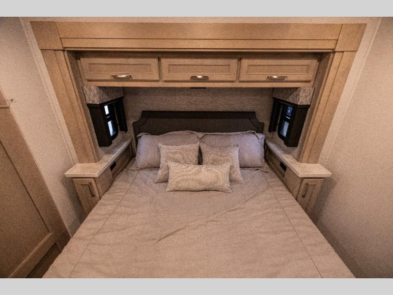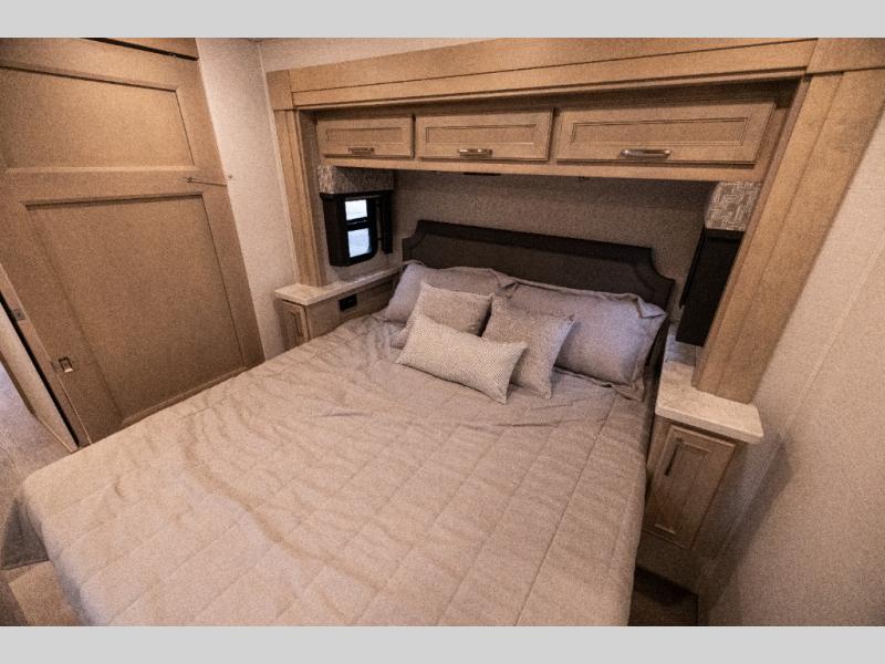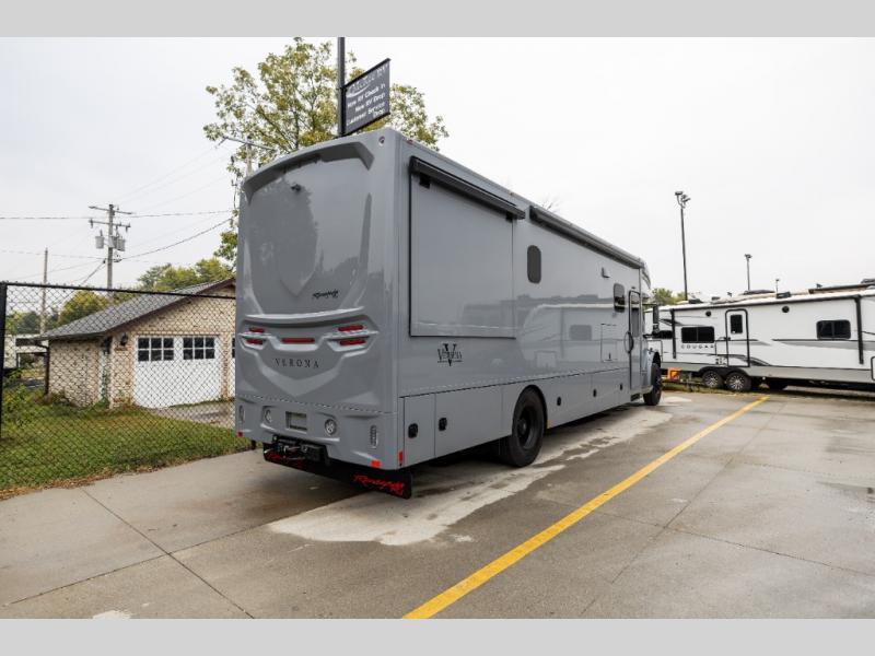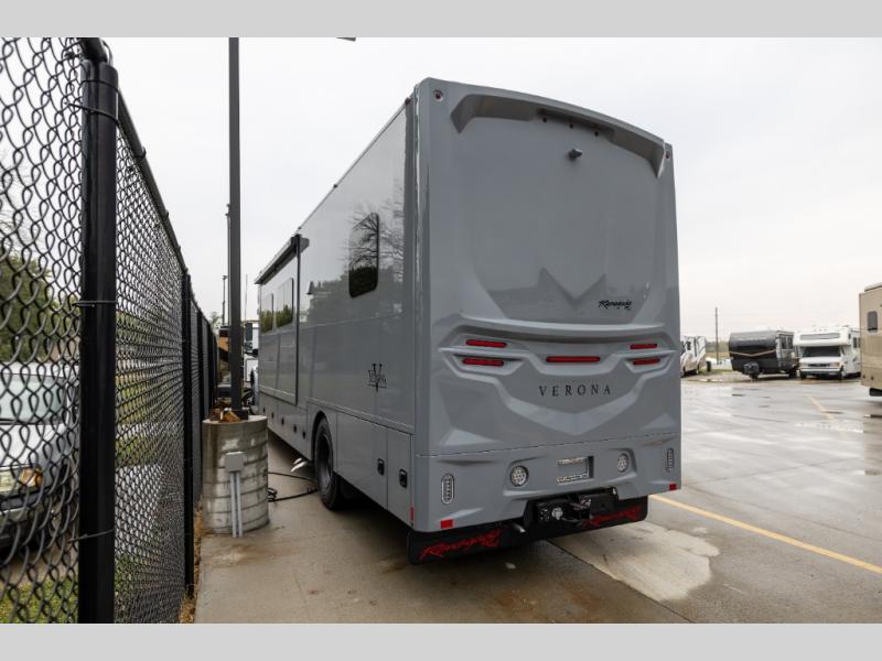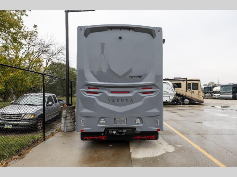 With any Renegade Verona Super C diesel motorhome, you will have confidence to explore the open road! The Cummins 360HP 3200TRV Allison transmission gives you the power and performance to travel anywhere, and the 3000-watt true sine wave inverter makes this an electric coach, plus the aluminum automotive cab construction is designed and tested for occupant protection. The interior boast about the solid hardwood cabinets including every cabinet stile and passage door are made from hardwood for true residential craftsmanship and the articulating cabinet hinges complete the package. More luxurious features include the solid surface countertops, the memory foam mattress, and the wavy patterned fiberglass shower with a glass door. Choose extreme luxury, purpose and durability; take a Verona on the road today!