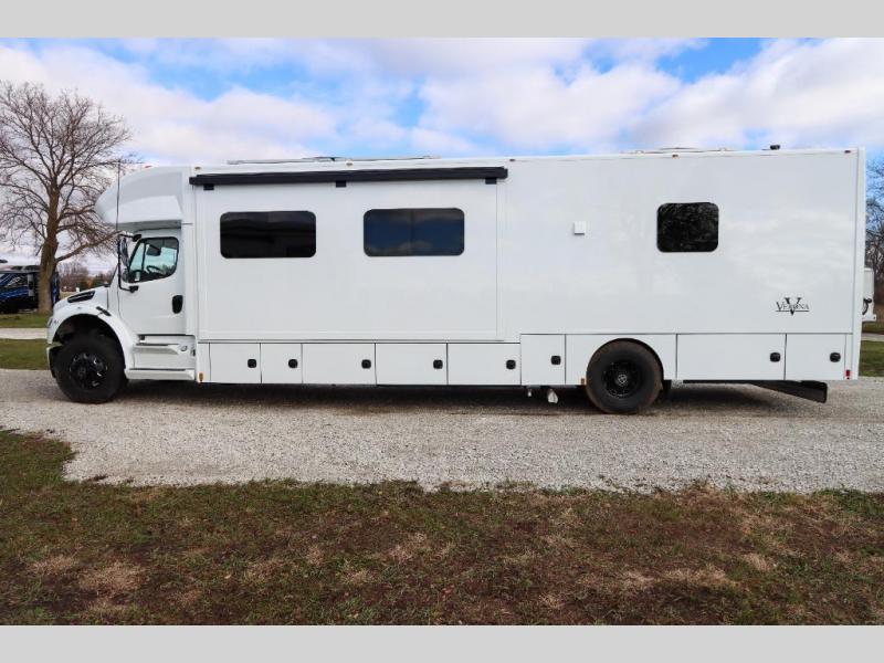 Hit the road to watch the leaves change in the fall, enjoy the sunshine during the summer and experience every season in its beauty! You can sleep like royalty in this coach while your family or friends enjoy comfortable accommodations on the bunk beds or the furniture that doubles as extra sleeping space when needed. The rear bedroom also offers a 32" 4K Smart LED TV, closets and a space prepped to add the washer/dryer option. The bunk beds are across from the full bathroom which offers a radius shower with a skylight. The cook will enjoy making meals using the induction cooktop and the convection microwave oven, and the French door residential refrigerator will hold lots of food and beverages. The booth dinette and sofa sleeper slide are a great place to visit and watch the 43" 4K Smart LED TV or head outside to sit under the electric awning with LED lights and watch the exterior 32" LED TV.