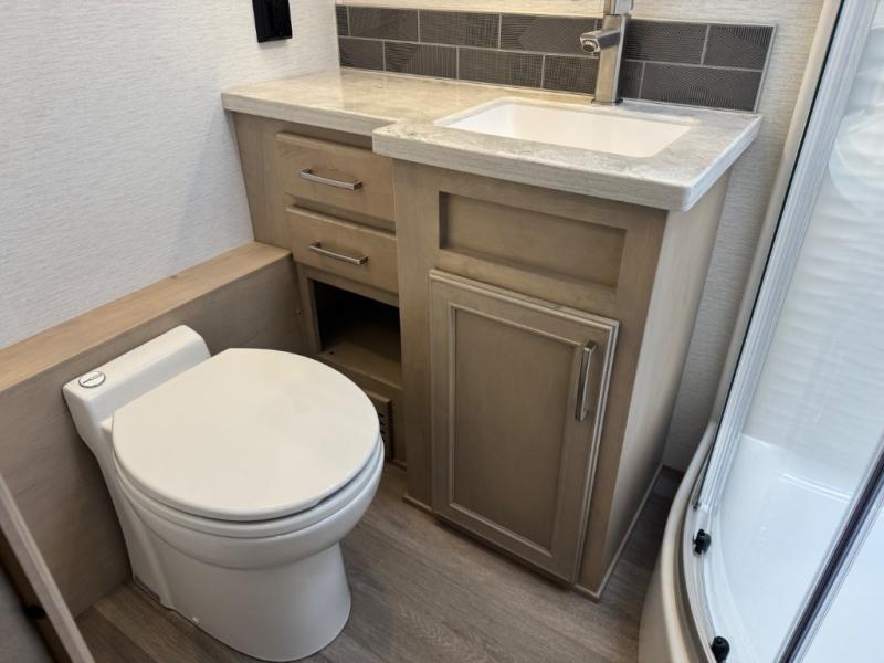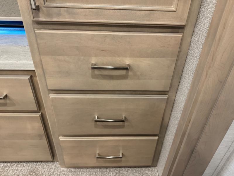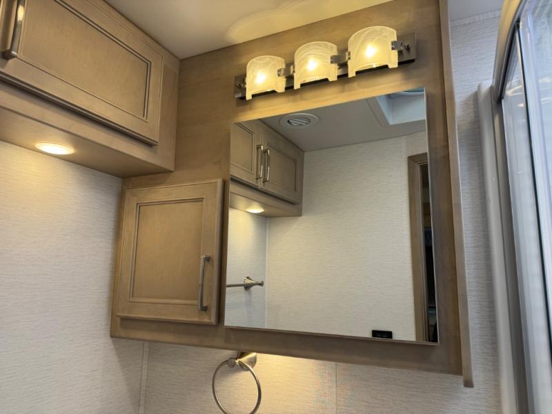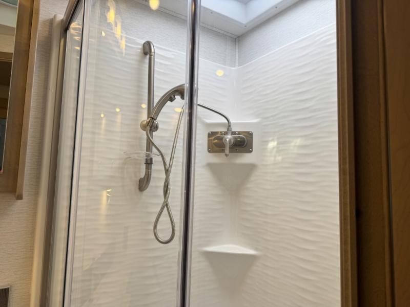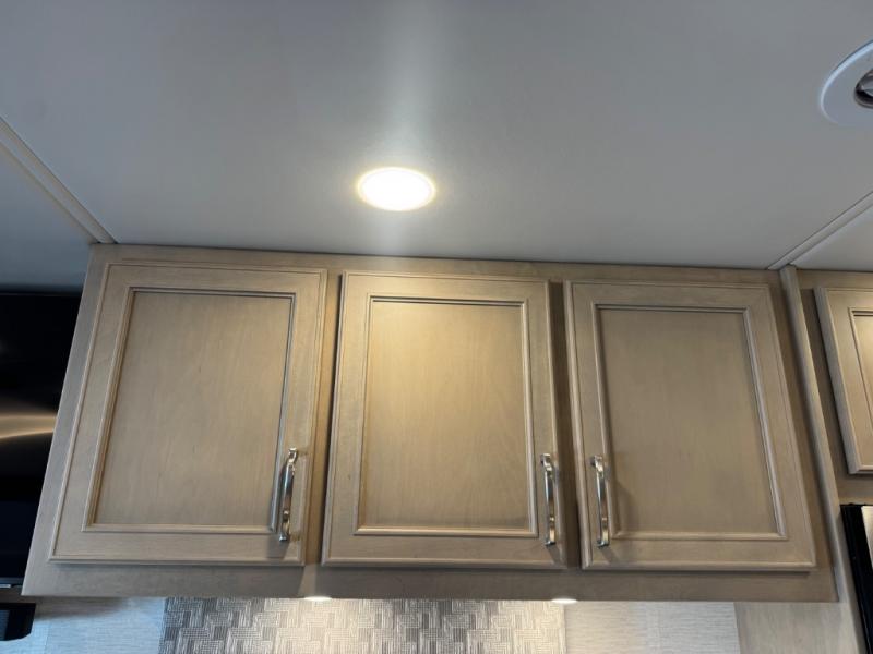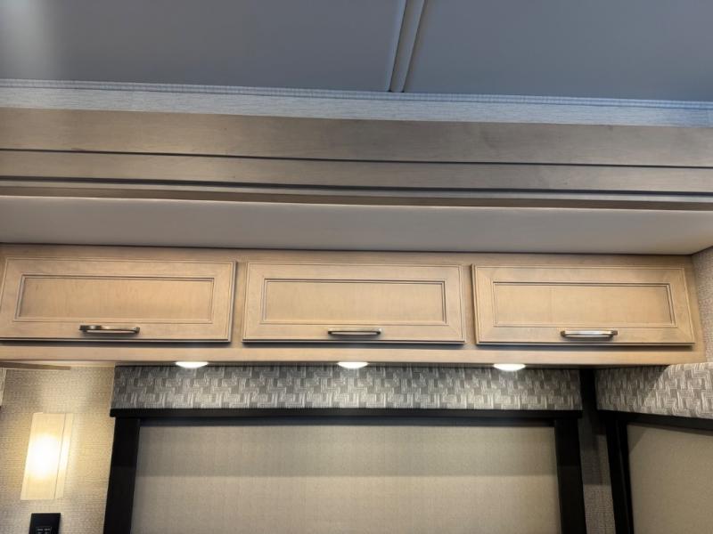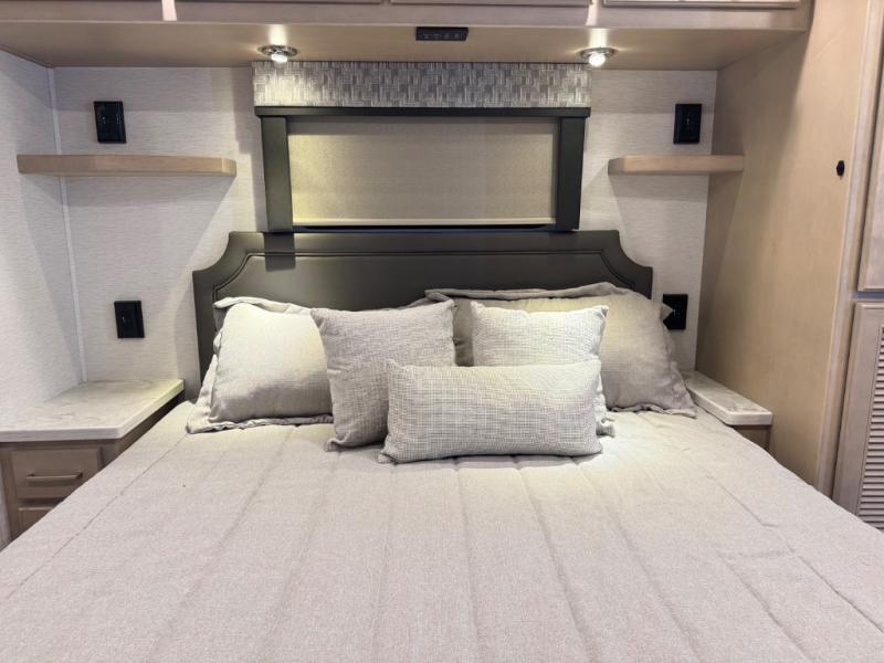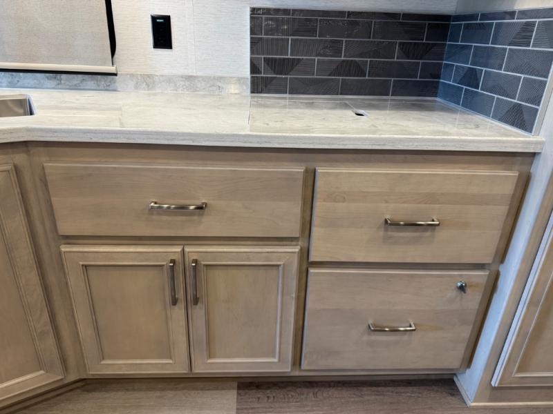 With any Renegade Verona Super C diesel motorhome, you will have confidence to explore the open road! The Cummins 360HP 3200TRV Allison transmission gives you the power and performance to travel anywhere, and the 3000-watt true sine wave inverter makes this an electric coach, plus the aluminum automotive cab construction is designed and tested for occupant protection. The interior boast about the solid hardwood cabinets including every cabinet stile and passage door are made from hardwood for true residential craftsmanship and the articulating cabinet hinges complete the package. More luxurious features include the solid surface countertops, the memory foam mattress, and the wavy patterned fiberglass shower with a glass door. Choose extreme luxury, purpose and durability; take a Verona on the road today!