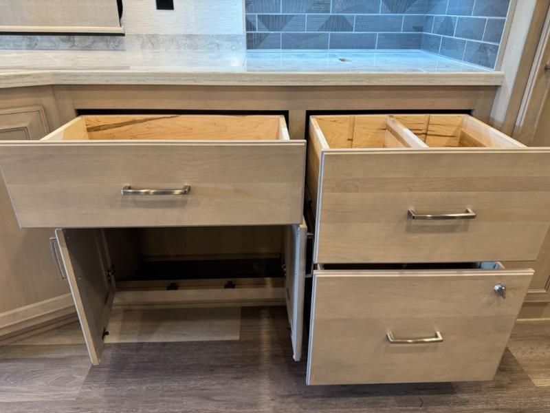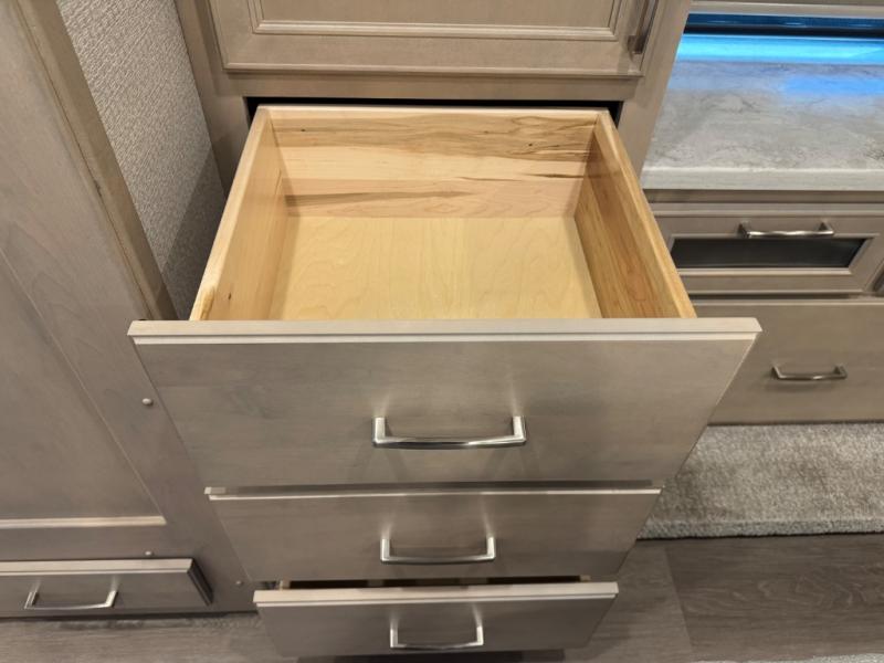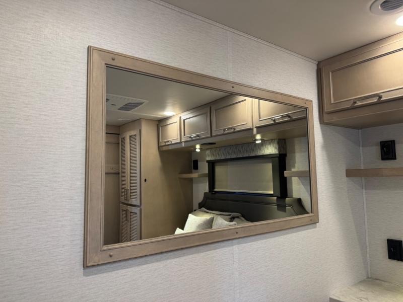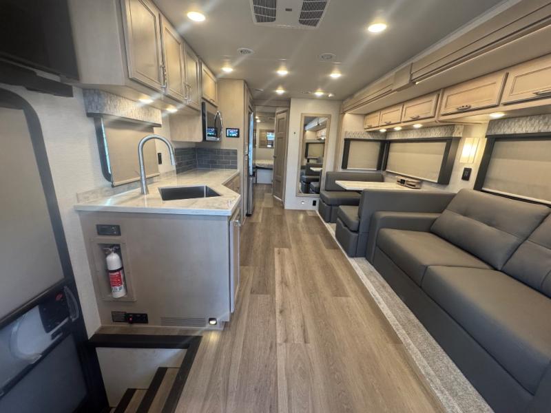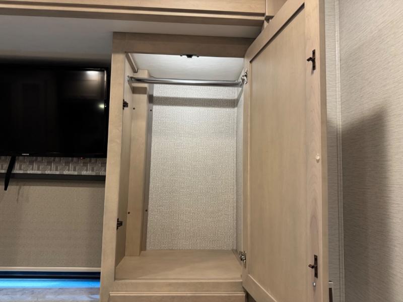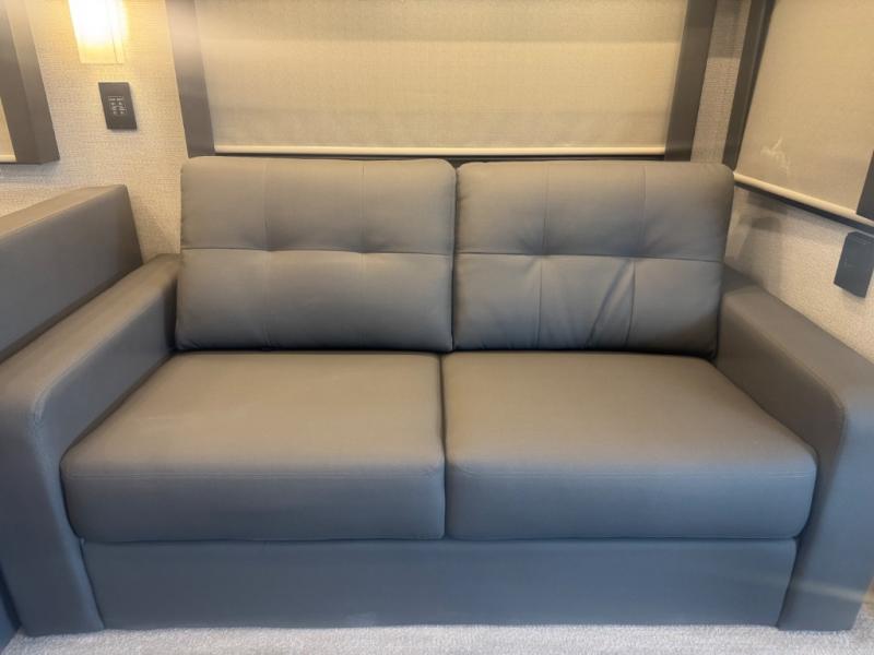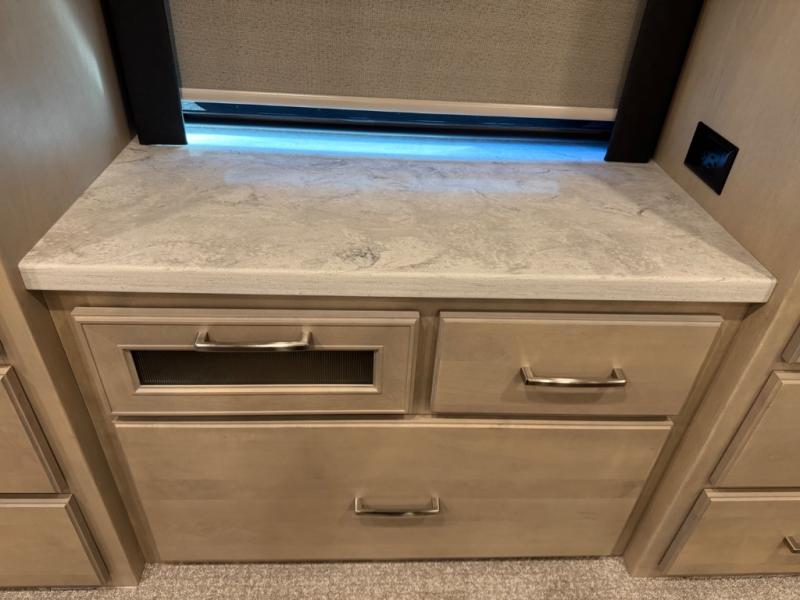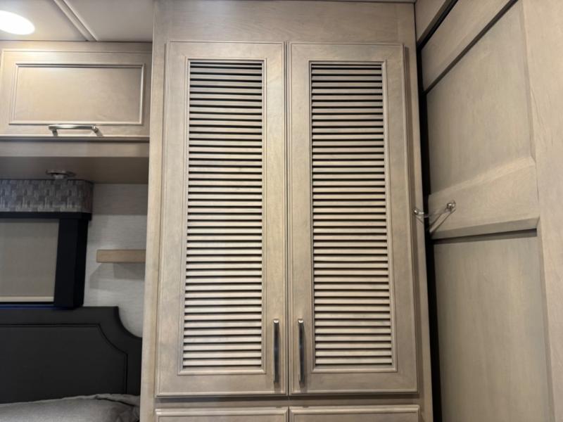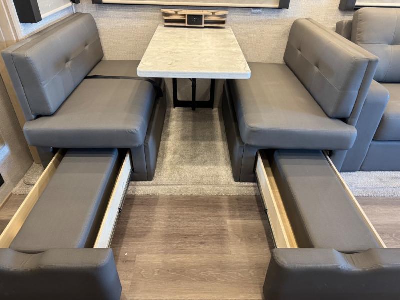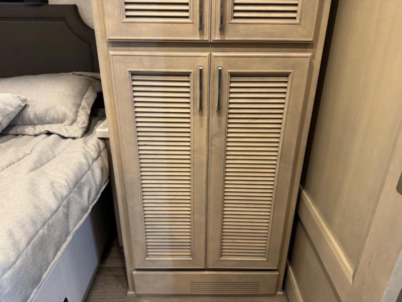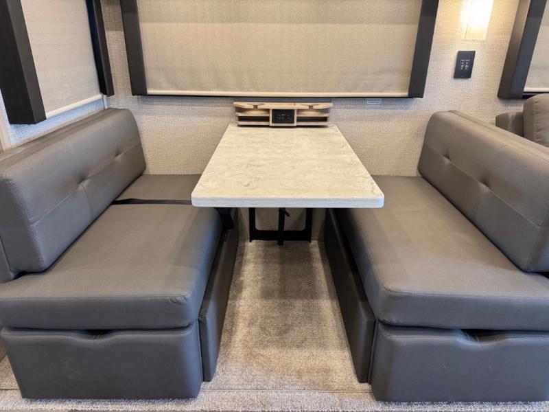 Hit the road to watch the leaves change in the fall, enjoy the sunshine during the summer and experience every season in its beauty! You can sleep like royalty in this coach while your family or friends enjoy comfortable accommodations on the bunk beds or the furniture that doubles as extra sleeping space when needed. The rear bedroom also offers a 32" 4K Smart LED TV, closets and a space prepped to add the washer/dryer option. The bunk beds are across from the full bathroom which offers a radius shower with a skylight. The cook will enjoy making meals using the induction cooktop and the convection microwave oven, and the French door residential refrigerator will hold lots of food and beverages. The booth dinette and sofa sleeper slide are a great place to visit and watch the 43" 4K Smart LED TV or head outside to sit under the electric awning with LED lights and watch the exterior 32" LED TV.