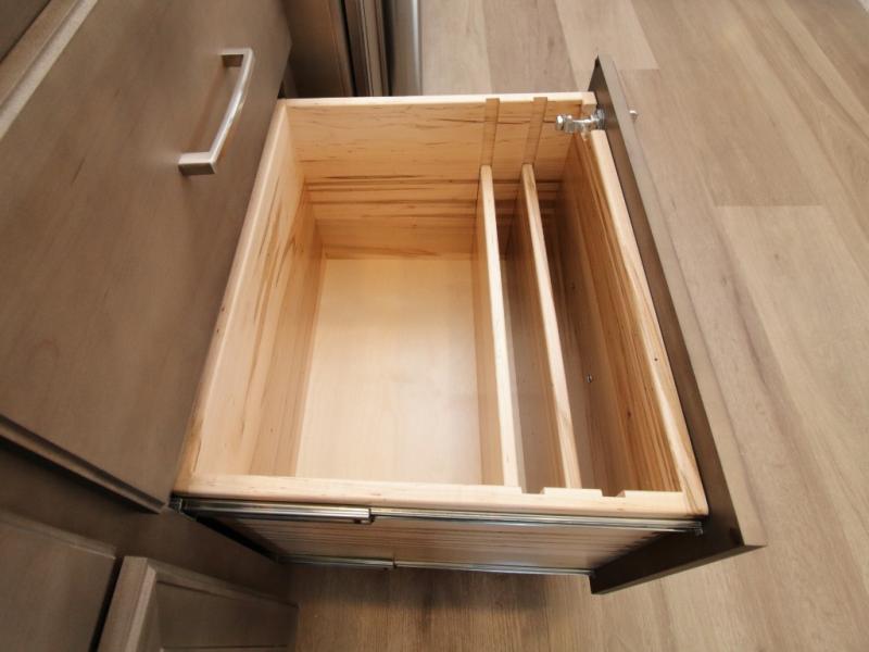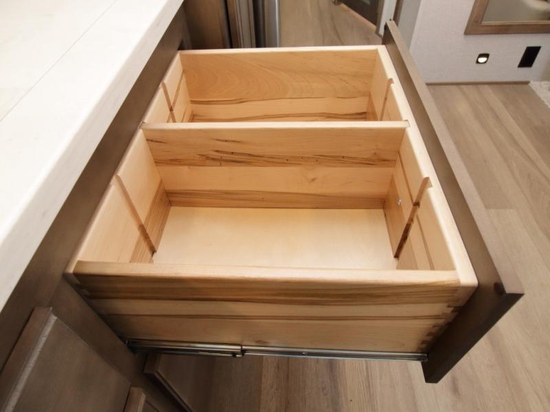 Solid surface countertops and true hardwood cabinetry throughout