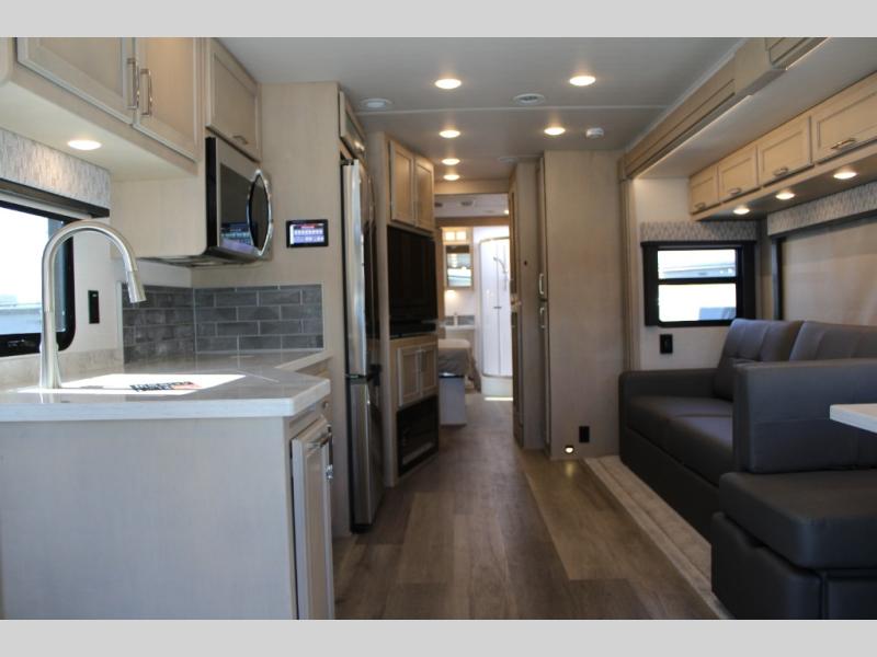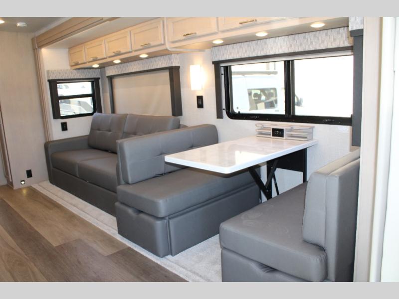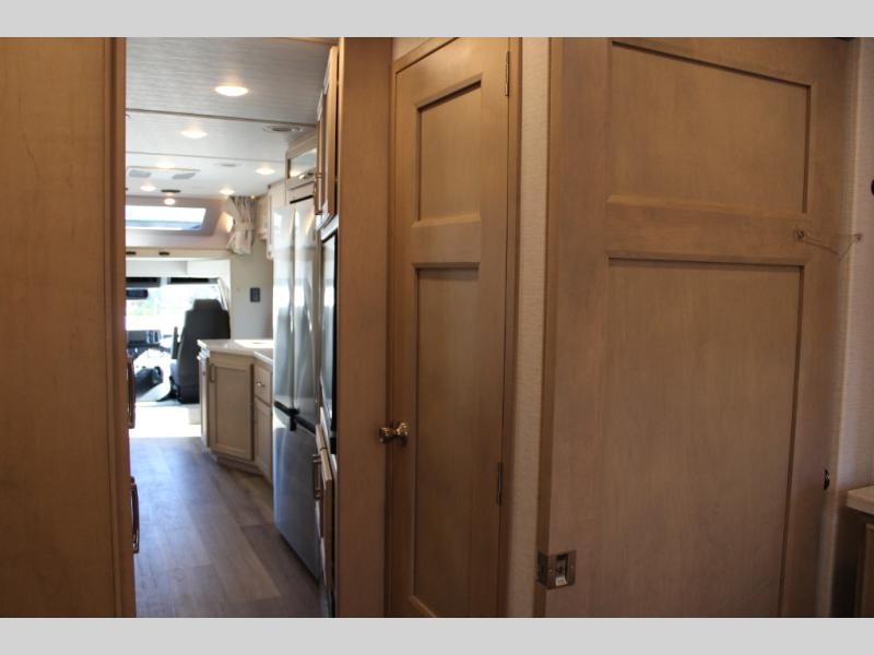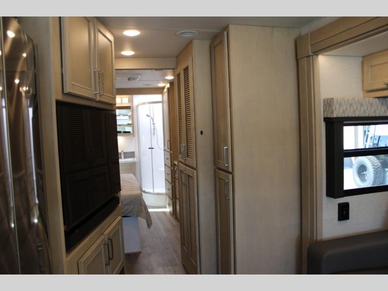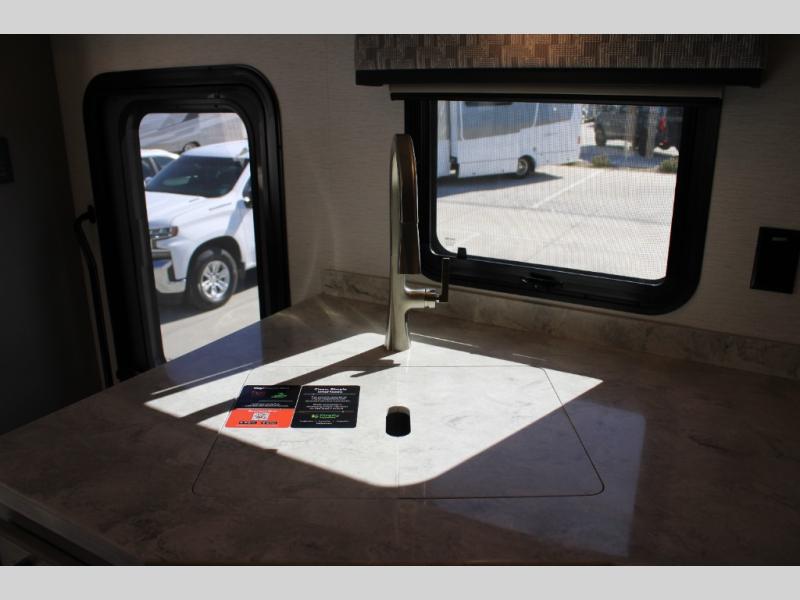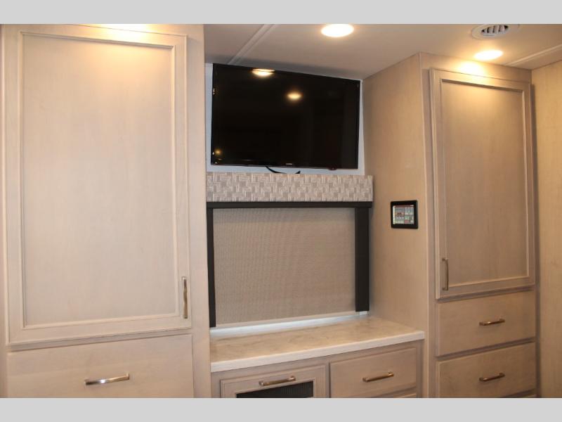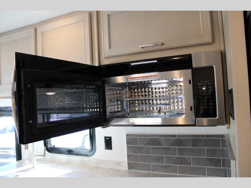 With any Renegade Verona Super C diesel motorhome, you will have confidence to explore the open road! The Cummins 360HP 3200TRV Allison transmission gives you the power and performance to travel anywhere, and the 3000-watt true sine wave inverter makes this an electric coach, plus the aluminum automotive cab construction is designed and tested for occupant protection. The interior boast about the solid hardwood cabinets including every cabinet stile and passage door are made from hardwood for true residential craftsmanship and the articulating cabinet hinges complete the package. More luxurious features include the solid surface countertops, the memory foam mattress, and the wavy patterned fiberglass shower with a glass door. Choose extreme luxury, purpose and durability; take a Verona on the road today!