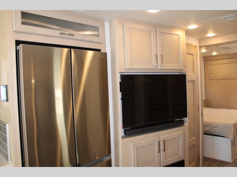 Why not enjoy the ride just as much as the destination, well you can with this Verona! The Airliner rear air suspension, power/heated remote control mirrors, and Freightliner "Safety Assurance package" will make that happen each trip. You will also have all the comforts of home such as the kitchen amenities including a convection microwave oven and a French door residential refrigerator, plus the Ultra-Soft sofa sleeper and booth dinette to relax on. The half bath is super convenient when you have two or more onboard, and the master suite offers a 66" x 74" king bed slide with lots of storage and a 32" 4K Smart LED TV, plus a rear full bathroom. There is so much more to love about this coach, step right up!