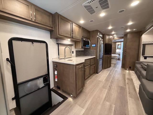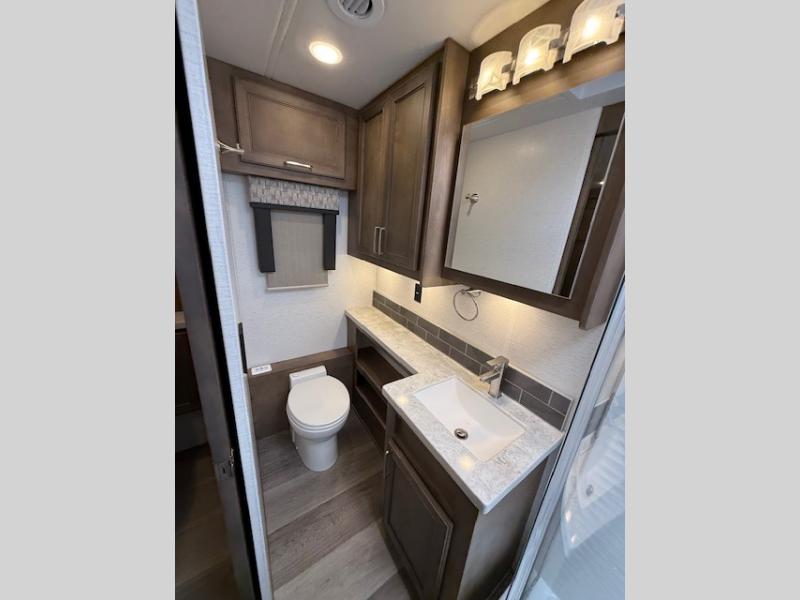 Why not enjoy the ride just as much as the destination, well you can with this Verona! The Airliner rear air suspension, power/heated remote control mirrors, and Freightliner "Safety Assurance package" will make that happen each trip. You will also have all the comforts of home such as the kitchen amenities including a convection microwave oven and a French door residential refrigerator, plus the Ultra-Soft sofa sleeper and booth dinette to relax on. The half bath is super convenient when you have two or more onboard, and the master suite offers a 66" x 74" king bed slide with lots of storage and a 32" 4K Smart LED TV, plus a rear full bathroom. There is so much more to love about this coach, step right up!
