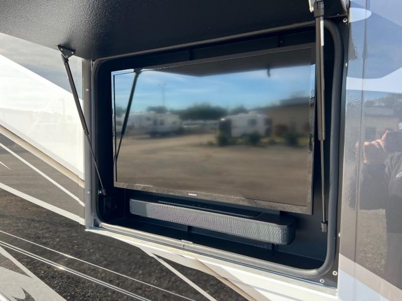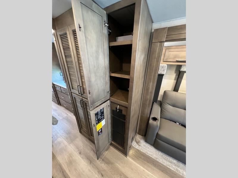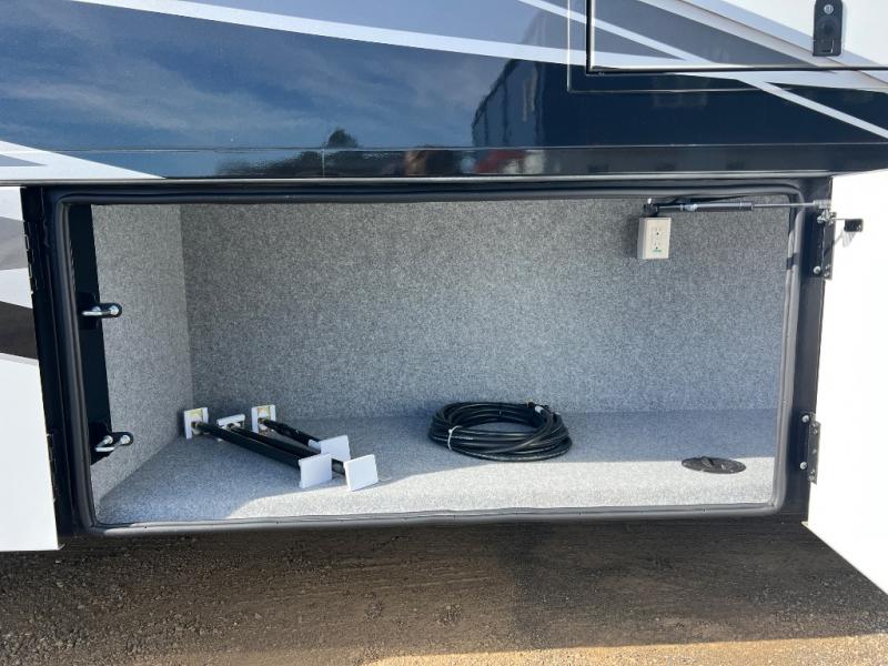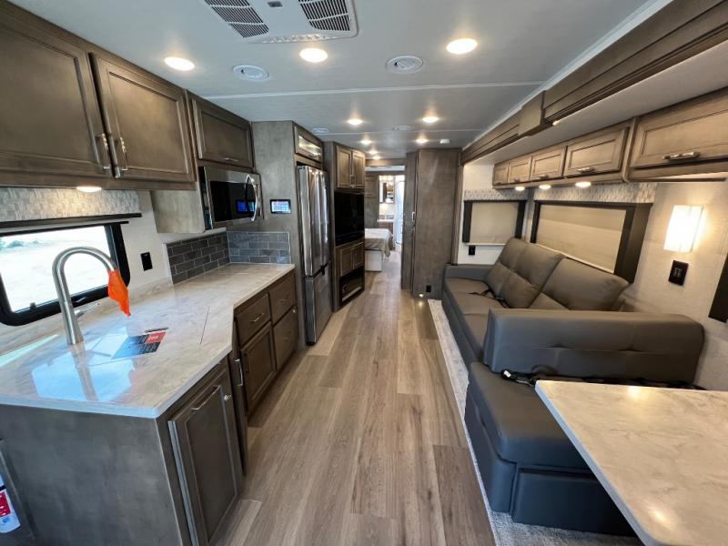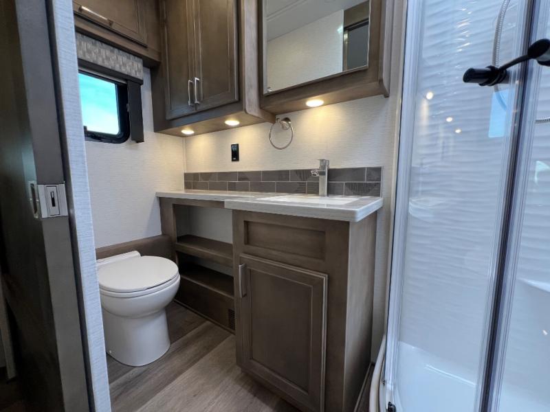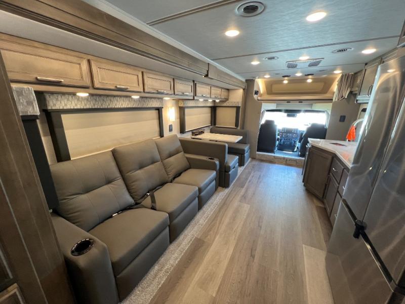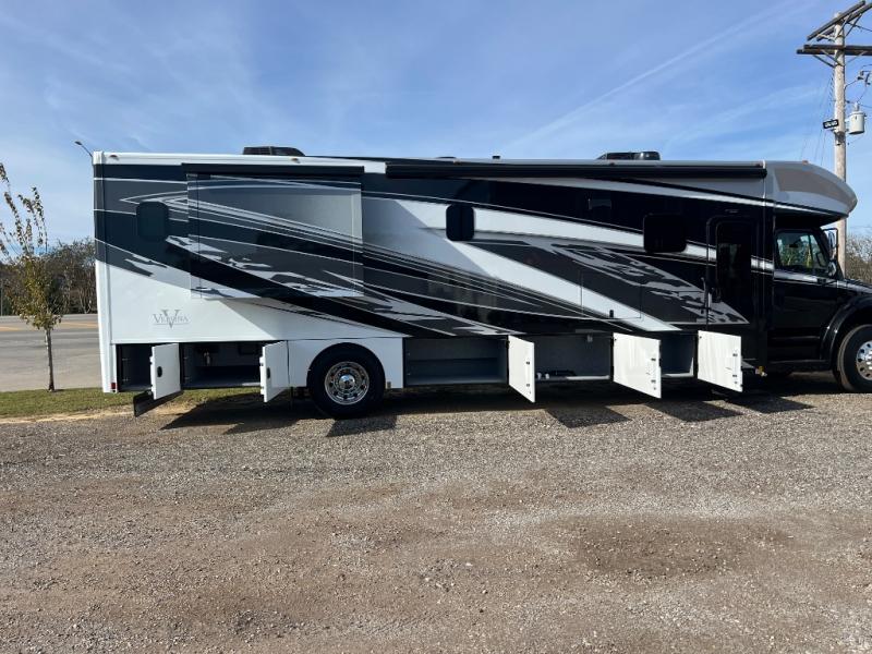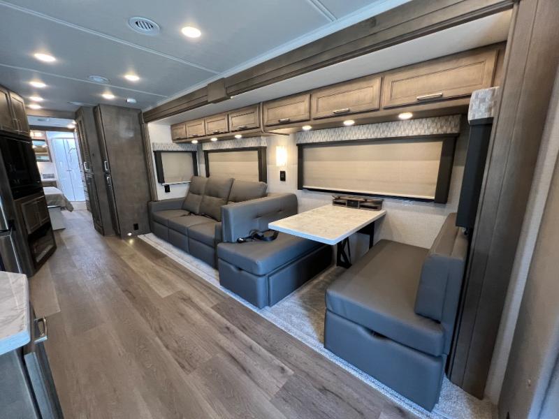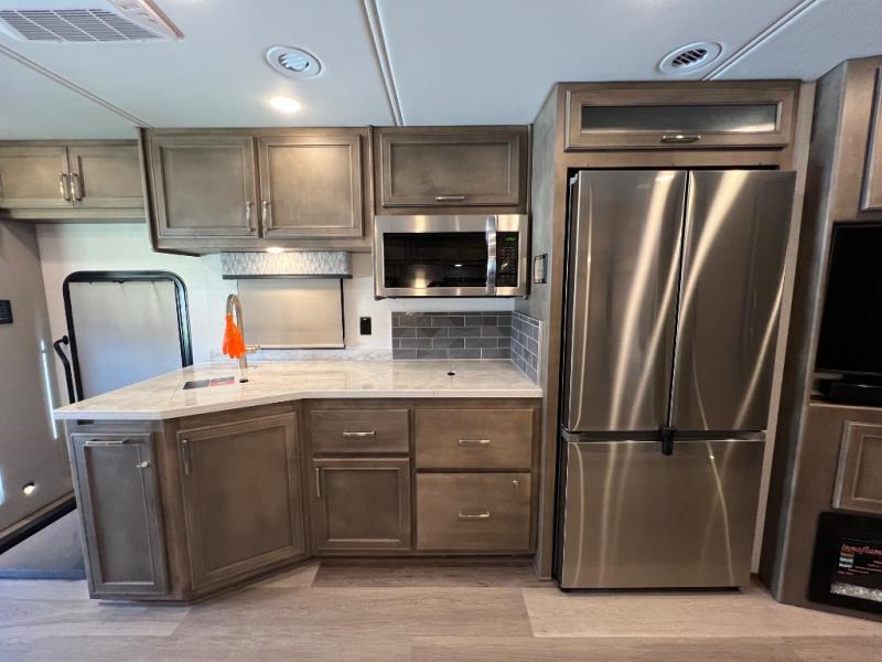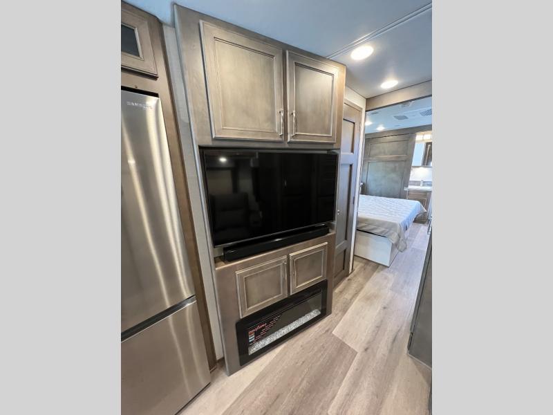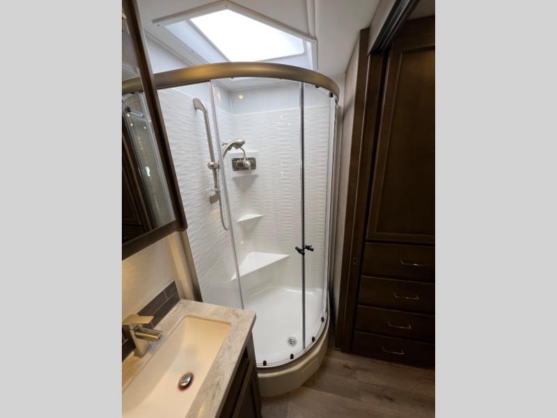 With any Renegade Verona Super C diesel motorhome, you will have confidence to explore the open road! The Cummins 360HP 3200TRV Allison transmission gives you the power and performance to travel anywhere, and the 3000-watt true sine wave inverter makes this an electric coach, plus the aluminum automotive cab construction is designed and tested for occupant protection. The interior boast about the solid hardwood cabinets including every cabinet stile and passage door are made from hardwood for true residential craftsmanship and the articulating cabinet hinges complete the package. More luxurious features include the solid surface countertops, the memory foam mattress, and the wavy patterned fiberglass shower with a glass door. Choose extreme luxury, purpose and durability; take a Verona on the road today!