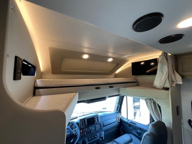 Why not enjoy the ride just as much as the destination, well you can with this Verona! The Airliner rear air suspension, power/heated remote control mirrors, and Freightliner "Safety Assurance package" will make that happen each trip. You will also have all the comforts of home such as the kitchen amenities including a convection microwave oven and a French door residential refrigerator, plus the Ultra-Soft sofa sleeper and booth dinette to relax on. The half bath is super convenient when you have two or more onboard, and the master suite offers a 66" x 74" king bed slide with lots of storage and a 32" 4K Smart LED TV, plus a rear full bathroom. There is so much more to love about this coach, step right up!