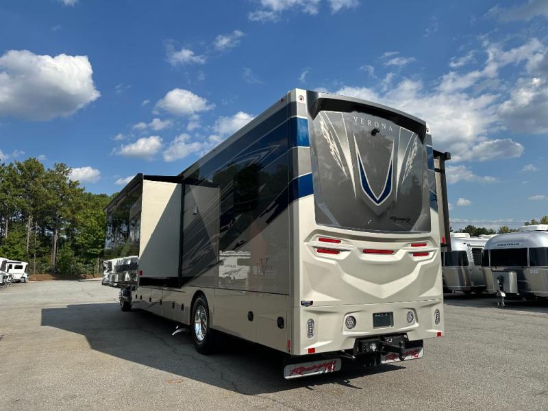 With any Renegade Verona Super C diesel motorhome, you will have confidence to explore the open road! The Cummins 360HP 3200TRV Allison transmission gives you the power and performance to travel anywhere, and the 3000-watt true sine wave inverter makes this an electric coach, plus the aluminum automotive cab construction is designed and tested for occupant protection. The interior boast about the solid hardwood cabinets including every cabinet stile and passage door are made from hardwood for true residential craftsmanship and the articulating cabinet hinges complete the package. More luxurious features include the solid surface countertops, the memory foam mattress, and the wavy patterned fiberglass shower with a glass door. Choose extreme luxury, purpose and durability; take a Verona on the road today!