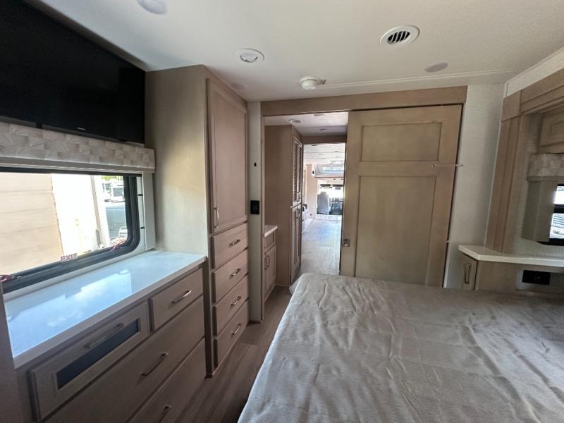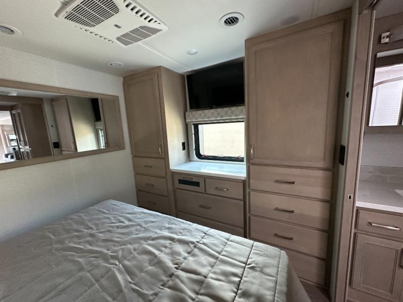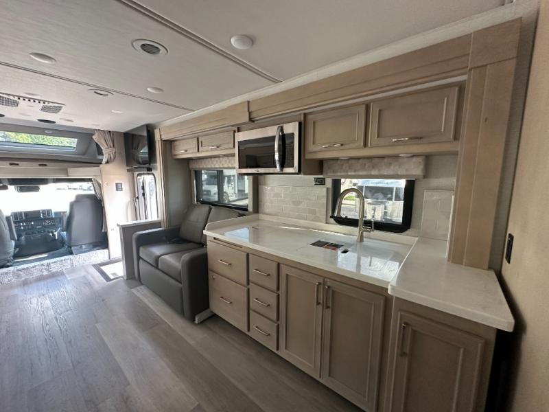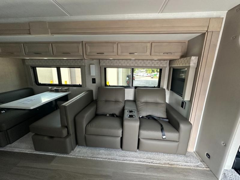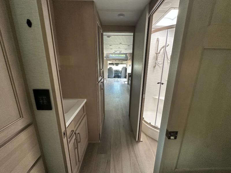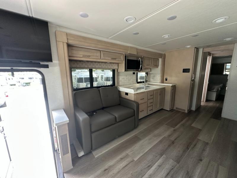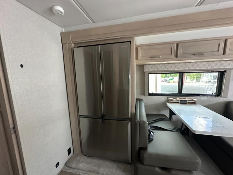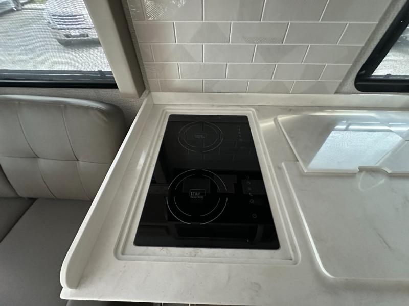 You will feel right at home in this motorhome! With a separated bathroom, one person can freshen up in the radius shower while another uses the sink or maybe put a load of laundry in the optional washer and dryer. There are plenty of places to sleep between the 66" x 74" mini-king bed in the rear private bedroom, the convertible booth dinette, and thesofa sleeper. You can prepare your best home cooked meals with the two burner induction cooktop in the fully equipped kitchen. Crank up the tunes with the Samsung soundbar with Bluetooth, wireless subwoofer, and JBL speakers. The Garmin infotainment with RV maps will ensure you stay on track!