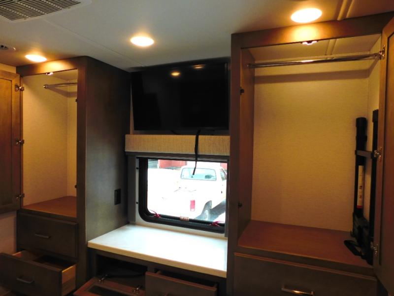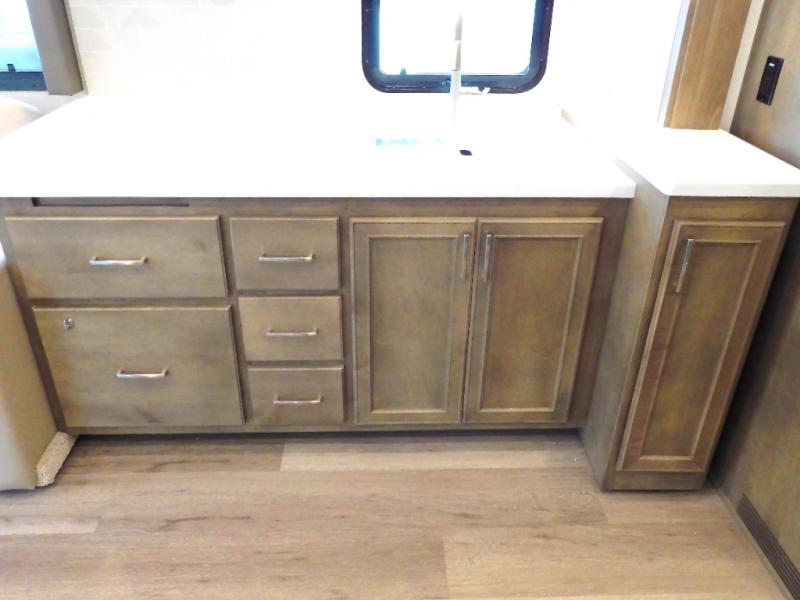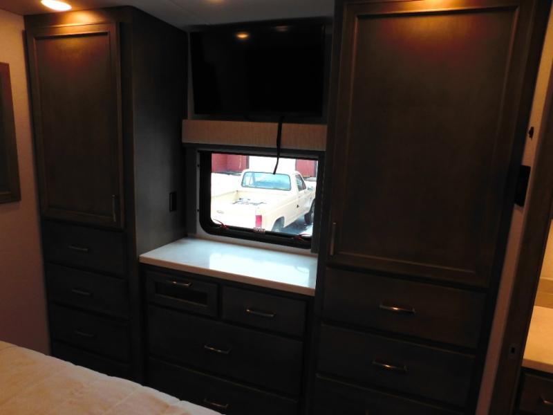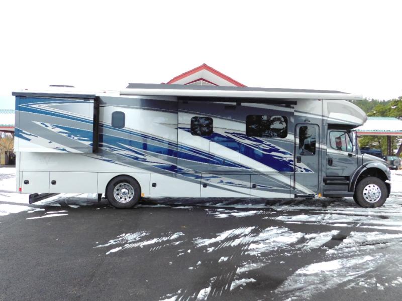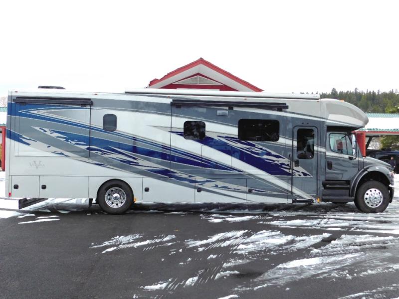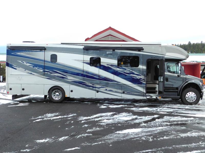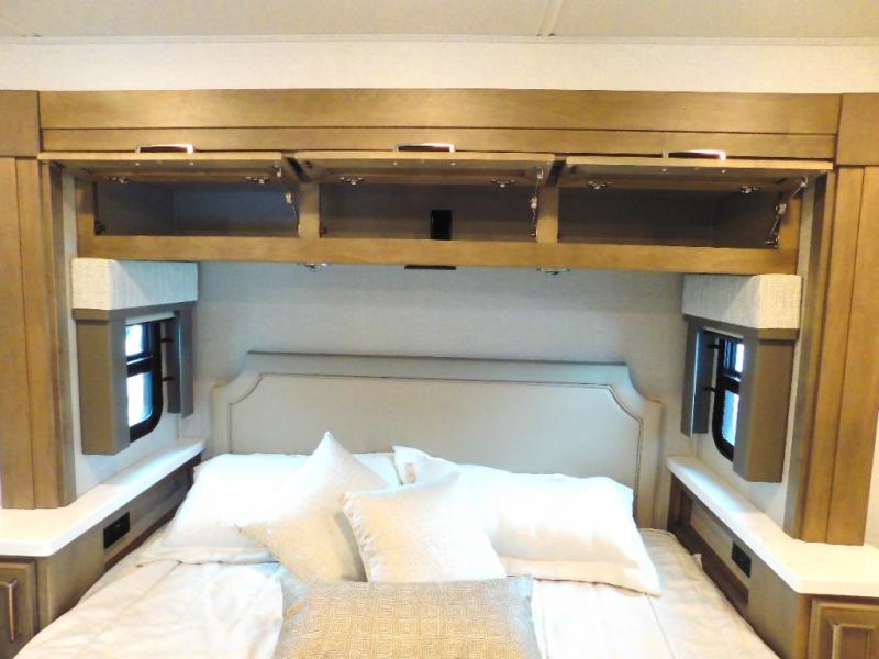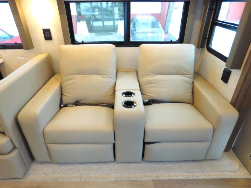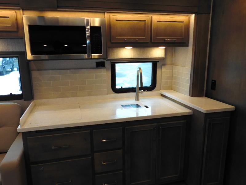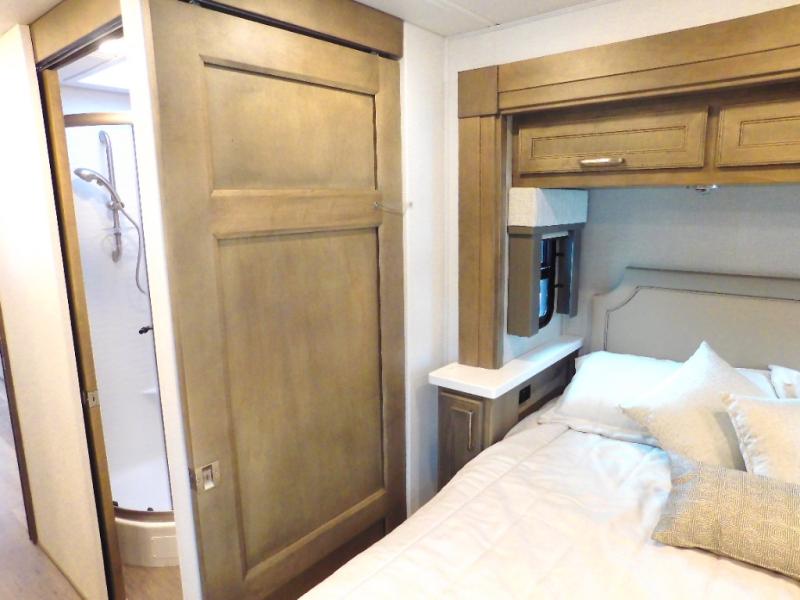 With any Renegade Verona Super C diesel motorhome, you will have confidence to explore the open road! The Cummins 360HP 3200TRV Allison transmission gives you the power and performance to travel anywhere, and the 3000-watt true sine wave inverter makes this an electric coach, plus the aluminum automotive cab construction is designed and tested for occupant protection. The interior boast about the solid hardwood cabinets including every cabinet stile and passage door are made from hardwood for true residential craftsmanship and the articulating cabinet hinges complete the package. More luxurious features include the solid surface countertops, the memory foam mattress, and the wavy patterned fiberglass shower with a glass door. Choose extreme luxury, purpose and durability; take a Verona on the road today!