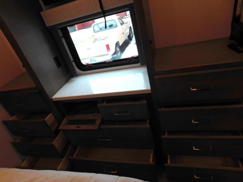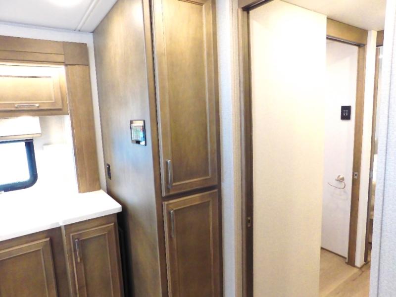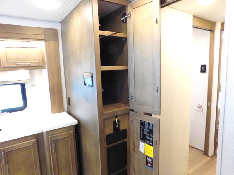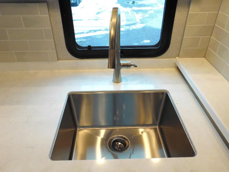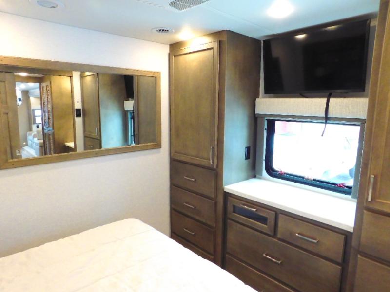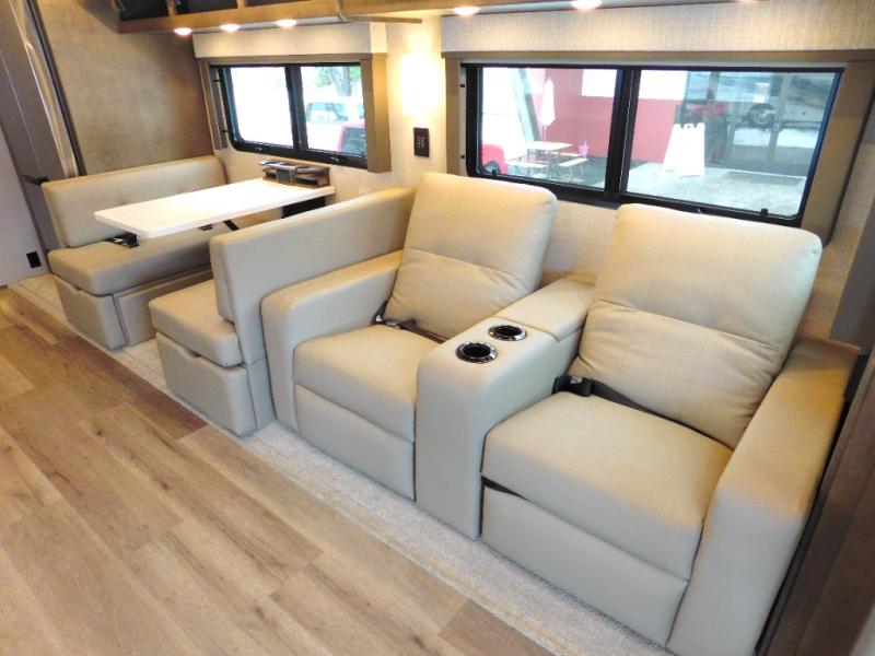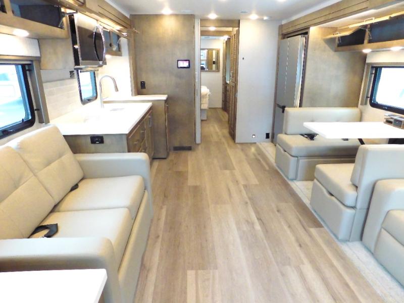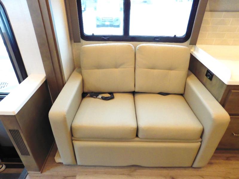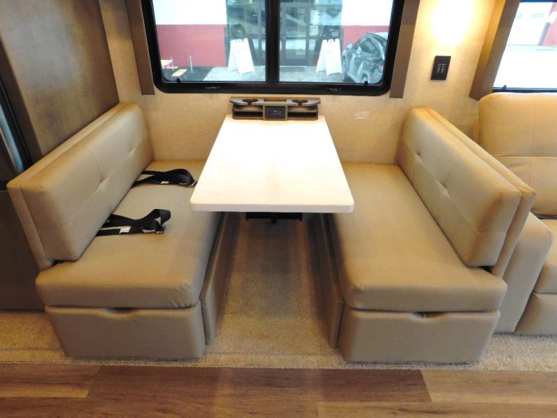 You will feel right at home in this motorhome! With a separated bathroom, one person can freshen up in the radius shower while another uses the sink or maybe put a load of laundry in the optional washer and dryer. There are plenty of places to sleep between the 66" x 74" mini-king bed in the rear private bedroom, the convertible booth dinette, and the sofa sleeper. You can prepare your best home cooked meals with the two burner induction cooktop in the fully equipped kitchen. Crank up the tunes with the Samsung soundbar with Bluetooth, wireless subwoofer, and JBL speakers. The Garmin infotainment with RV maps will ensure you stay on track!