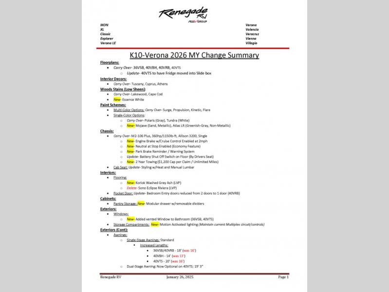 New 2026 Renegade Verona 40VTS Motor Home Super C - Diesel