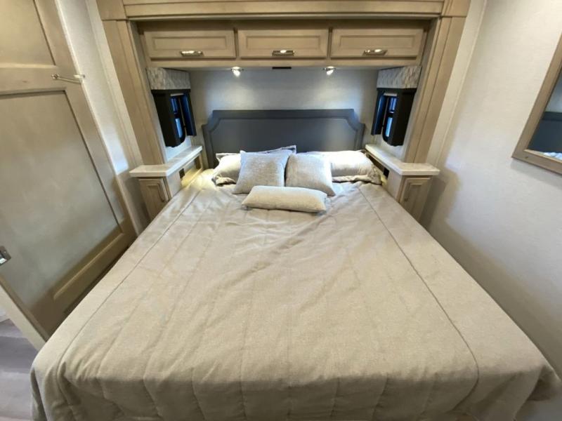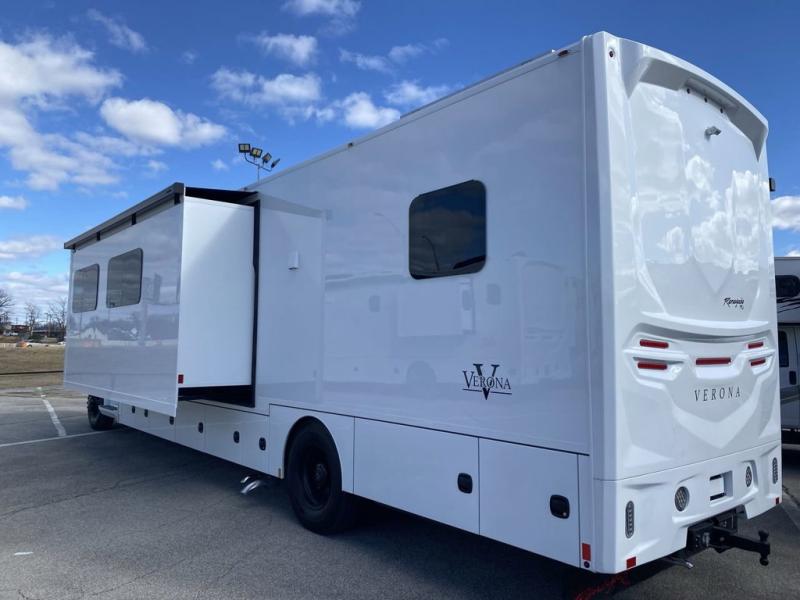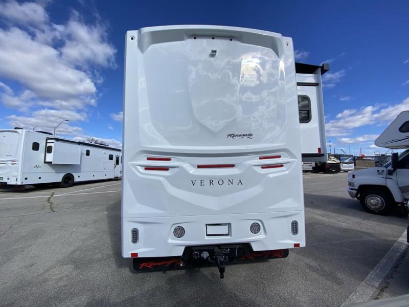 With any Renegade Verona Super C diesel motorhome, you will have confidence to explore the open road! The Cummins 360HP 3200TRV Allison transmission gives you the power and performance to travel anywhere, and the 3000-watt true sine wave inverter makes this an electric coach, plus the aluminum automotive cab construction is designed and tested for occupant protection. The interior boast about the solid hardwood cabinets including every cabinet stile and passage door are made from hardwood for true residential craftsmanship and the articulating cabinet hinges complete the package. More luxurious features include the solid surface countertops, the memory foam mattress, and the wavy patterned fiberglass shower with a glass door. Choose extreme luxury, purpose and durability; take a Verona on the road today!