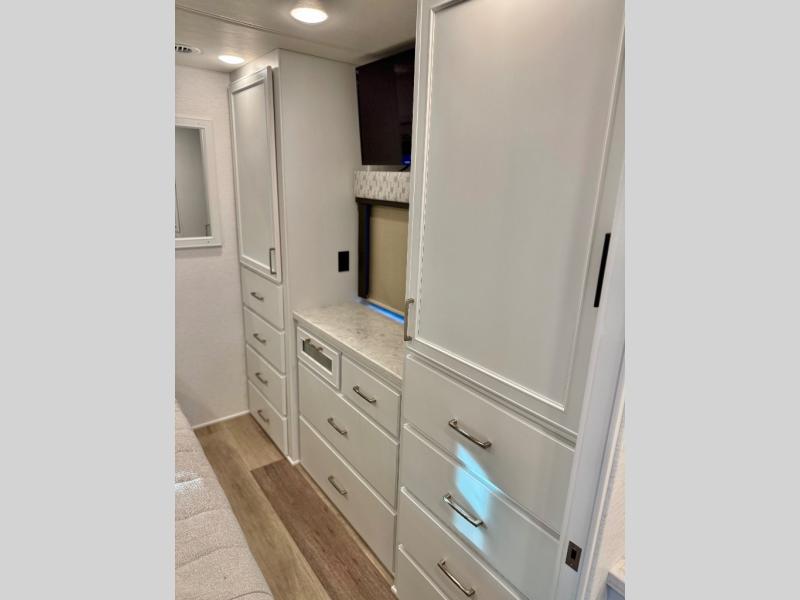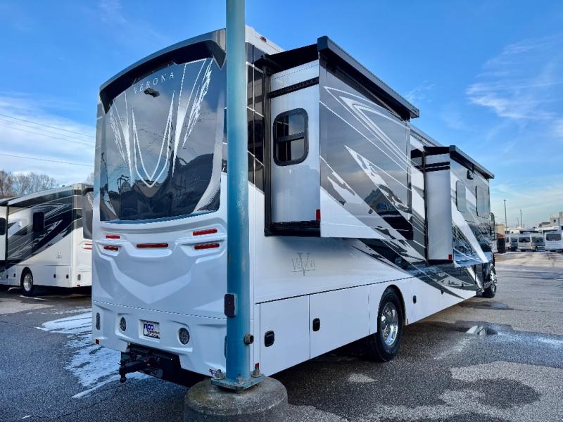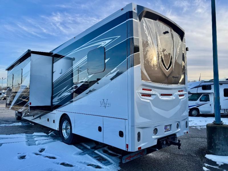With any Renegade Verona Super C diesel motorhome, you will have confidence to explore the open road! The Cummins 360HP 3200TRV Allison transmission gives you the power and performance to travel anywhere, and the 3000-watt true sine wave inverter makes this an electric coach, plus the aluminum automotive cab construction is designed and tested for occupant protection. The interior boast about the solid hardwood cabinets including every cabinet stile and passage door are made from hardwood for true residential craftsmanship and the articulating cabinet hinges complete the package. More luxurious features include the solid surface countertops, the memory foam mattress, and the wavy patterned fiberglass shower with a glass door. Choose extreme luxury, purpose and durability; take a Verona on the road today!