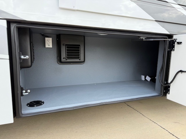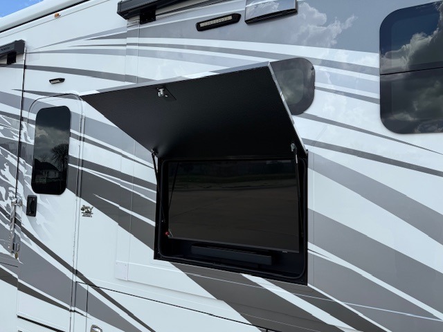You will love this coach’s rear bedroom featuring a king-sized bed, washer and dryer prep, dual closet for ample storage, a LED TV for entertainment, and a dresser base for storing personal items! Plus, the bunk beds provide a cozy sleeping spot for kids or guests. The kitchen is equipped with a refrigerator, a convection microwave for quick reheating, a two-burner cooktop, and a pantry for storing food and snacks. Overhead cabinets throughout the coach provide additional storage for cookware, dishes, or other belongings, while the hutch offers extra storage for fine china and glassware. Sharing meals will always be your favorite time of the day, thanks to the booth dinette, which provides a comfortable spot for meals and snacks, while the sofa sleeper offers a convenient seating area that can be converted into a sleeping space. Finally, you can enjoy the football game in the outside entertainment area, which will offer you a double relaxing experience since you will be in contact with nature while enjoying your favorite shows.