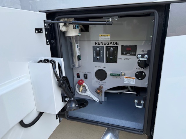 With any Verona LE Super C diesel motorhome by Renegade, you will be wowed by all the luxury features. The 2" vacuum laminated sidewalls feature welded aluminum framing for added support, and the 1.5" high density foam insulation in the sidewalls and roof means you can travel all year long in any season. The captain will love how easy it will be to drive with the Allison 3200TRV electronic 6-speed transmission, plus there are rear and side view cameras for easy parking and an upgraded cab sound system to keep the tunes going. Each model includes dual 15,000 BTU roof A/C pumps, an Aqua-Hot 450D hydronic water and zone heating system, plus MaxxAir power vents to keep you comfortable all year long. All of your power needs will be met with an 8kW Onan Quiet diesel generator, 3,000w True Sine wave inverter, (2) 330Ah AGM house batteries, and (3) 200W solar panels. Inside, there are three modern decor options to choose from, along with solid surface countertops, grouted tile backsplash, Maple hardwood cabinetry, and many more comforts of home!