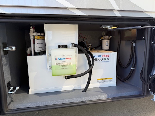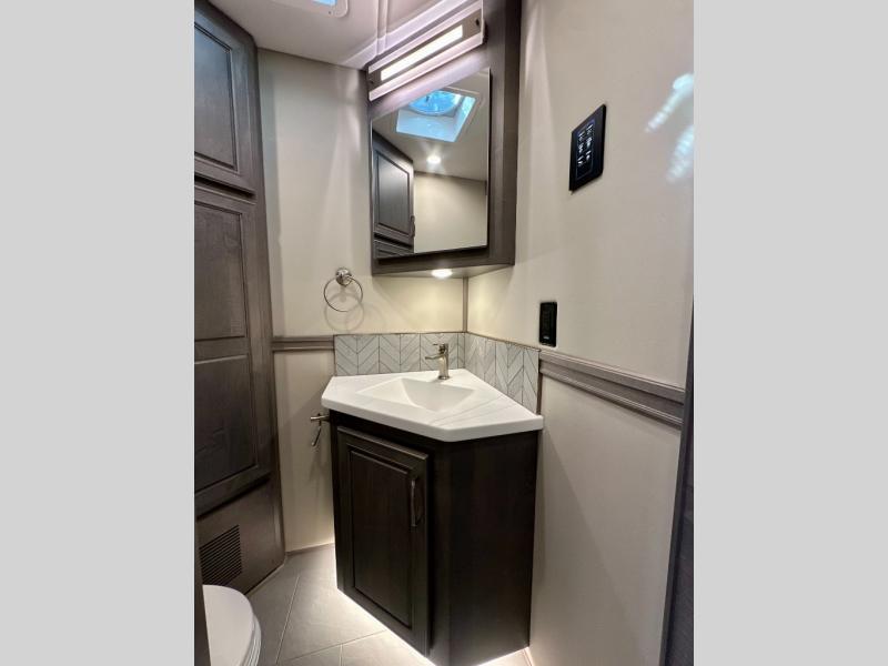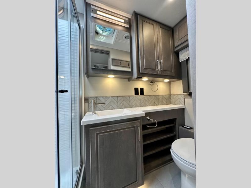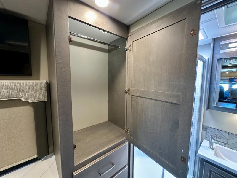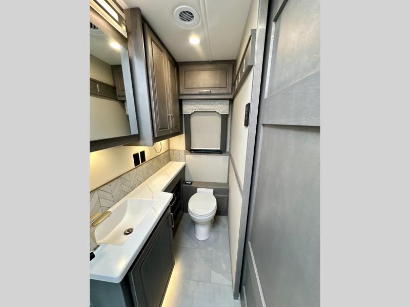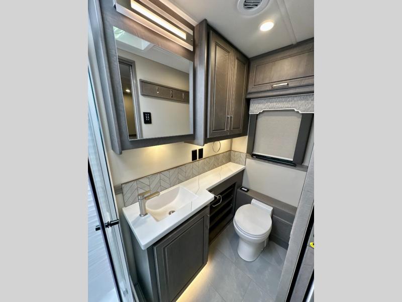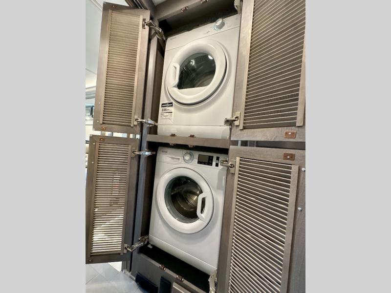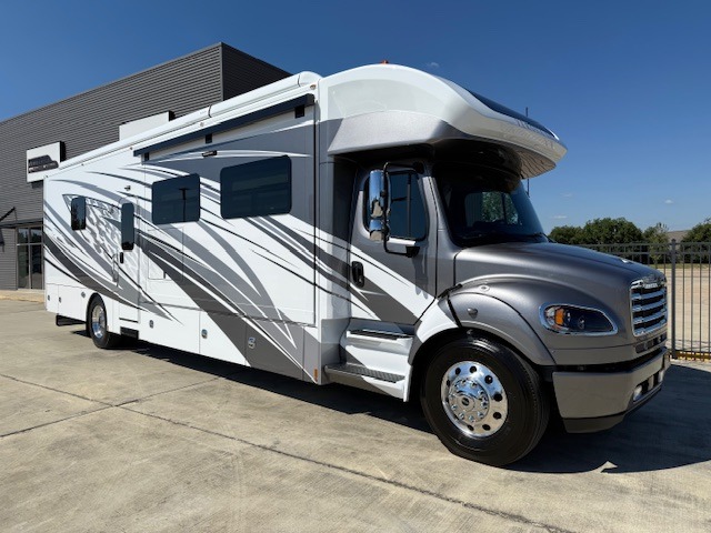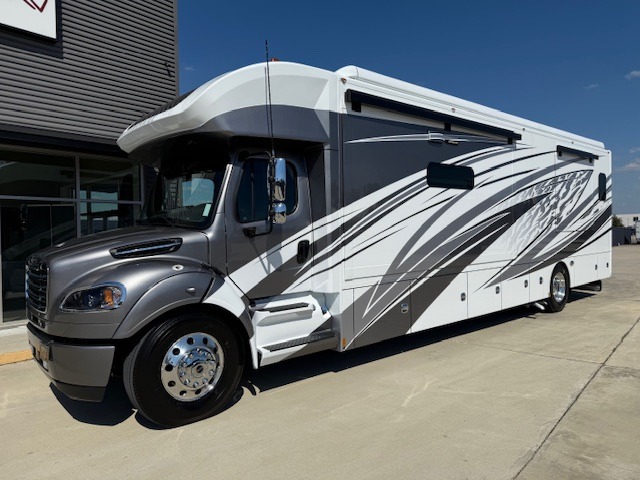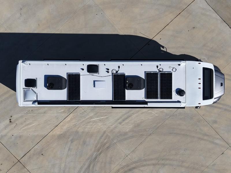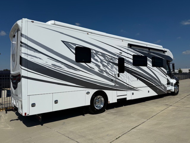 \With any Verona LE Super C diesel motorhome by Renegade, you will be wowed by all the luxury features. The 2" vacuum laminated sidewalls feature welded aluminum framing for added support, and the 1.5" high density foam insulation in the sidewalls and roof means you can travel all year long in any season. The captain will love how easy it will be to drive with the Allison 3200TRV electronic 6-speed transmission, plus there are rear and side view cameras for easy parking and an upgraded cab sound system to keep the tunes going. Each model includes dual 15,000 BTU roof A/C pumps, an Aqua-Hot 450D hydronic water and zone heating system, plus MaxxAir power vents to keep you comfortable all year long. All of your power needs will be met with an 8kW Onan Quiet diesel generator, 3,000w True Sine wave inverter, (2) 330Ah AGM house batteries, and (3) 200W solar panels. Inside, there are three modern decor options to choose from, along with solid surface countertops, grouted tile backsplash, Maple hardwood cabinetry, and many more comforts of home!