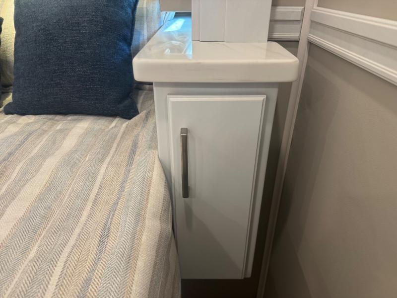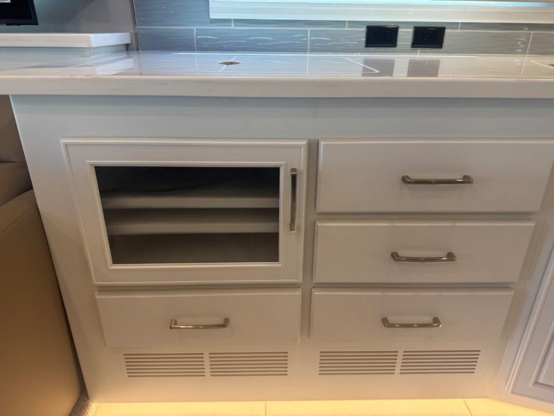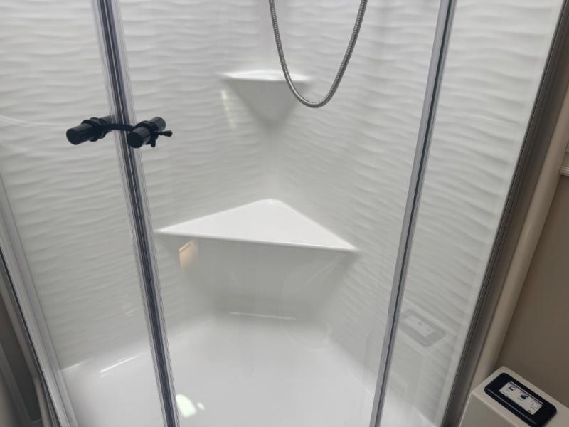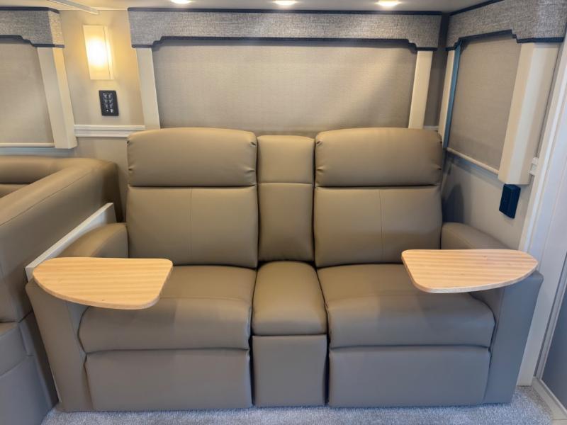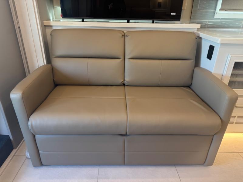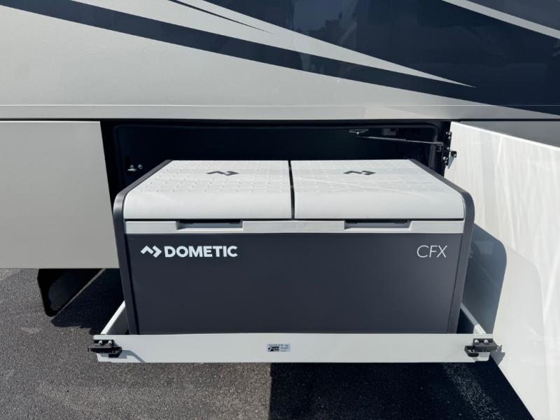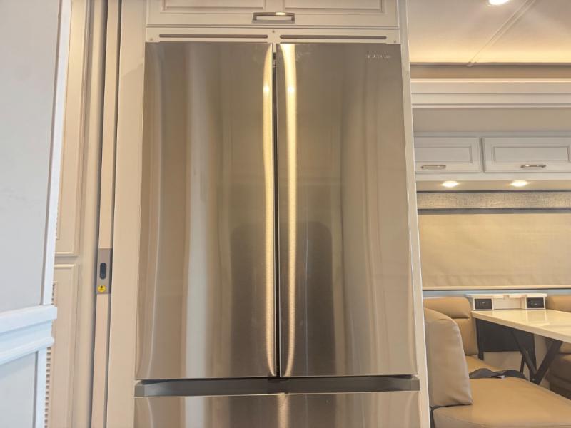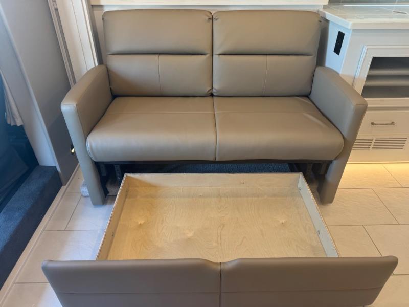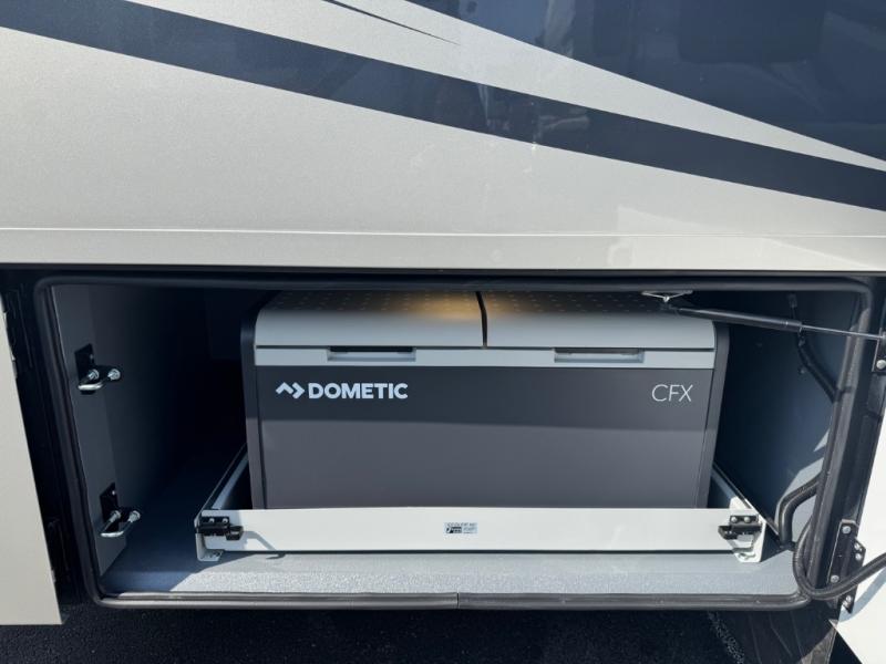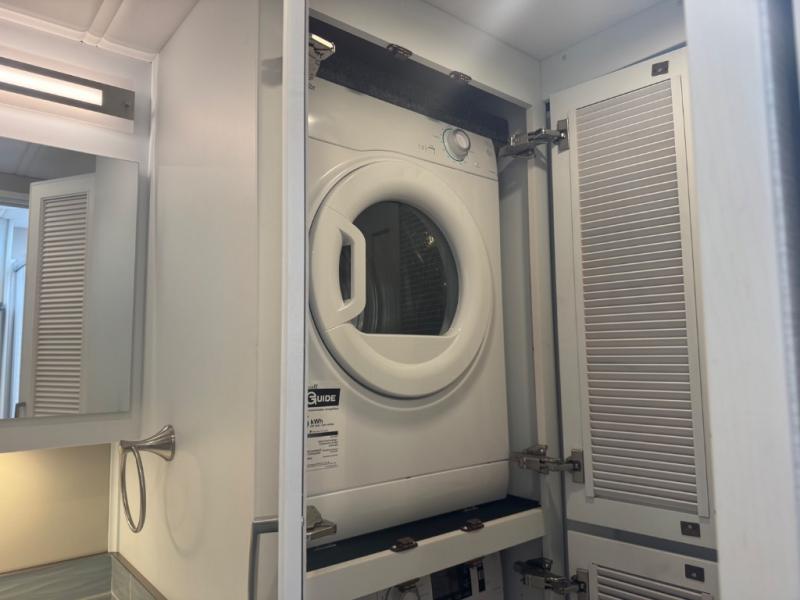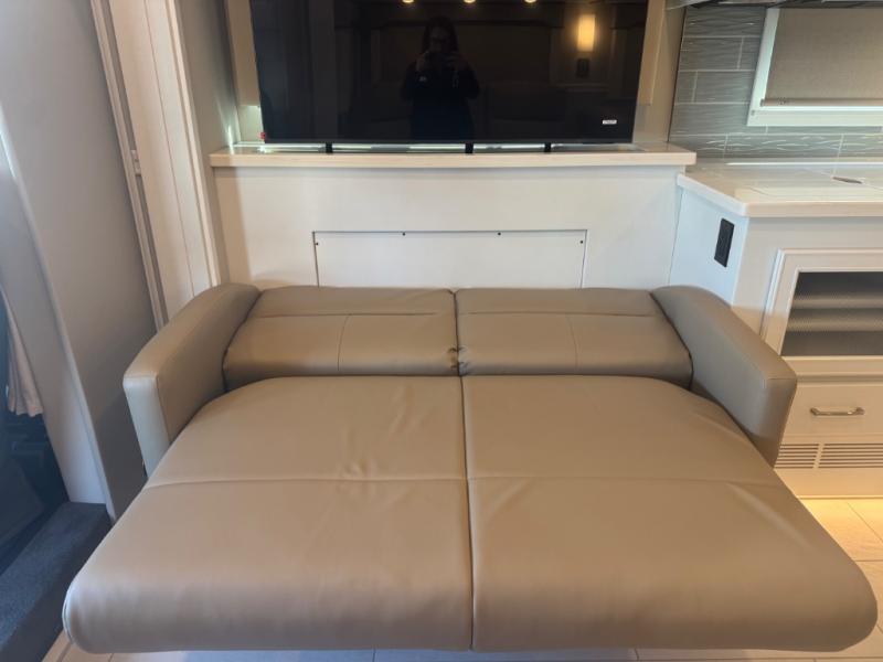This family-friendly coach offers sleeping space for six when you convert the hide-a-bed sofa, the second sofa and the booth dinette. The triple slides open up the living area and bedroom giving everyone lots of floor space to move about during the day and at night. The rear bedroom offers a memory foam mattress, a wardrobe and a 32" Smart LED TV. You will surely appreciate the split-style bathroom when trying to quickly get ready to shop in town or prepare for bed. You can make meals for everyone using the recessed two burner induction cooktop and convection microwave, and will also appreciate 18 cu. ft. French door residential refrigerator with stainless steel doors.