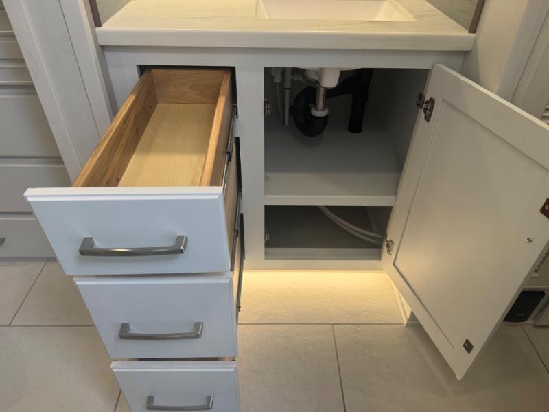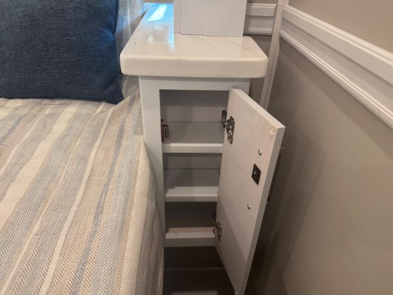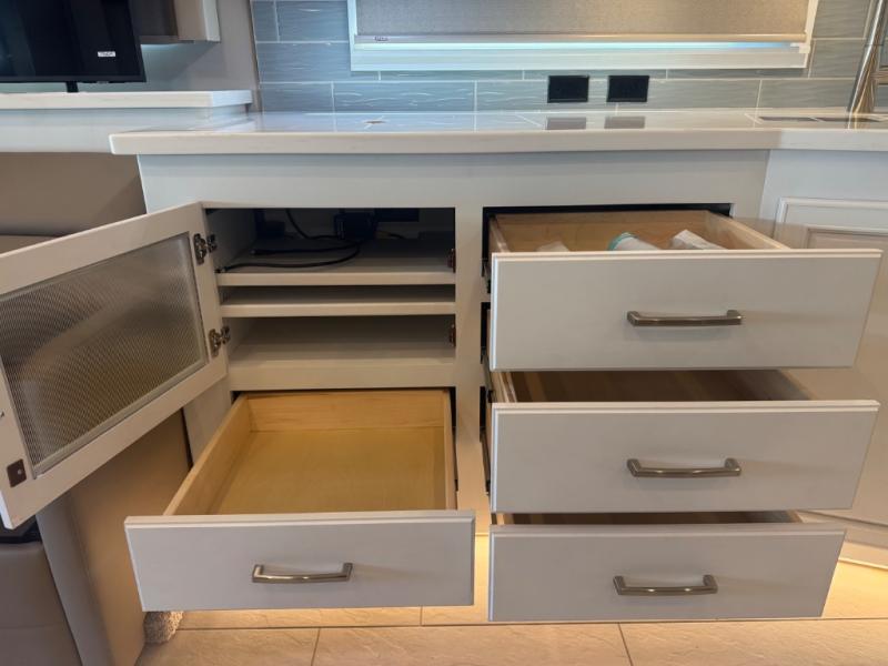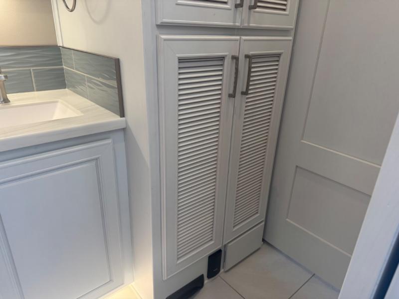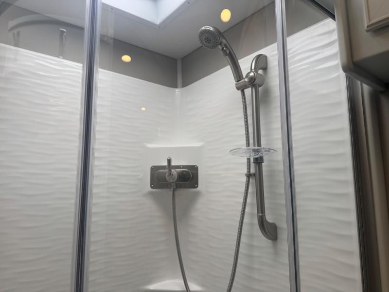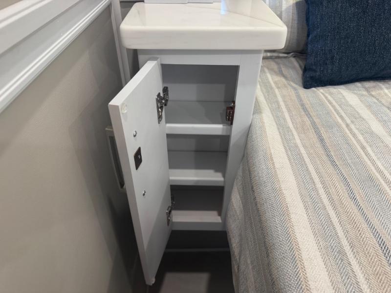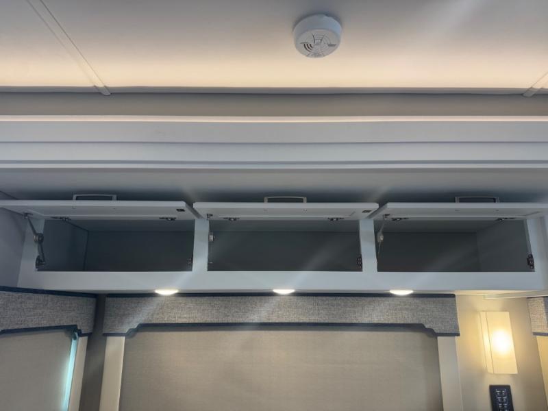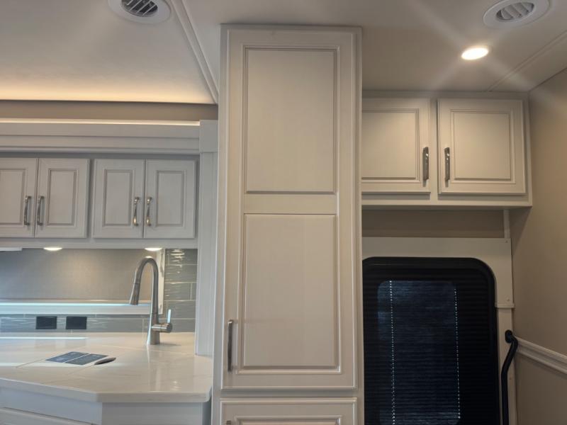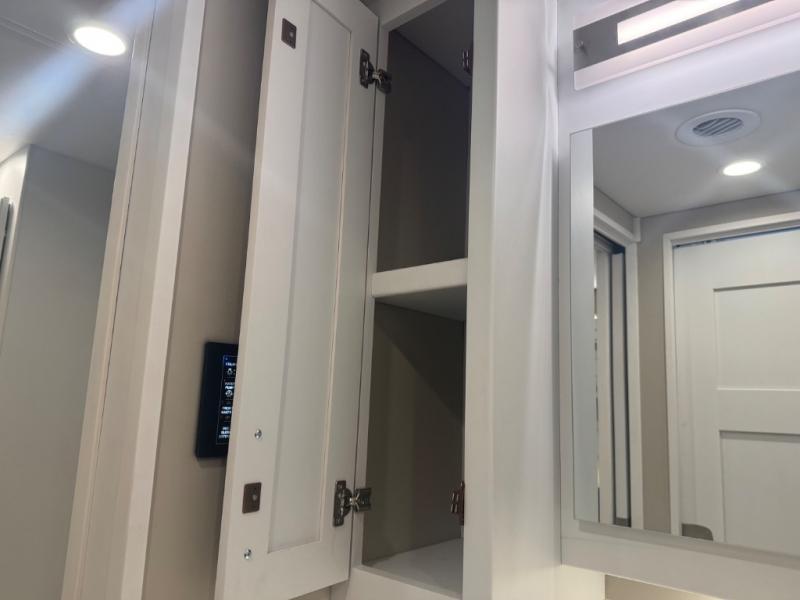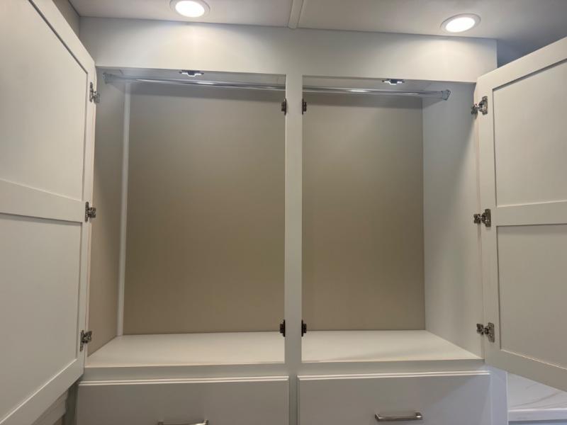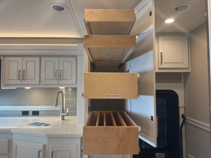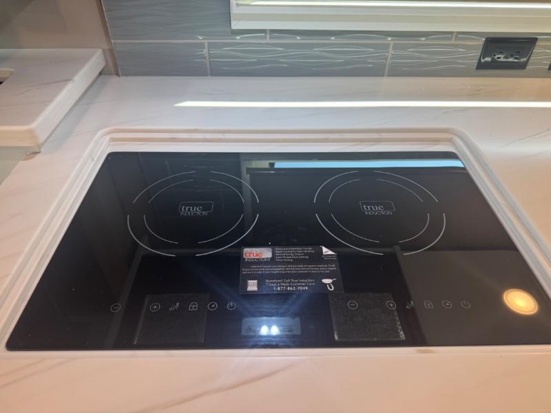 This family-friendly coach offers sleeping space for six when you convert the hide-a-bed sofa, the second sofa and the booth dinette. The triple slides open up the living area and bedroom giving everyone lots of floor space to move about during the day and at night. The rear bedroom offers a memory foam mattress, a wardrobe and a 32" Smart LED TV. You will surely appreciate the split-style bathroom when trying to quickly get ready to shop in town or prepare for bed. You can make meals for everyone using the recessed two burner induction cooktop and convection microwave, and will also appreciate 18 cu. ft. French door residential refrigerator with stainless steel doors.