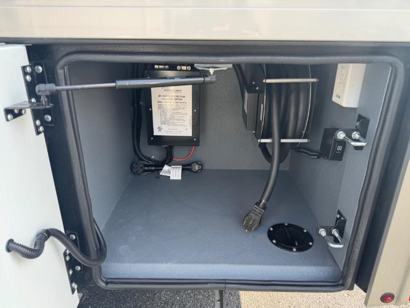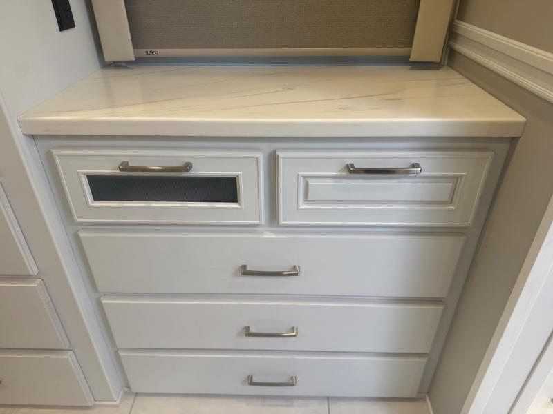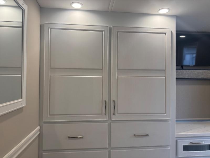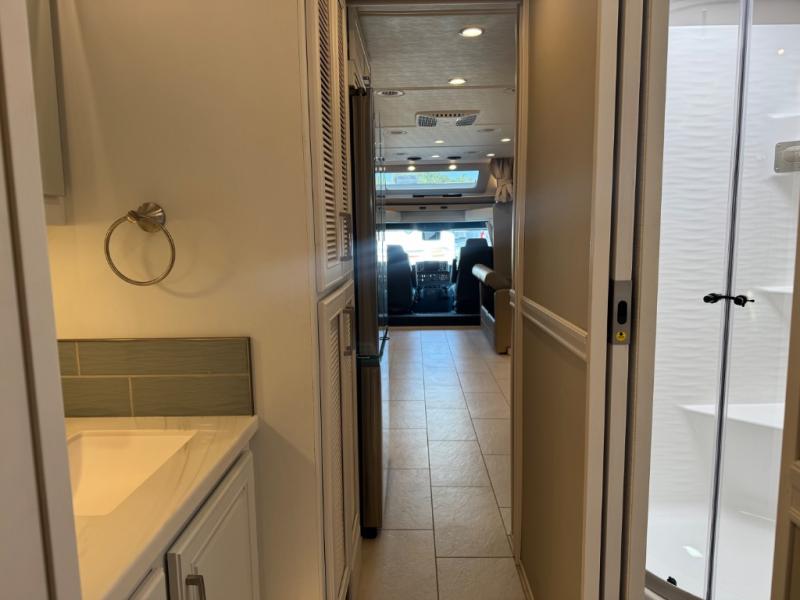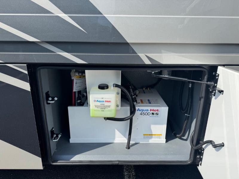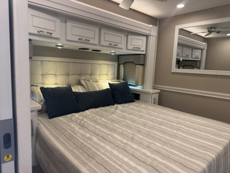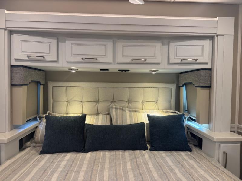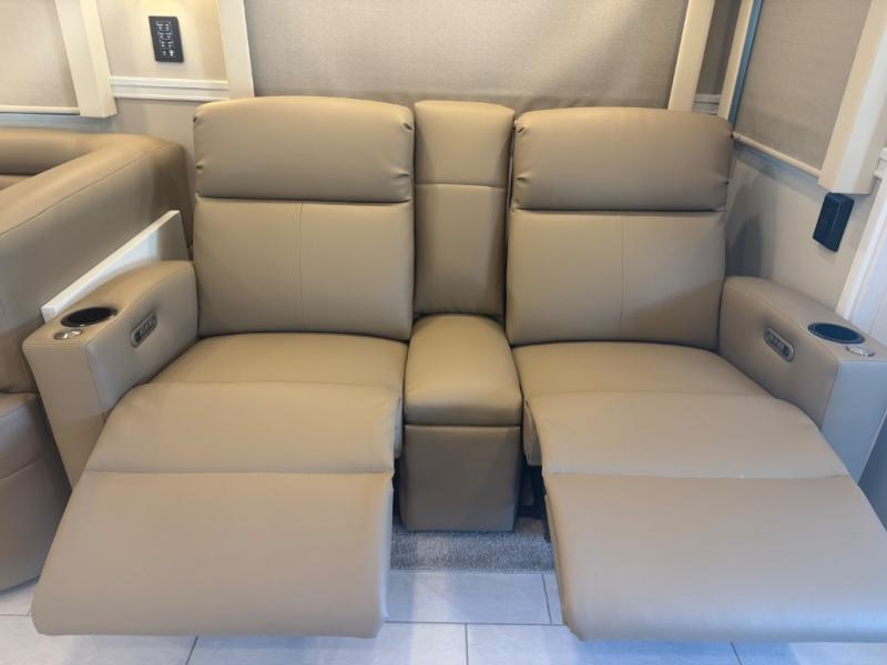 With any Verona LE Super C diesel motorhome by Renegade, you will be wowed by all the luxury features. The 2" vacuum laminated sidewalls feature welded aluminum framing for added support, and the 1.5" high density foam insulation in the sidewalls and roof means you can travel all year long in any season. The captain will love how easy it will be to drive with the Allison 3200TRV electronic 6-speed transmission, plus there are rear and side view cameras for easy parking and an upgraded cab sound system to keep the tunes going. Each model includes dual 15,000 BTU roof A/C pumps, an Aqua-Hot 450D hydronic water and zone heating system, plus MaxxAir power vents to keep you comfortable all year long. All of your power needs will be met with an 8kW Onan Quiet diesel generator, 3,000w True Sine wave inverter, (2) 330Ah AGM house batteries, and (3) 200W solar panels. Inside, there are three modern decor options to choose from, along with solid surface countertops, grouted tile backsplash, Maple hardwood cabinetry, and many more comforts of home!