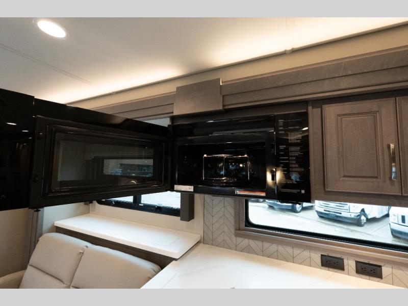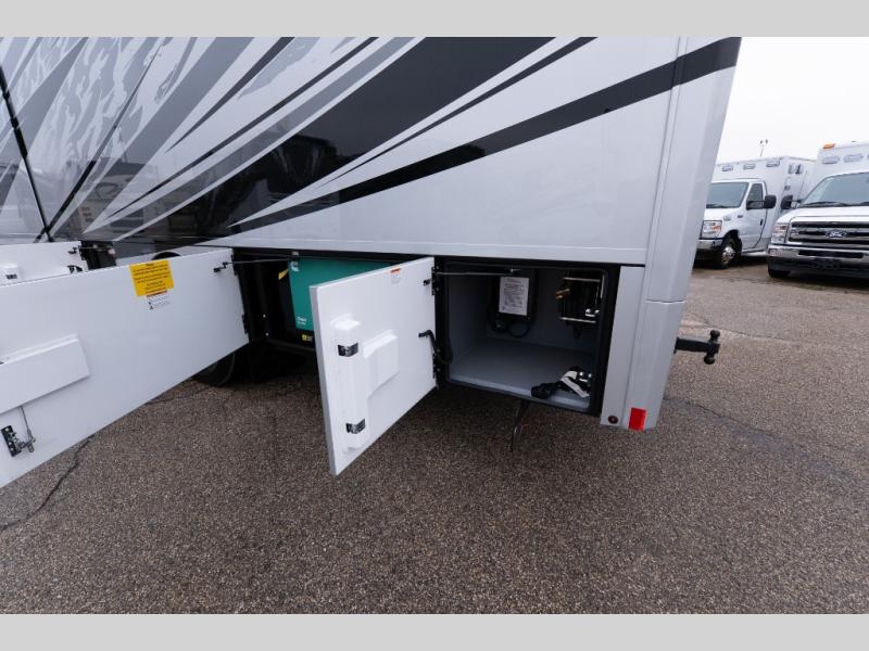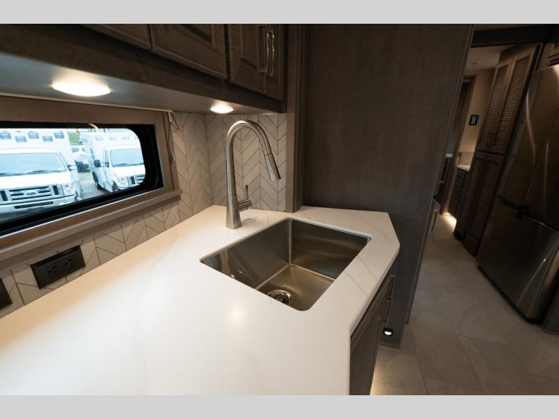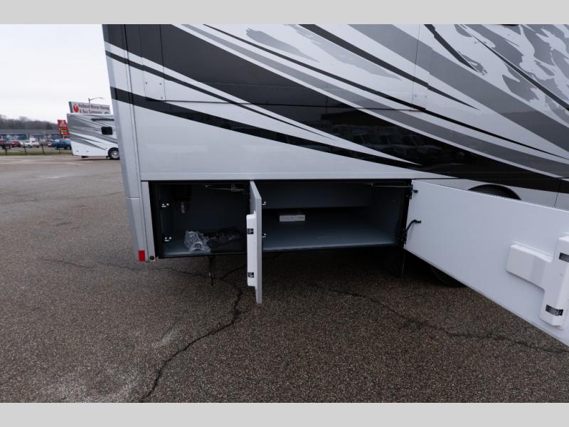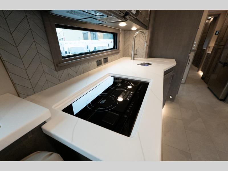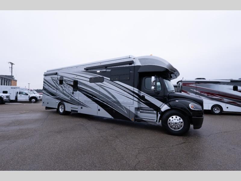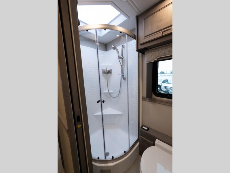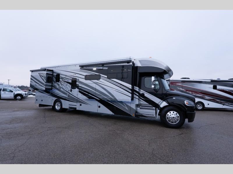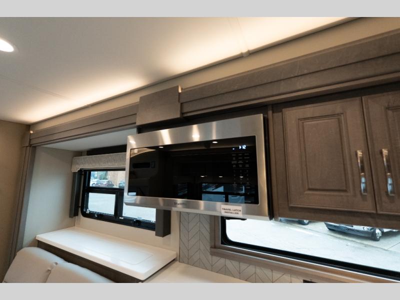 With any Verona LE Super C diesel motorhome by Renegade, you will be wowed by all the luxury features. The 2" vacuum laminated sidewalls feature welded aluminum framing for added support, and the 1.5" high density foam insulation in the sidewalls and roof means you can travel all year long in any season. The captain will love how easy it will be to drive with the Allison 3200TRV electronic 6-speed transmission, plus there are rear and side view cameras for easy parking and an upgraded cab sound system to keep the tunes going. Each model includes dual 15,000 BTU roof A/C pumps, an Aqua-Hot 450D hydronic water and zone heating system, plus MaxxAir power vents to keep you comfortable all year long. All of your power needs will be met with an 8kW Onan Quiet diesel generator, 3,000w True Sine wave inverter, (2) 330Ah AGM house batteries, and (3) 200W solar panels. Inside, there are three modern decor options to choose from, along with solid surface countertops, grouted tile backsplash, Maple hardwood cabinetry, and many more comforts of home!
