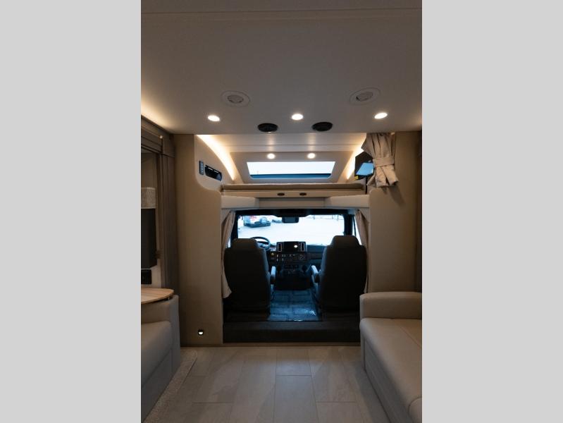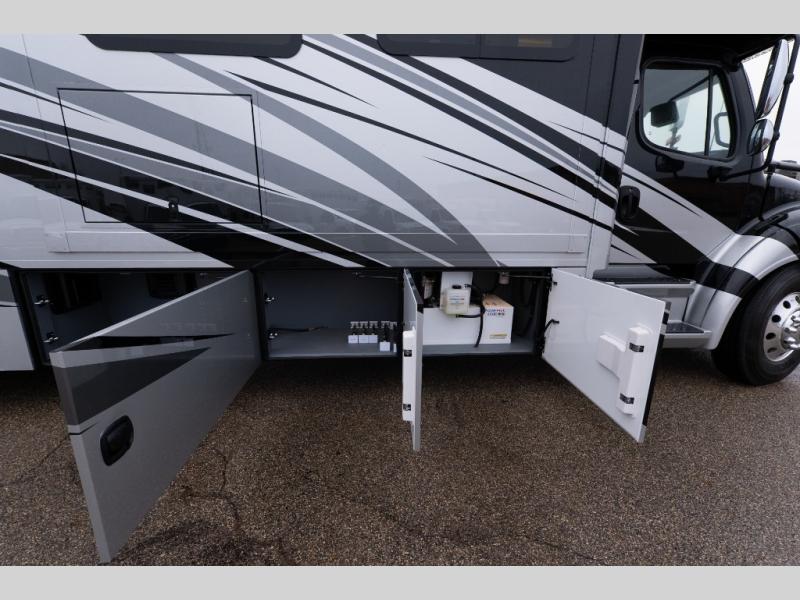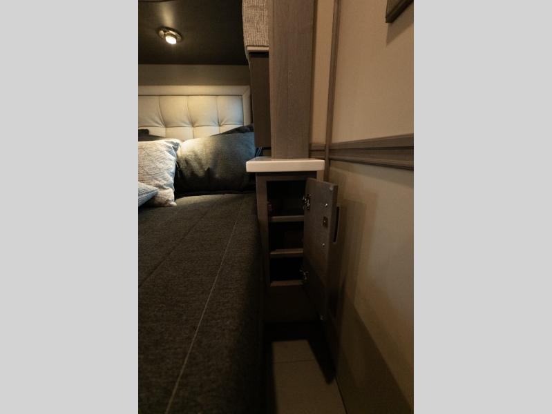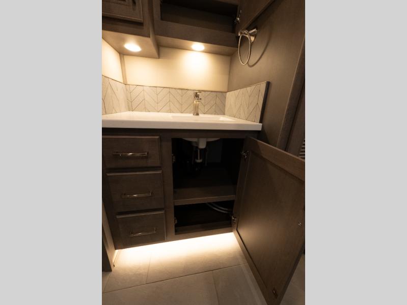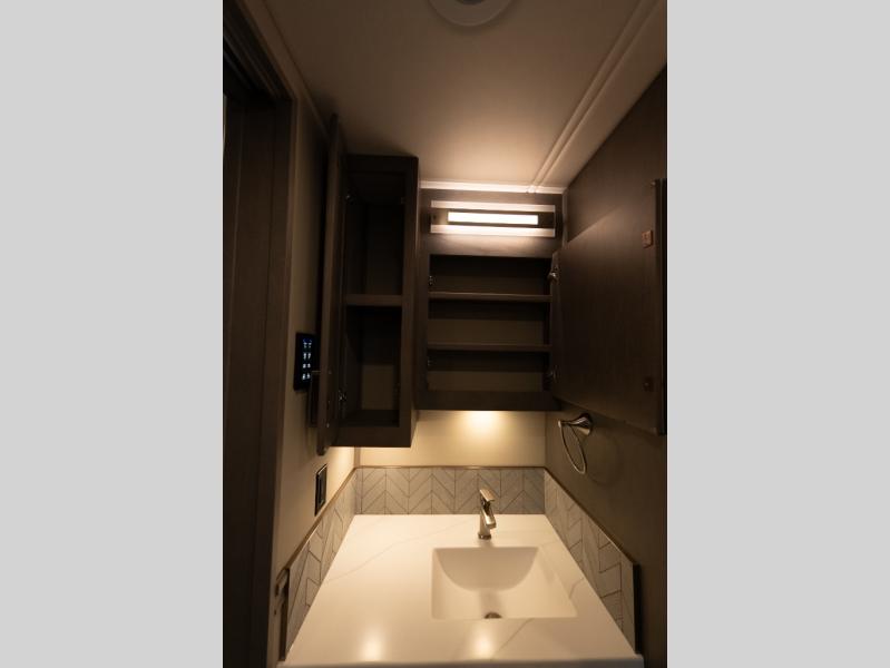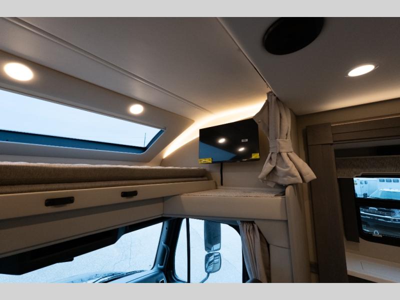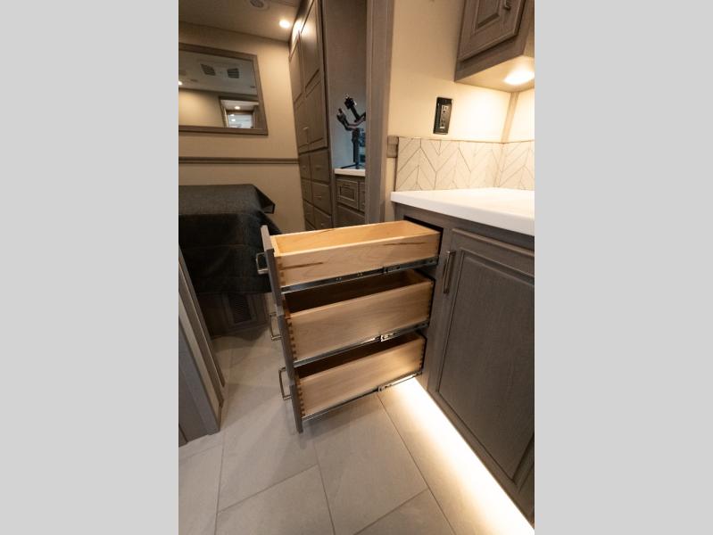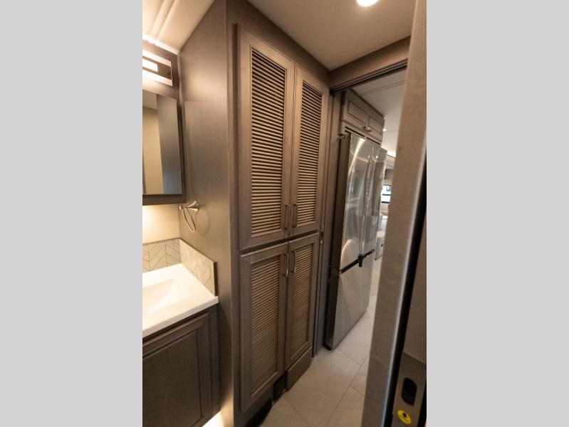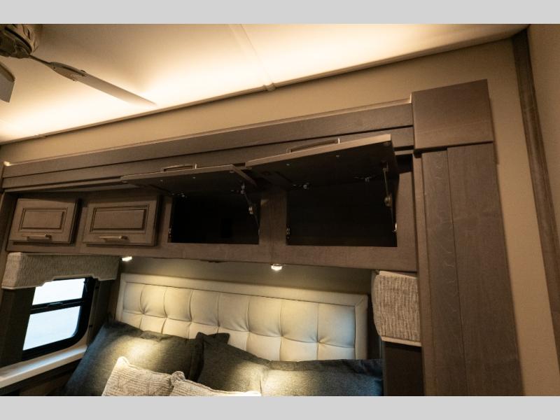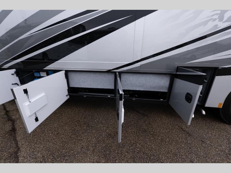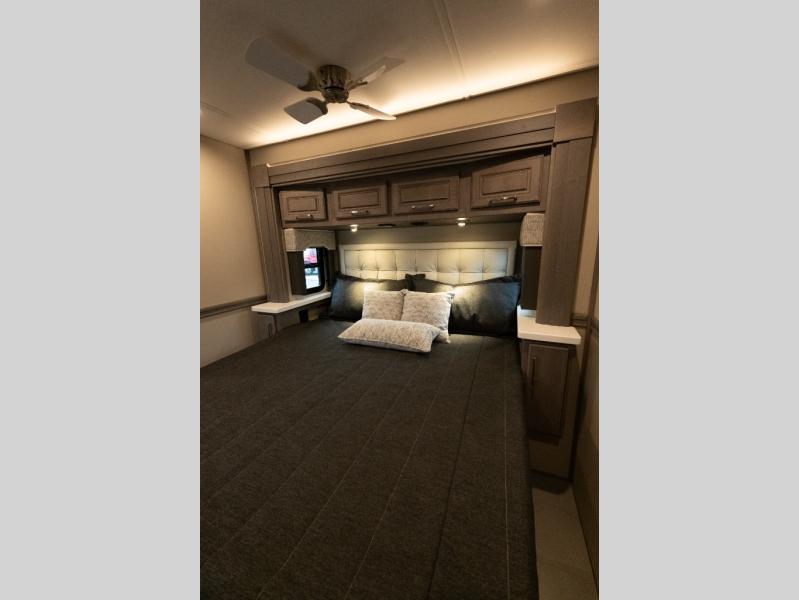 Verona Cabover Bunk, underbody LED lighting, LED lights under slide-outs, 3 exterior scene lights, spray in cargo bay lining, heated floor, carpet runner, washer & dryer stacked, additional lithium battery and second 3000w inverter, additional solar panel, and pre-wired for satellite.