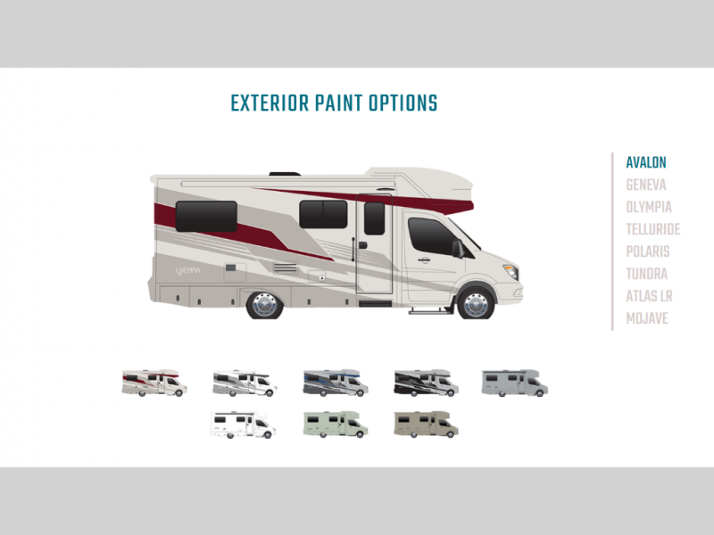 Perfectly sized for effortless travel but fully loaded with residential touches, the Vienna 25FWC is your all-season escape pod on wheels. With seating, sleeping, storage, and tech where you need it most, this coach makes travel feel easy—and life on the road feel like home.