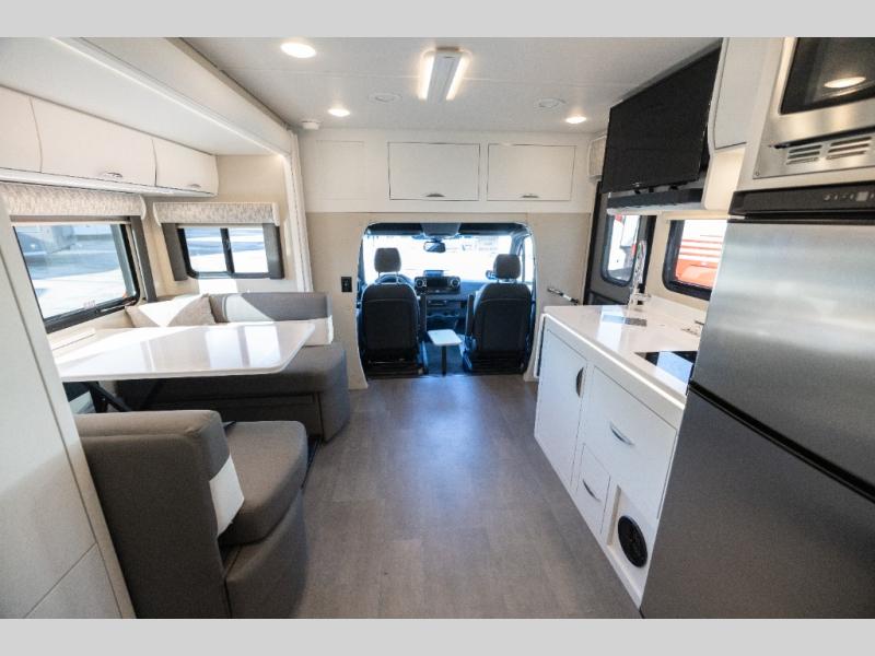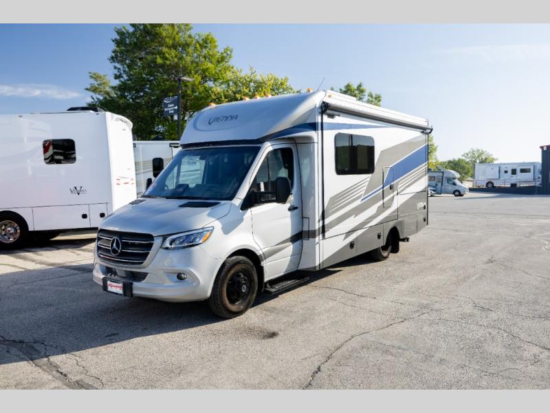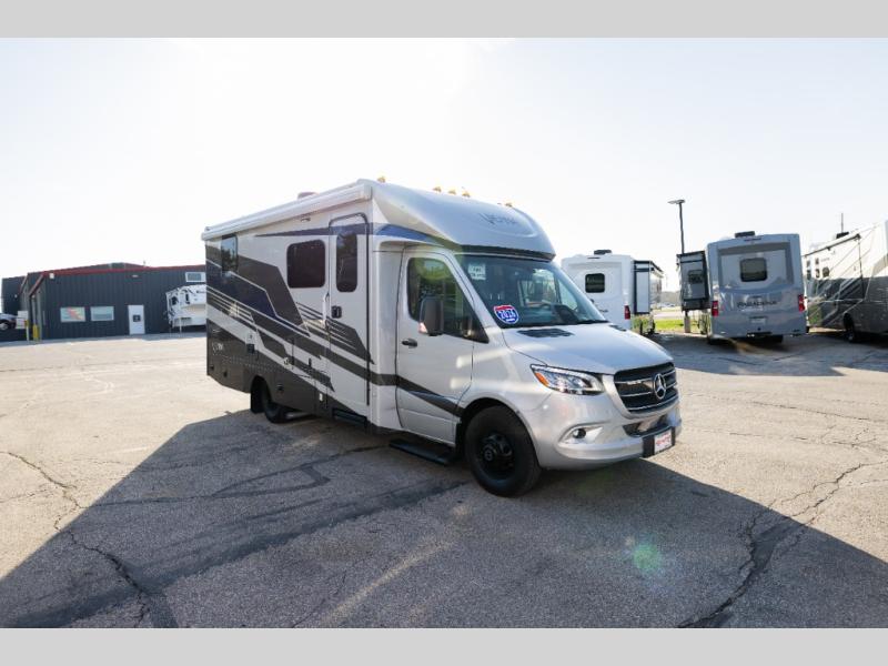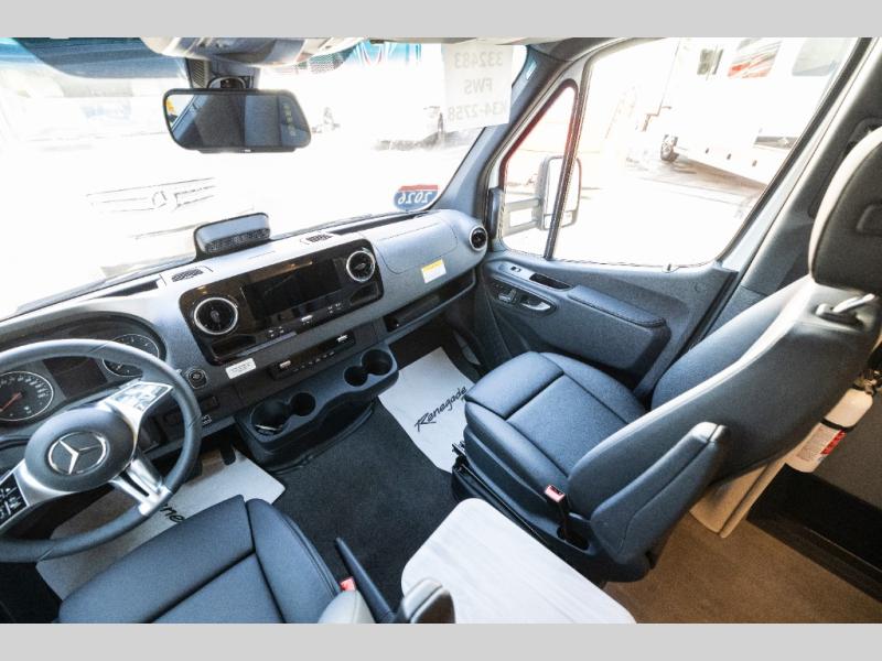 Luxury is in the details of each one of these Renegade Vienna Class C diesel motorhomes! They are built on a Mercedes-Benz Sprinter chassis, and include a four point hydraulic leveling system with app control, a 2000w true sine wave hybrid inverter, a 3.6KW LP generator with auto gen start, and a Winegard Connect rooftop OTA antenna with Wi-Fi and 5G ready. You will appreciate the Truma™ Comfort Plus tankless water heater when showering, the accent lighting at the galley countertop for style, and the USB charging in the living area, bedroom and kitchen to keep your electronics ready. The Maple hardwood cabinetry completes the luxurious décor throughout the inside. Make your selection today!