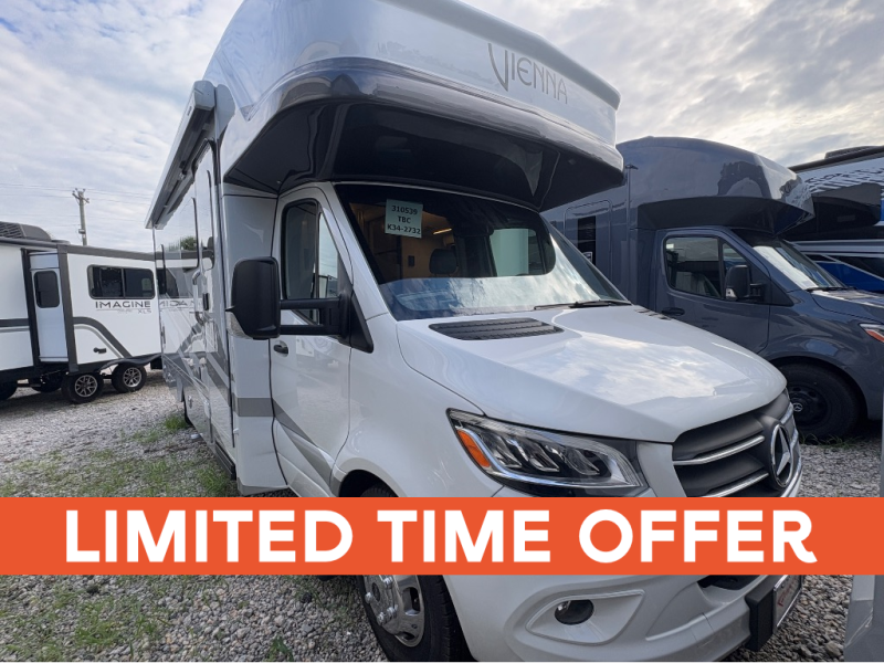 Luxury is in the details of each one of these Renegade Vienna Class C diesel motorhomes! They are built on a Mercedes-Benz Sprinter chassis, and include a four point hydraulic leveling system with app control, a 2000w true sine wave hybrid inverter, a 3.6KW LP generator with auto gen start, and Winegard Connect 2.0. You will appreciate the Truma™ Comfort Plus tankless water heater when showering, the accent lighting at the galley countertop for style, and the USB charging in the living area, bedroom and kitchen to keep your electronics ready. The Maple hardwood cabinetry completes the luxurious décor throughout the inside. Make your selection today!