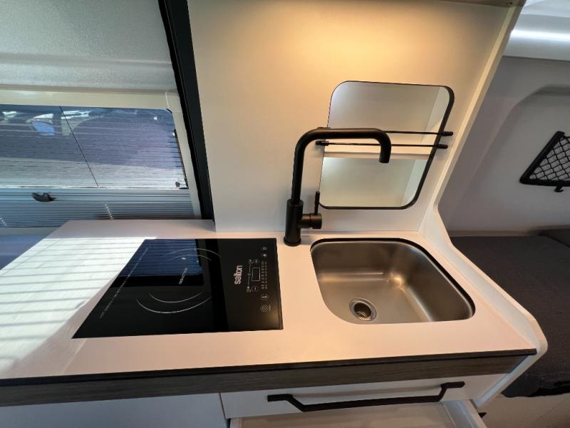 The Roadtrek Westfalia Wave Pop Top is a perfect choice - small size but packed wtih features and ready for fun! The interior features a well-equipped kitchen with microwave, 2-burner cooktop, and 3.2 cubic foot refrigerator. There's plenty of storage with 17 different cabinets and drawers, featuring clever solutions for all your belongings. At night there's the rear convertible bed, which can be equipped with a king or queen mattress, the bench/bed in the dining area, and the pop top roof with its own mattress. Screen window with roll shades mean you can enjoy the breeze without the bugs.