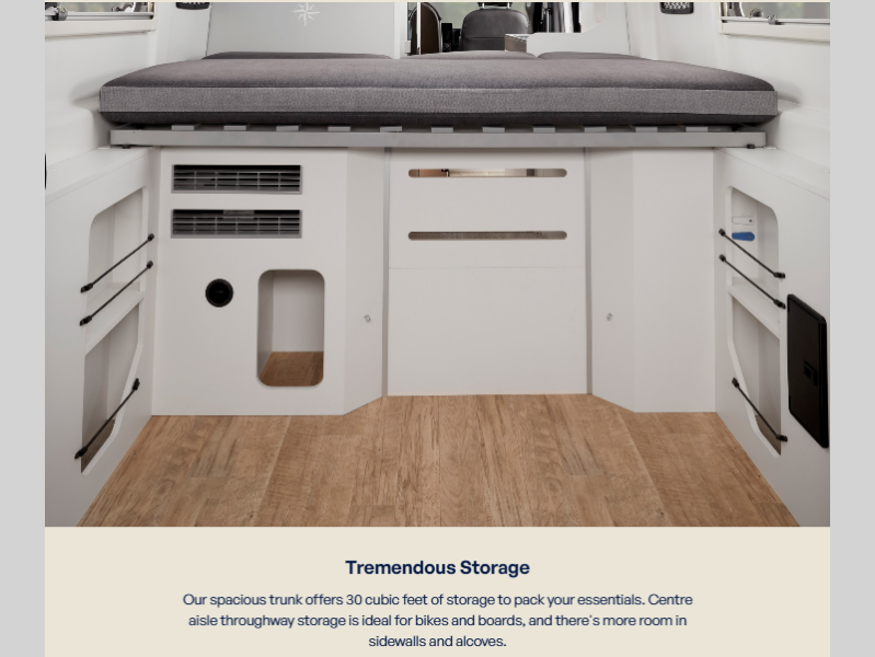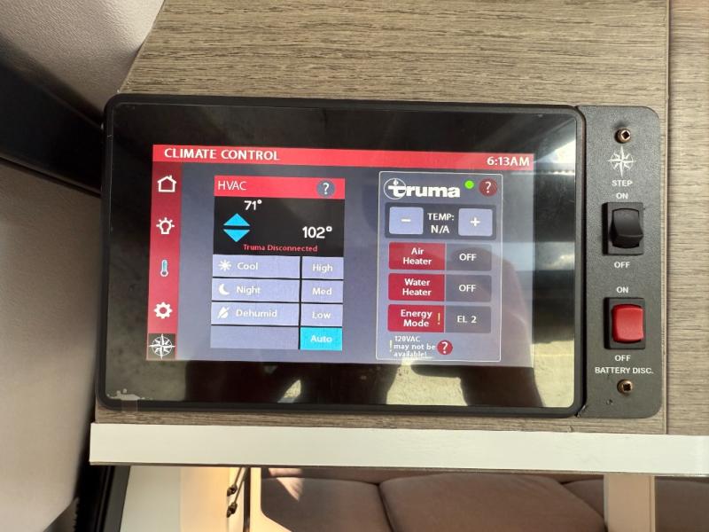 - 3,000w Inverter powers the Truma Air Conditioner for 6-12 hours, or more, on fully charged batteries before recharge is required by; driving, idling engine, plugging into power, and/or solar.