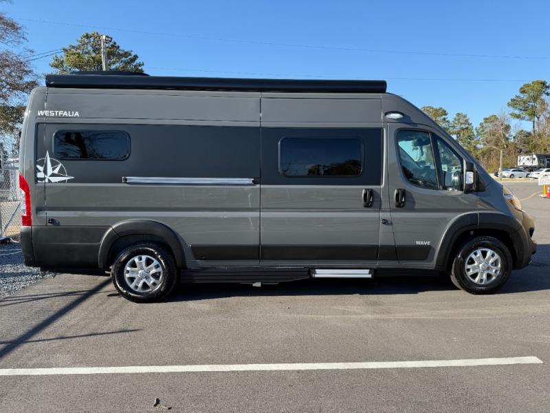 The Westfalia Class B gas motorhome, by Roadtrek of Canada, is built on the Ram ProMaster 3500 chassis, offering reliability and safety. The stylish interior is Euro-inspired with black and white seats. The Uconnect HD radio with Apple Car Play and Android Auto includes a 10.1" display so you can easily see your route. Technology features like a wireless charging pad, 4G LTE Wi-Fi hotspot, and multiple integrated USB charging ports mean you can stay in touch, but you'll also love disconnecting as you gaze up at the stars. Outside you'll find a 13' power awning to protect you from the sun or rain, heavy-duty bug screens on all doors, and an outside shower for cleaning up after an outdoor adventure!