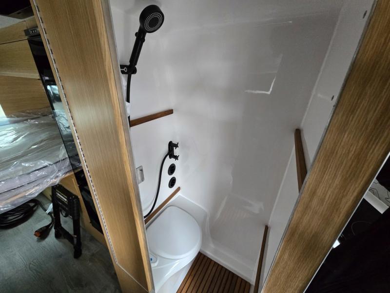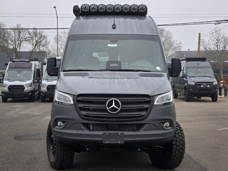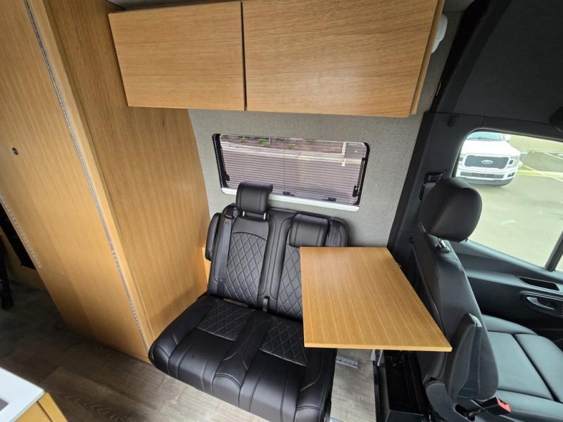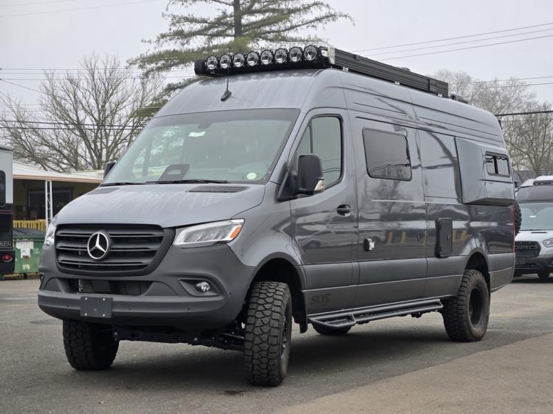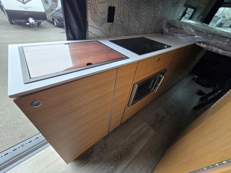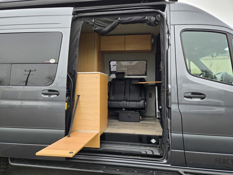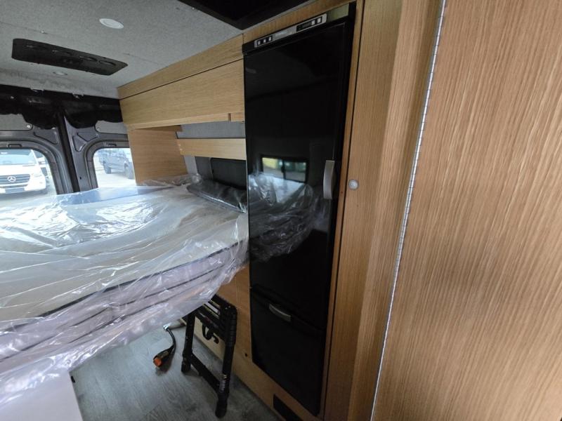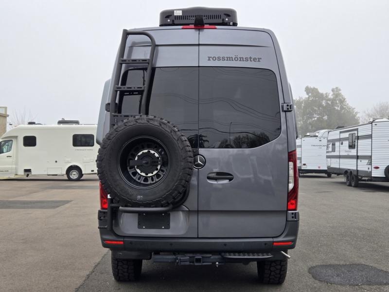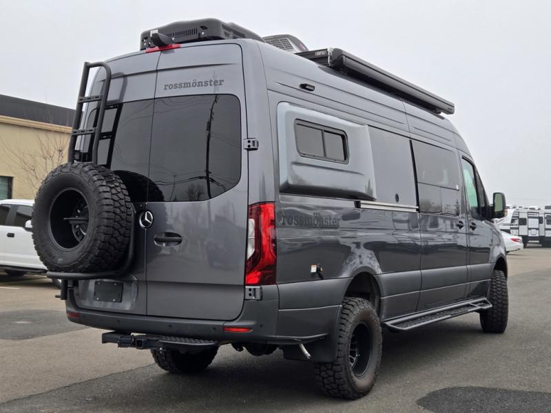 Introducing our exceptional Rossmonster Class B diesel Skye Van, built on the renowned Mercedes Sprinter 170" chassis. Every detail is meticulously designed to deliver an unparalleled travel experience. The 3000W inverter/charger ensures a reliable power supply, while premium Corian countertops add a touch of sophistication to the interior. A custom indoor shower with teak floor and mixing valve provides a luxurious retreat, and a high-amp auxiliary alternator enables charging at idle, keeping your systems powered. The amazing kitchen boasts a Breville Combi oven air fryer for culinary creativity and a Vitrofrigo Slim 150L black double-door fridge with freezer for ample storage of your favorite foods. Also, the Lippert GG750 electric awning, controlled from the Garmin system, offers convenient shade, the fresh water connection ensures easy access to clean water, and a smoke/CO detector provides peace of mind.