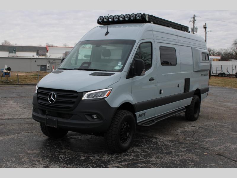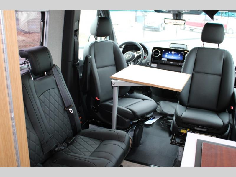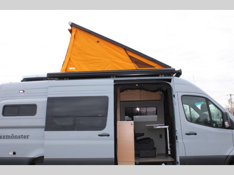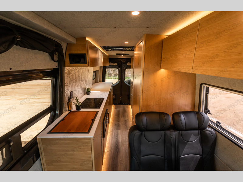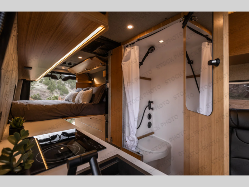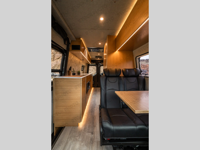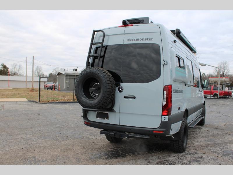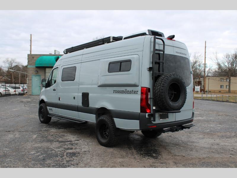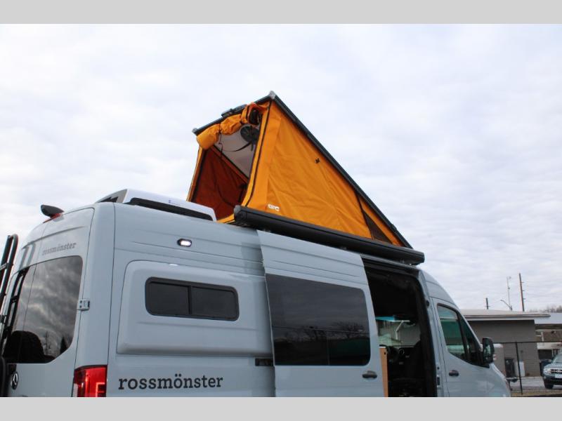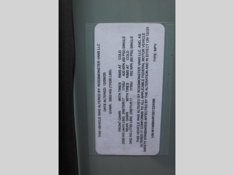 Introducing our exceptional Rossmonster Class B diesel Skye Van, built on the renowned Mercedes Sprinter 170" chassis. Every detail is meticulously designed to deliver an unparalleled travel experience. The 3000W inverter/charger ensures a reliable power supply, while premium Corian countertops add a touch of sophistication to the interior. A custom indoor shower with teak floor and mixing valve provides a luxurious retreat, and a high-amp auxiliary alternator enables charging at idle, keeping your systems powered. The amazing kitchen boasts a Breville Combi oven air fryer for culinary creativity and a Vitrofrigo Slim 150L black double-door fridge with freezer for ample storage of your favorite foods. Also, the Lippert GG750 electric awning, controlled from the Garmin system, offers convenient shade, the fresh water connection ensures easy access to clean water, and a smoke/CO detector provides peace of mind.