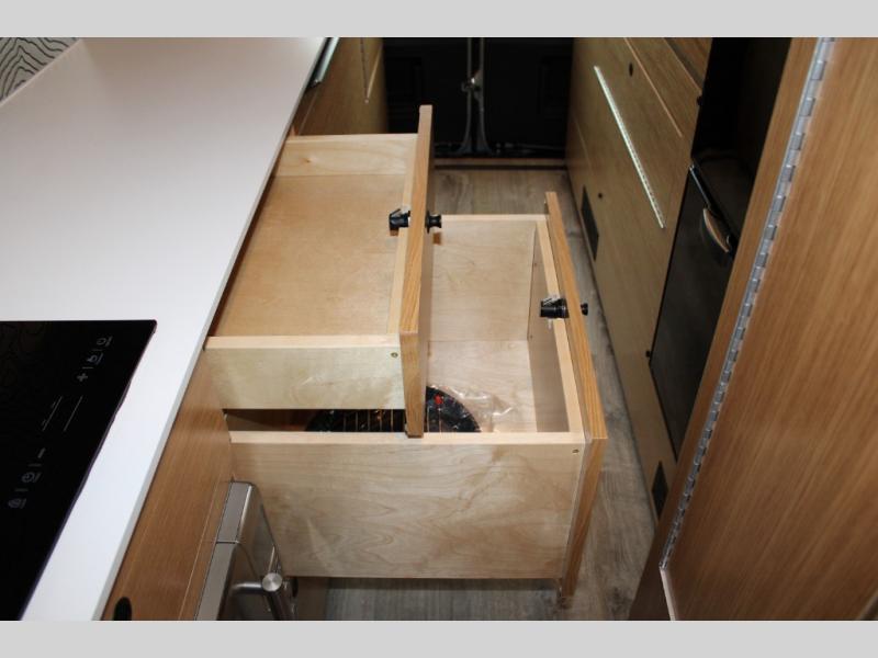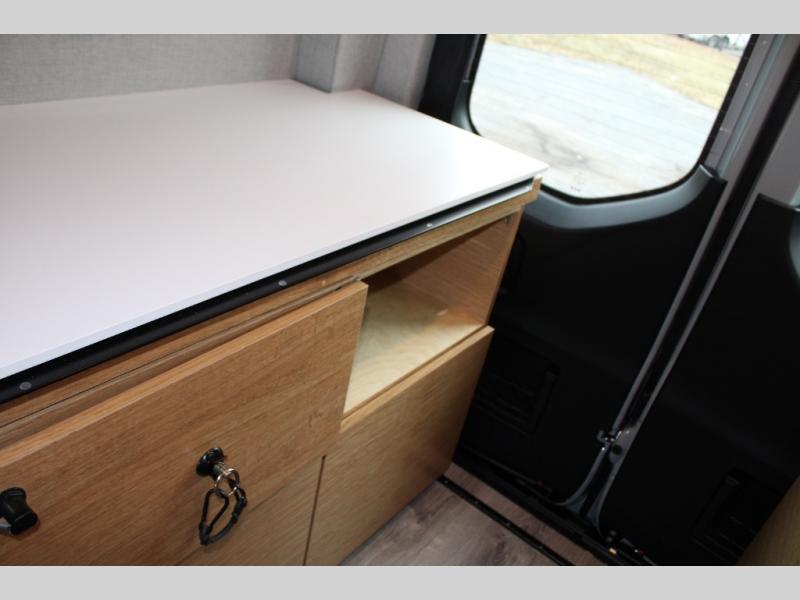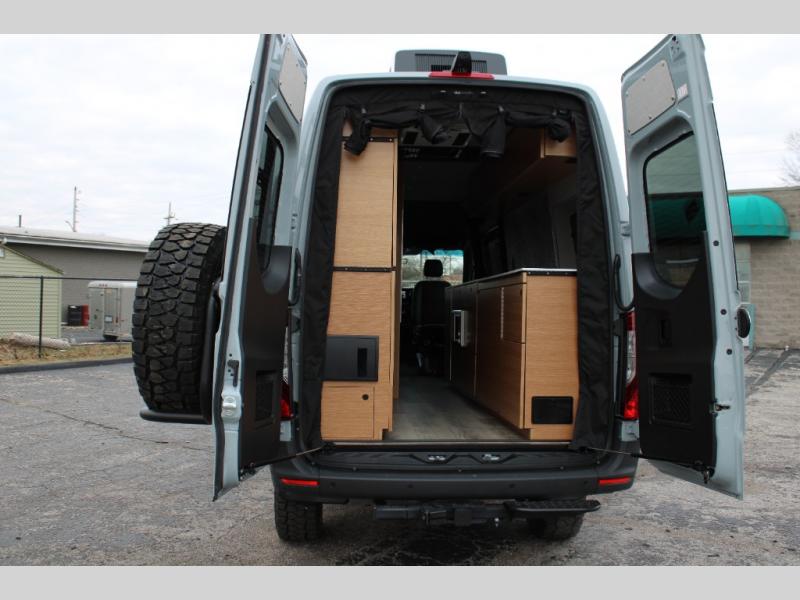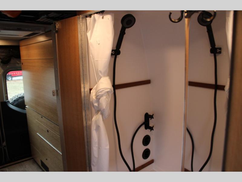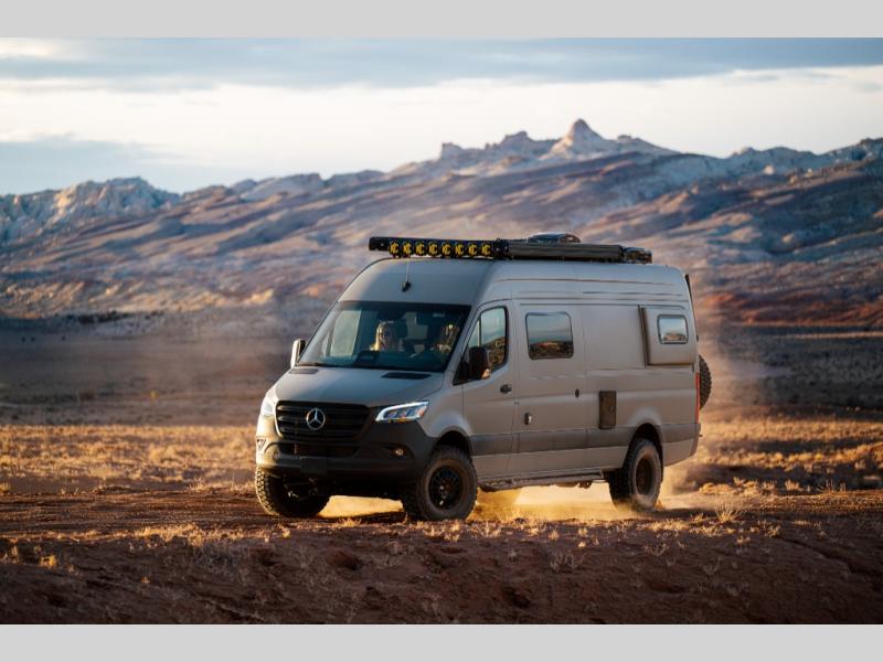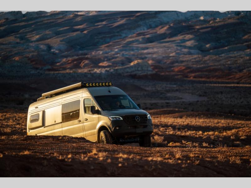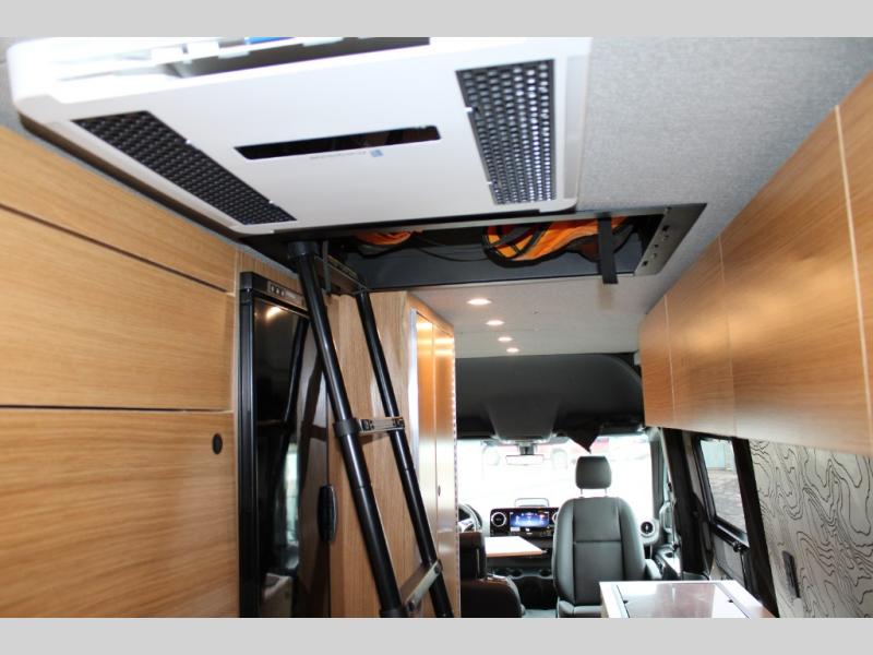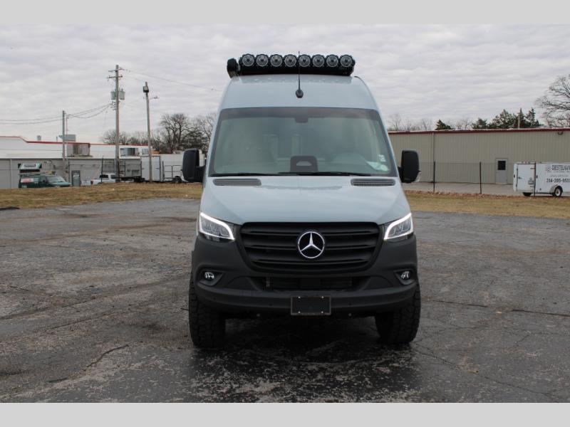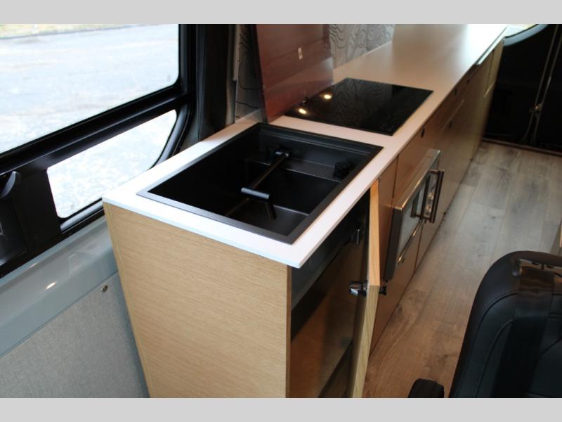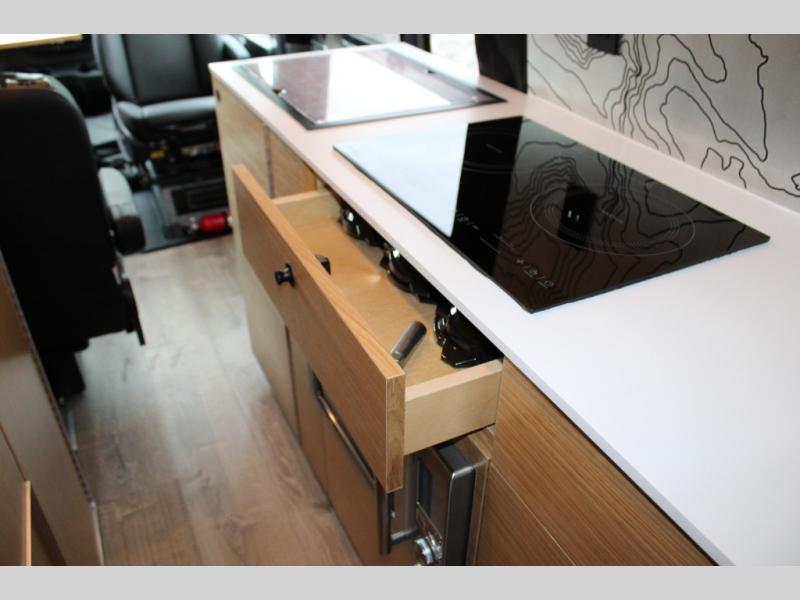 Introducing our exceptional Rossmonster Class B diesel Skye Van, built on the renowned Mercedes Sprinter 170" chassis. Every detail is meticulously designed to deliver an unparalleled travel experience. The 3000W inverter/charger ensures a reliable power supply, while premium Corian countertops add a touch of sophistication to the interior. A custom indoor shower with teak floor and mixing valve provides a luxurious retreat, and a high-amp auxiliary alternator enables charging at idle, keeping your systems powered. The amazing kitchen boasts a Breville Combi oven air fryer for culinary creativity and a Vitrofrigo Slim 150L black double-door fridge with freezer for ample storage of your favorite foods. Also, the Lippert GG750 electric awning, controlled from the Garmin system, offers convenient shade, the fresh water connection ensures easy access to clean water, and a smoke/CO detector provides peace of mind.