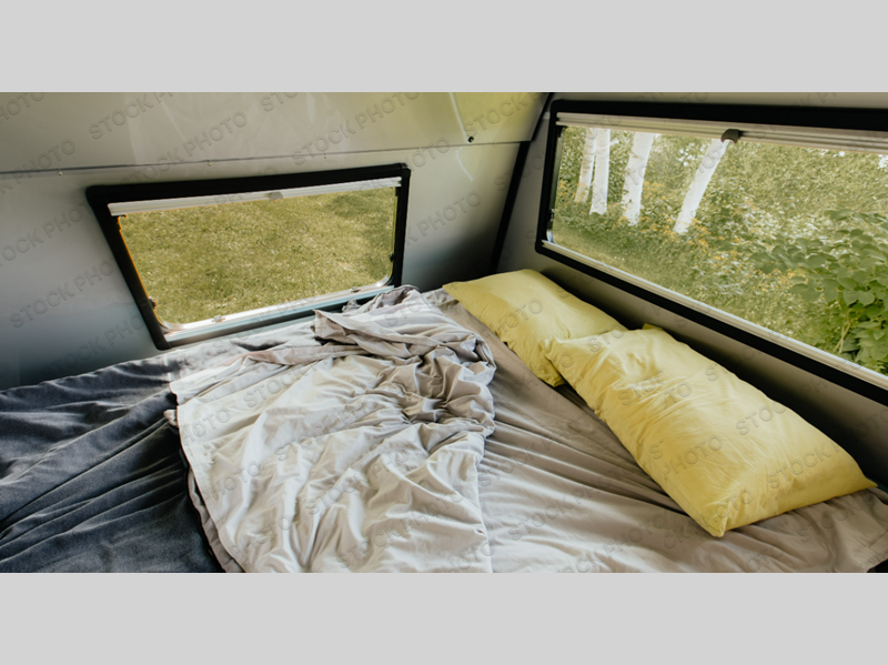 This Also model is similar to model F1743, but you'll enjoy some more rugged features perfect for the outdoor enthusiasts. There are black aluminum wheels and adventures tires, a roof rack with a box awning, and optional solar power so you can go off-grid. The 60" x 81" queen-size bed can be set up permanently for two campers, and the front dining area converts to a 36" x 81" single bed for one more. A wet bath also comes standard, along with kitchen amenities that include a two burner LPG stove and 3.1 cu. ft. refrigerator.